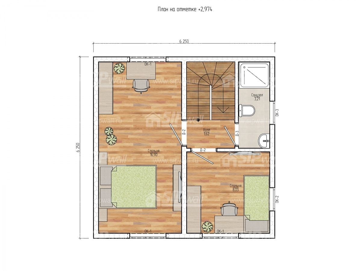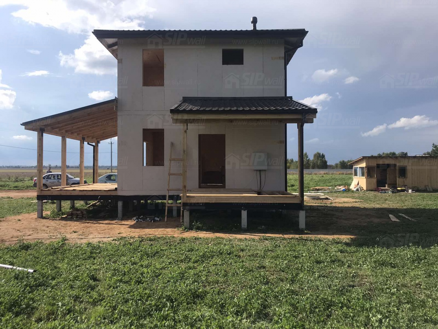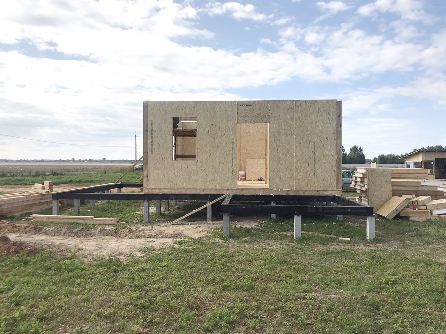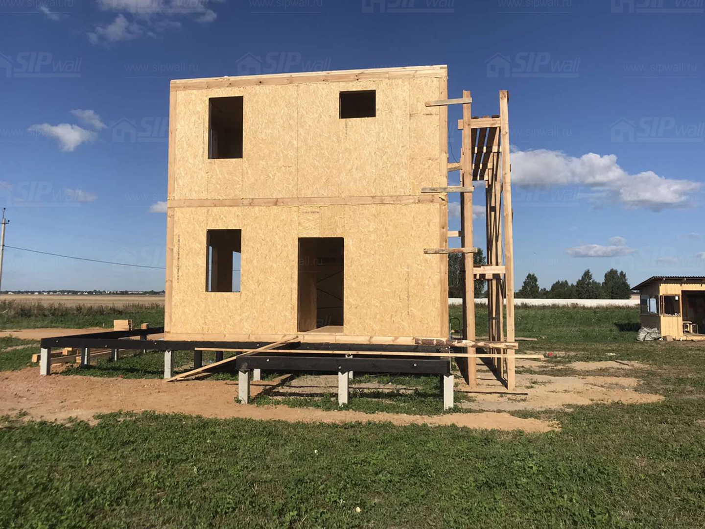 Все СИП панели SIPwall толщиной 224/174/124 мм (плиты OSB-3 толщиной 12 мм "Калевала" Россия и фасадный пенополистирол ПСБ-С 25 по ГОСТ 15588-14 толщиной 200/150/100 мм производства завода "PolarPlast", Россия) нарезаны и обрусованы сухим строганным брусом камерной сушки в соответствии с проектной документацией.