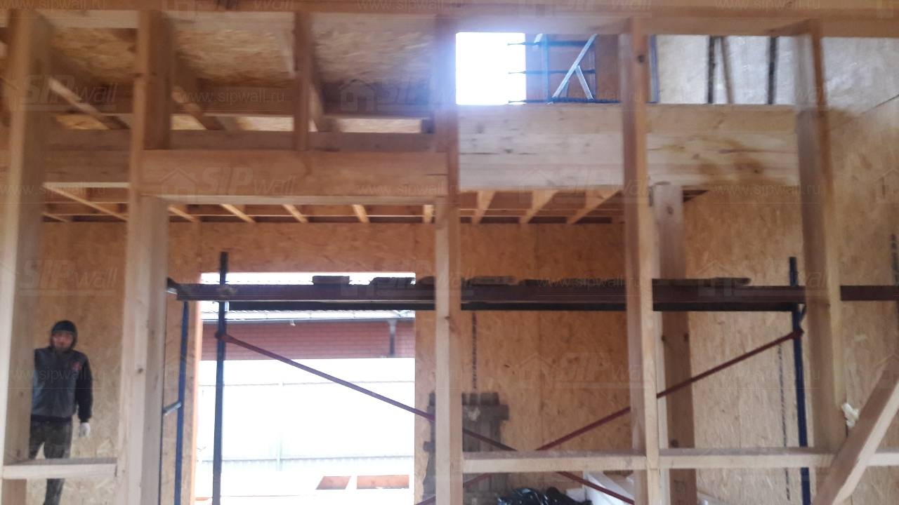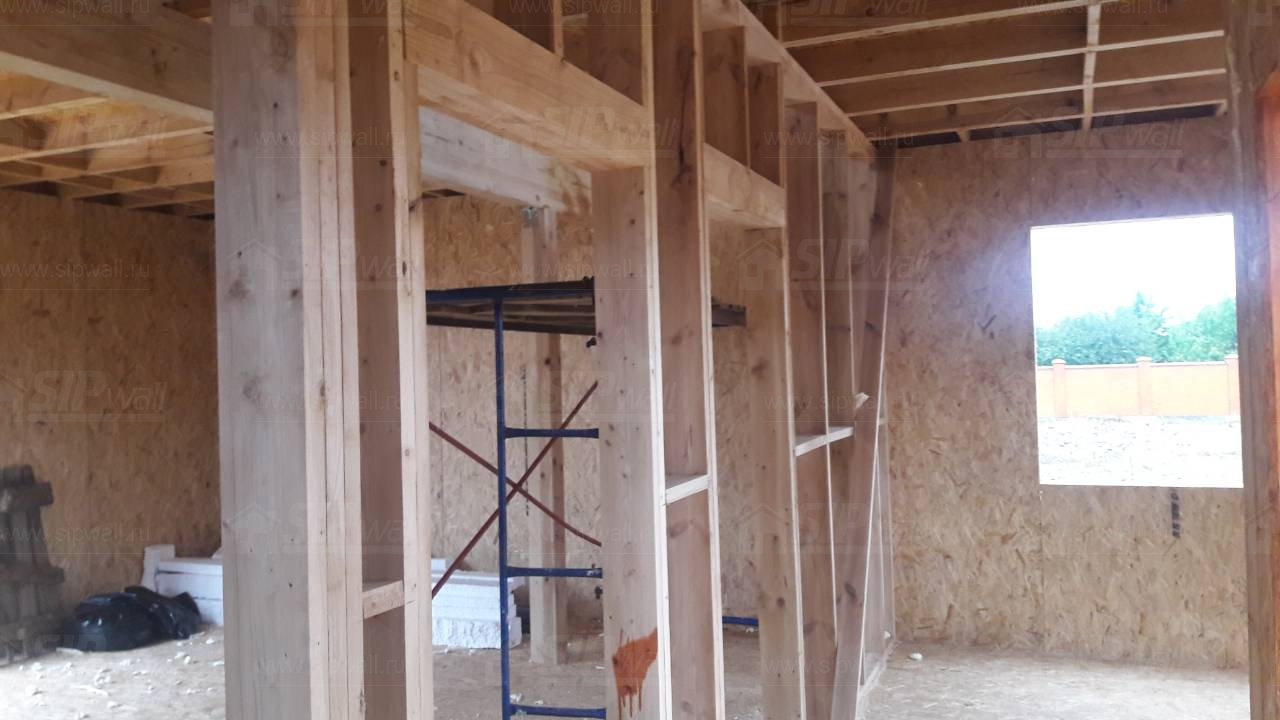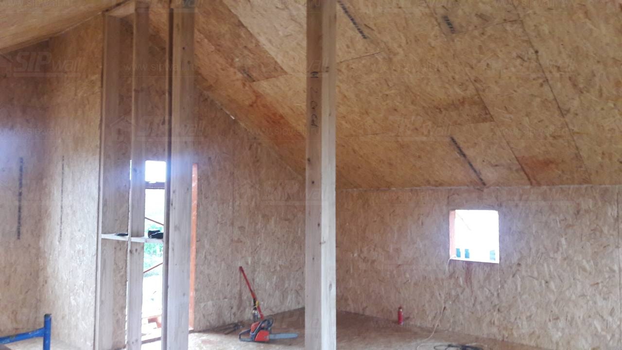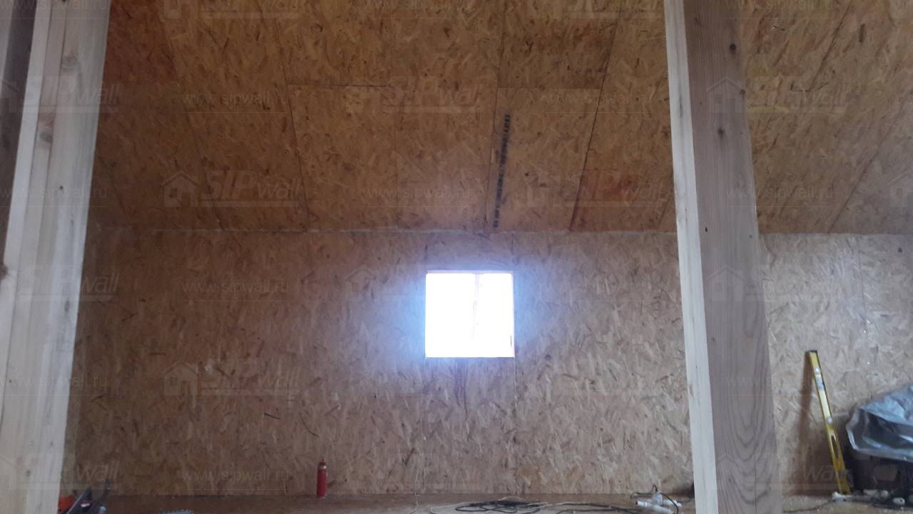 Все СИП панели SIPwall толщиной 224/174/124 мм (плиты OSB-3 толщиной 12 мм "Калевала" Россия и фасадный пенополистирол ПСБ-С 25 по ГОСТ 15588-14 толщиной 200/150/100 мм производства завода "PolarPlast", Россия) нарезаны и обрусованы сухим строганным брусом камерной сушки в соответствии с проектной документацией.