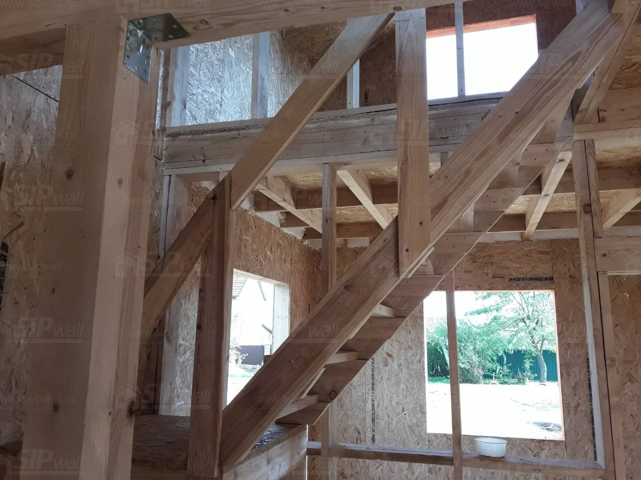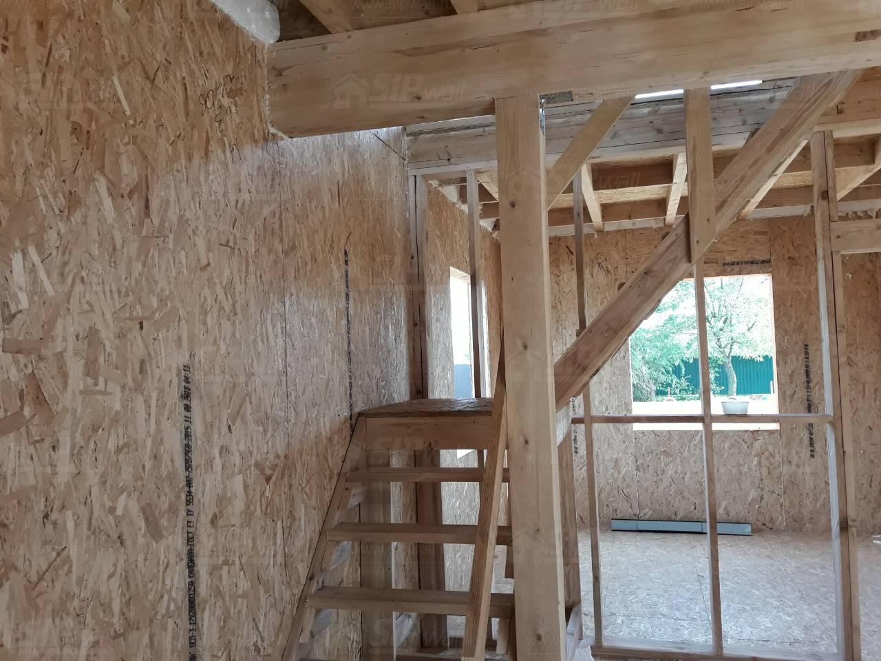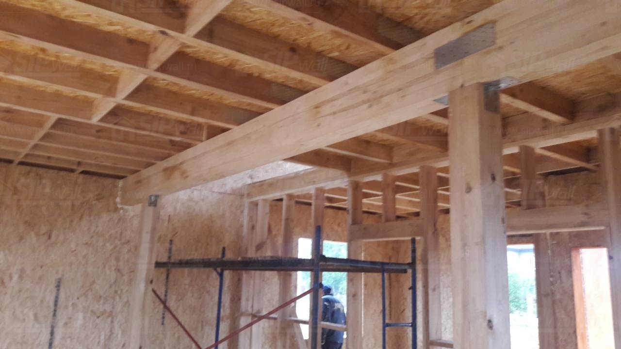 Все СИП панели SIPwall толщиной 224/174/124 мм (плиты OSB-3 толщиной 12 мм "Калевала" Россия и фасадный пенополистирол ПСБ-С 25 по ГОСТ 15588-14 толщиной 200/150/100 мм производства завода "PolarPlast", Россия) нарезаны и обрусованы сухим строганным брусом камерной сушки в соответствии с проектной документацией.