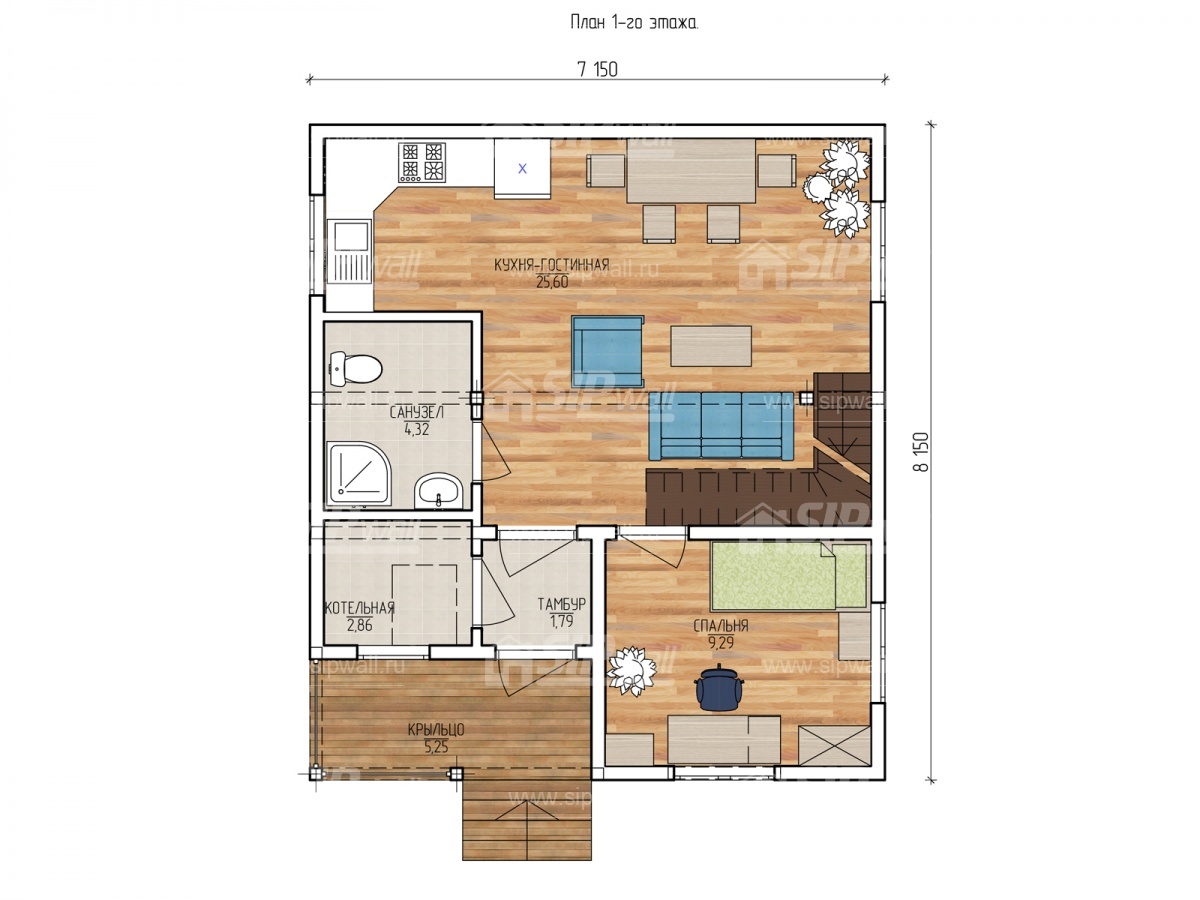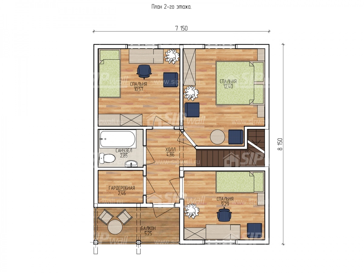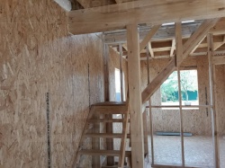 Домокомплект - изготовлен по проекту из СИП панелей произведенный по технологии SIPwall (ЭКОПАН) на собственном заводе расположенном в г. Шуя, Ивановской области. При изготовлении домокомплекта панельно каркасного дома используется только сухой строганный брус камерной сушки, обработанный огнебиозащитным составом.