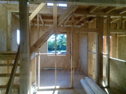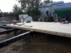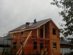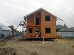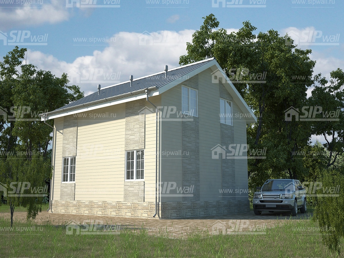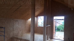 Комплектация домокомплекта: перекрытие на отметке +0.000 - СИП - 174У мм., несущие стены дома выполнены из СИП панелей 174 мм., внутренние несущие стены и внутренние не несущие перегородки выполнены по каркасной технологии. Перекрытие межэтажное - лаги с настилом OSB-3 толщиной 22 мм. Кровля - выполнена из СИП панелей 224У мм.