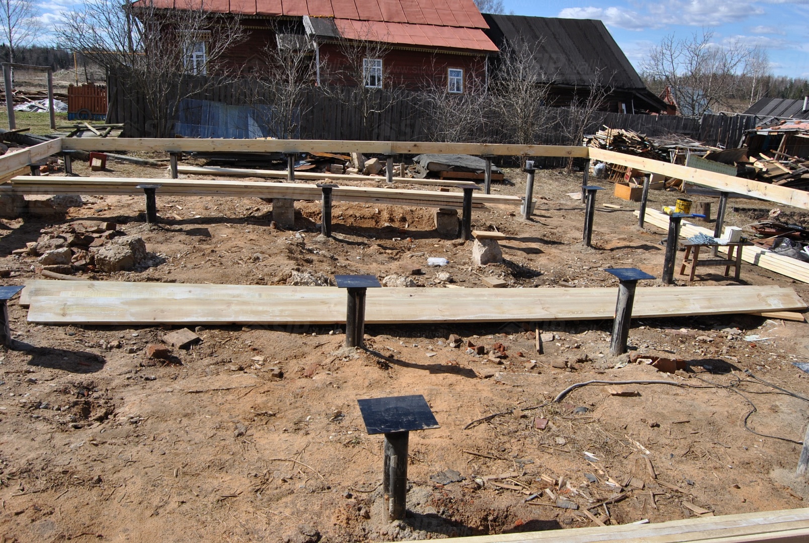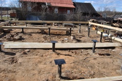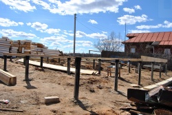 Выполнены работы: устройство фундамента на винтовых сваях, изготовление и монтаж домокомплекта, устройство кровли.