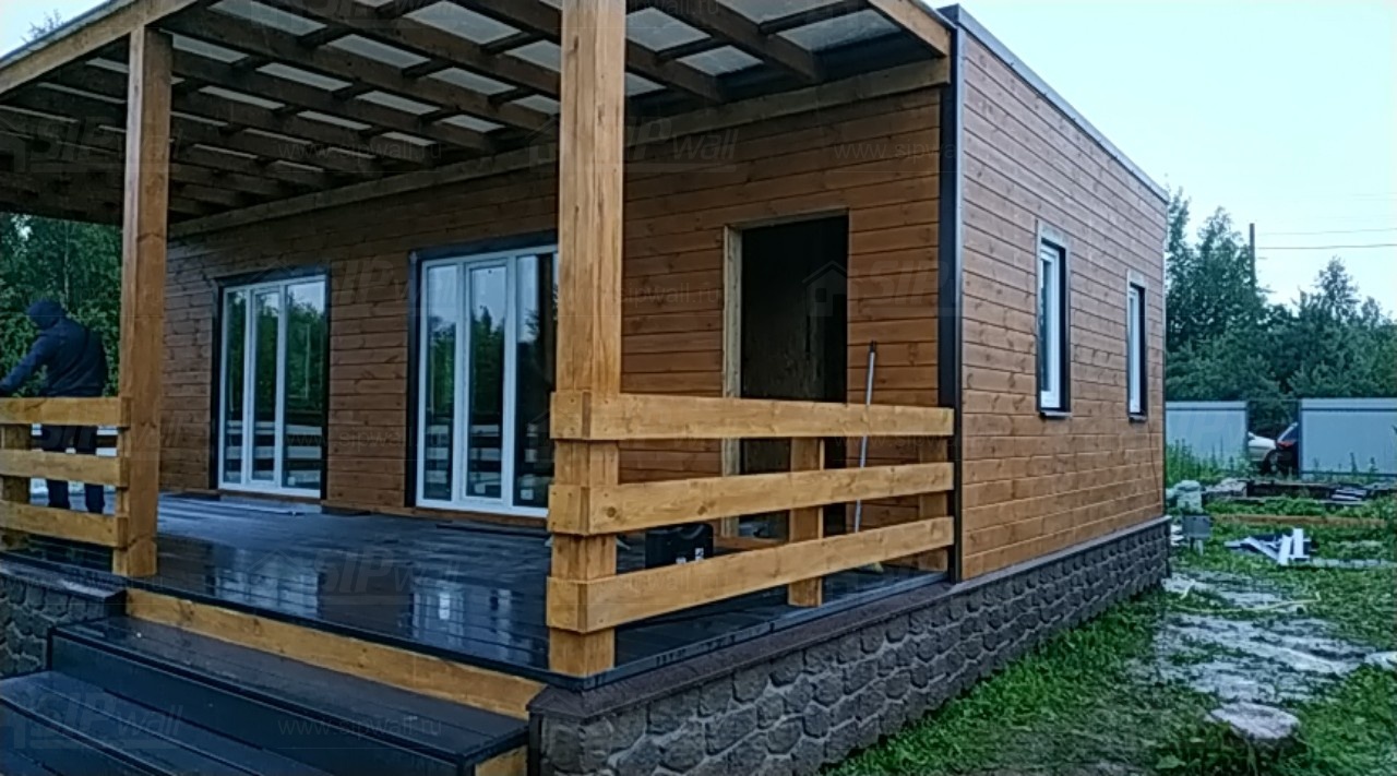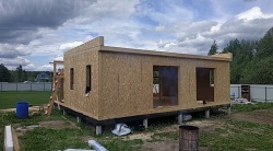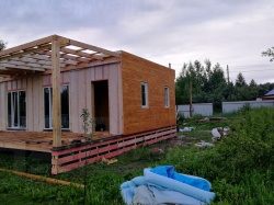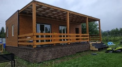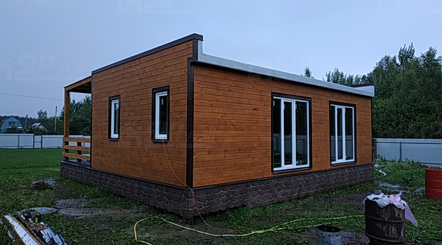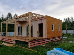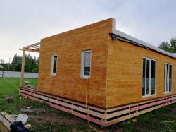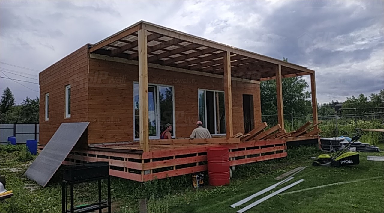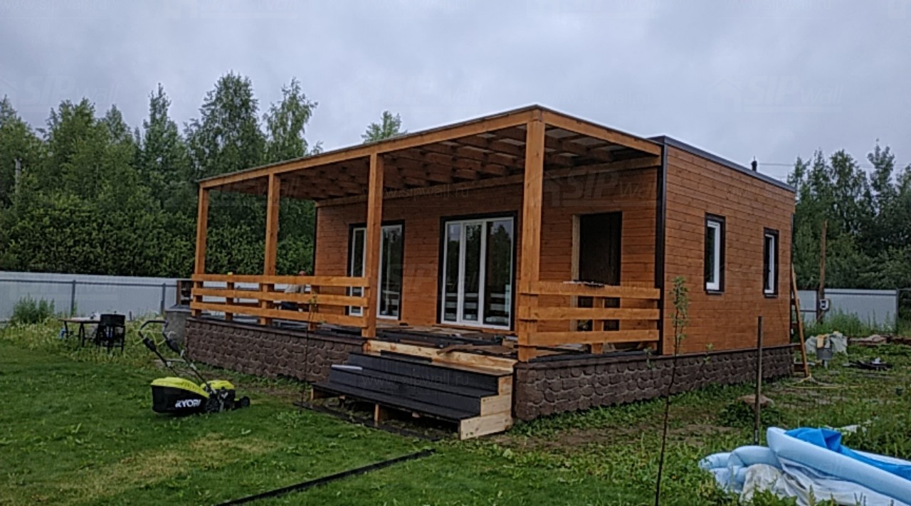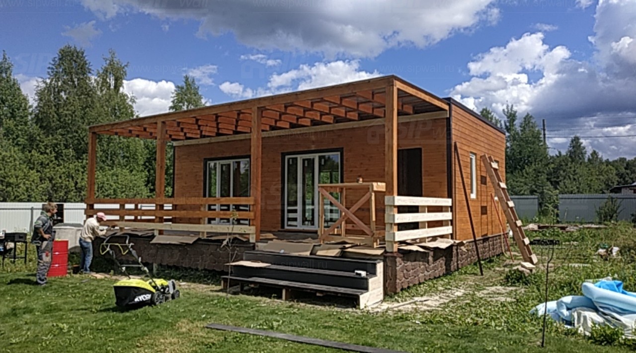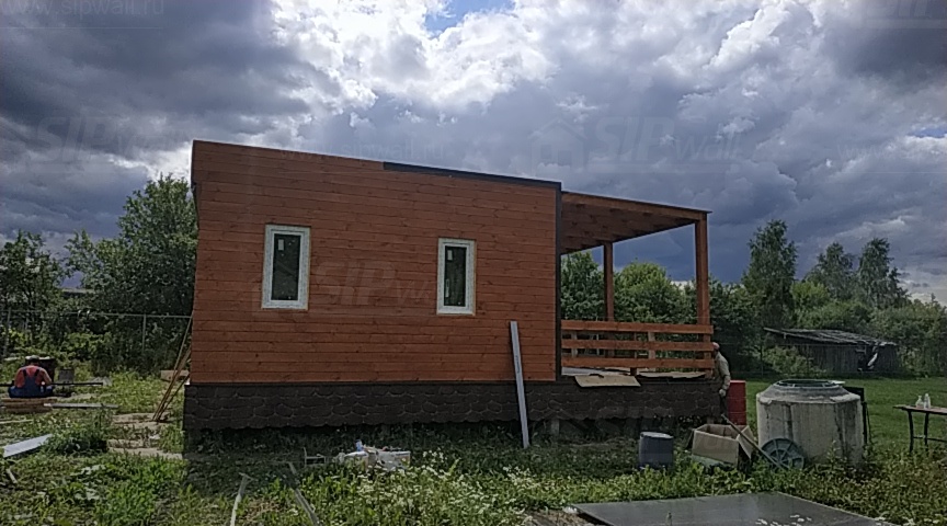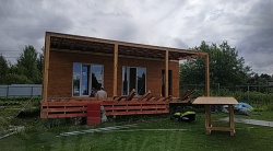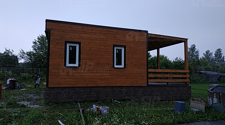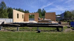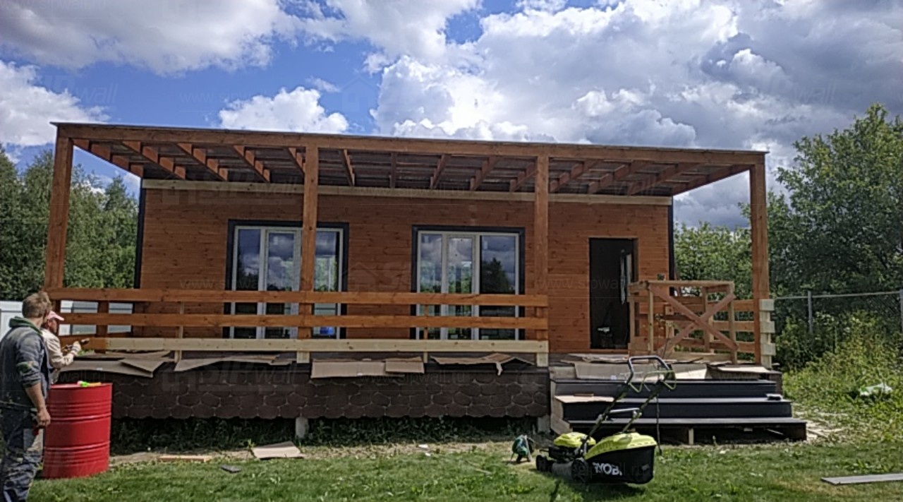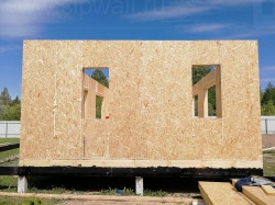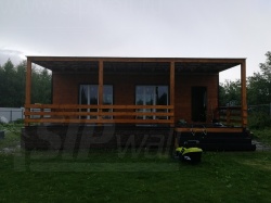 Домокомплект - изготовлен по проекту из СИП панелей произведенный по технологии SIPwall (ЭКОПАН) на собственном заводе расположенном в г. Шуя, Ивановской области. При изготовлении домокомплекта панельно каркасного дома используется только сухой строганный брус камерной сушки, обработанный огнебиозащитным составом.