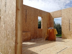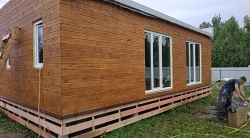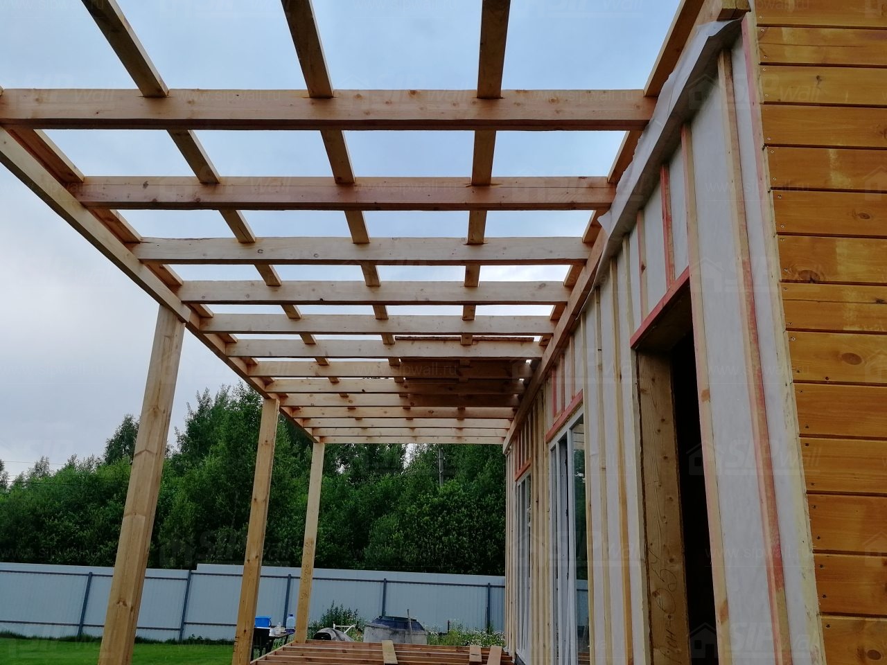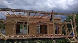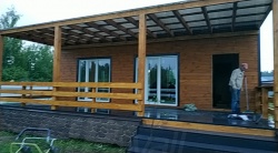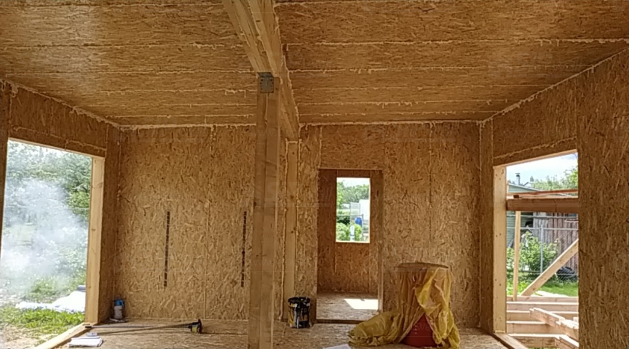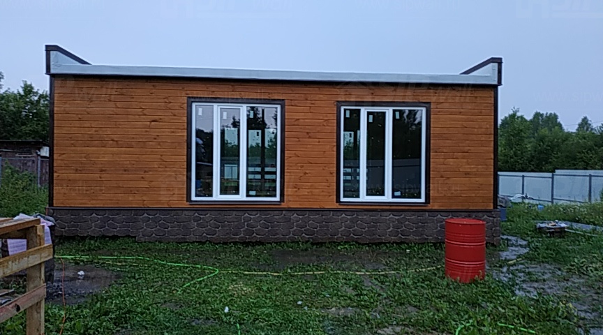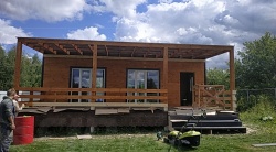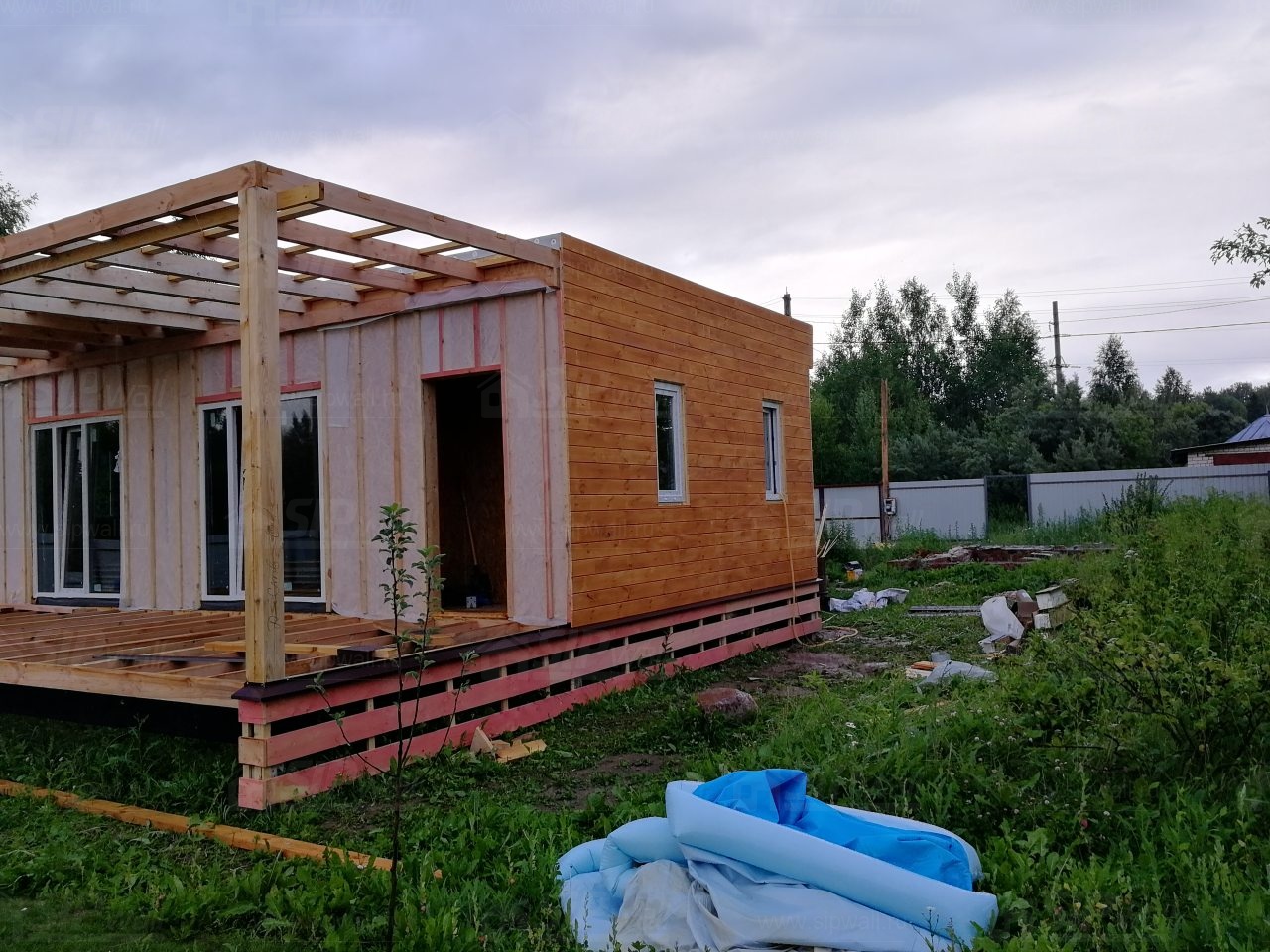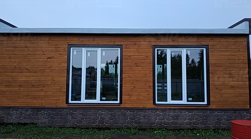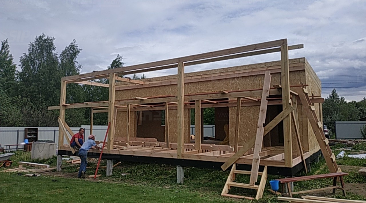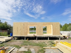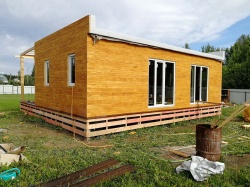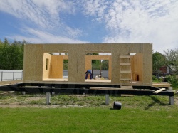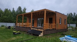 Домокомплект - изготовлен по проекту из СИП панелей произведенный по технологии SIPwall (ЭКОПАН) на собственном заводе расположенном в г. Шуя, Ивановской области. При изготовлении домокомплекта панельно каркасного дома используется только сухой строганный брус камерной сушки, обработанный огнебиозащитным составом.