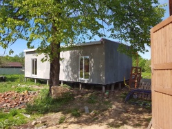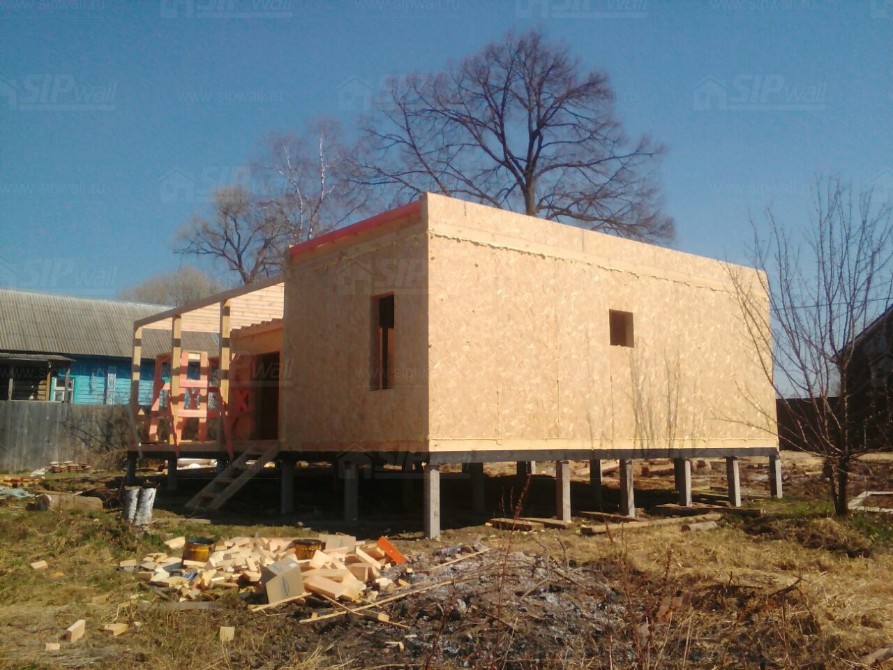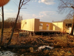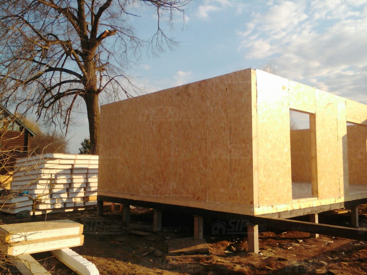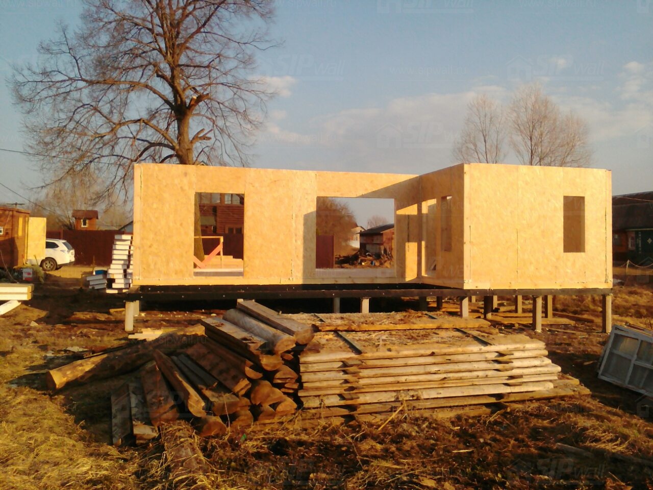 Домокомплект - изготовлен по проекту из СИП панелей произведенный по технологии SIPwall (ЭКОПАН) на собственном заводе расположенном в г. Шуя, Ивановской области. При изготовлении домокомплекта панельно каркасного дома используется только сухой строганный брус камерной сушки, обработанный огнебиозащитным составом.