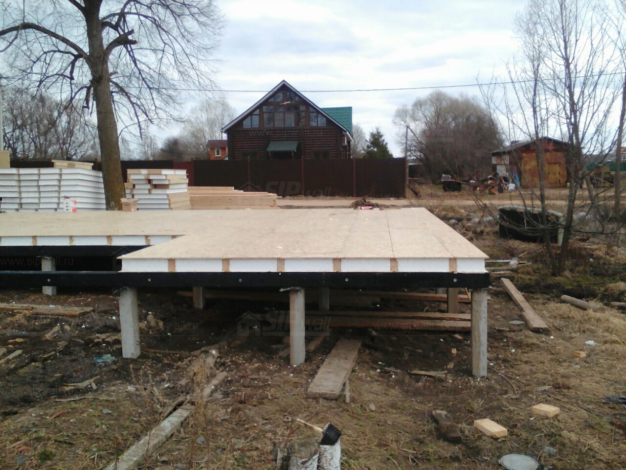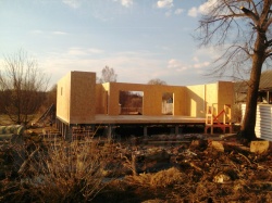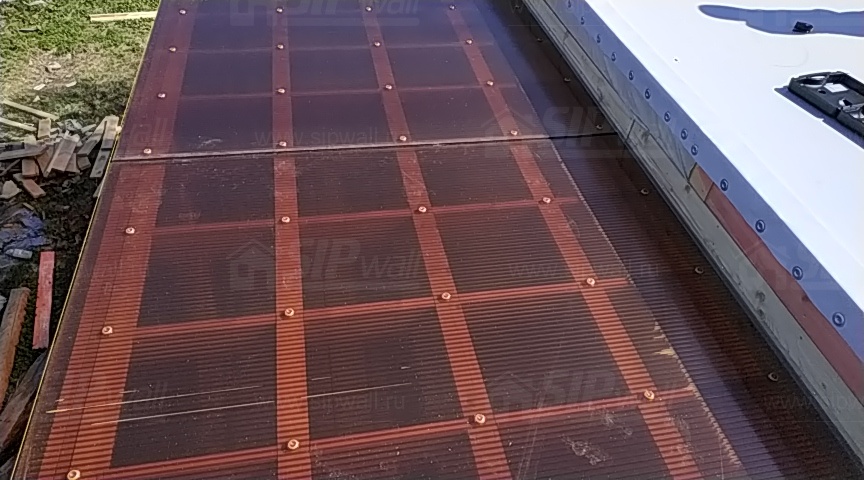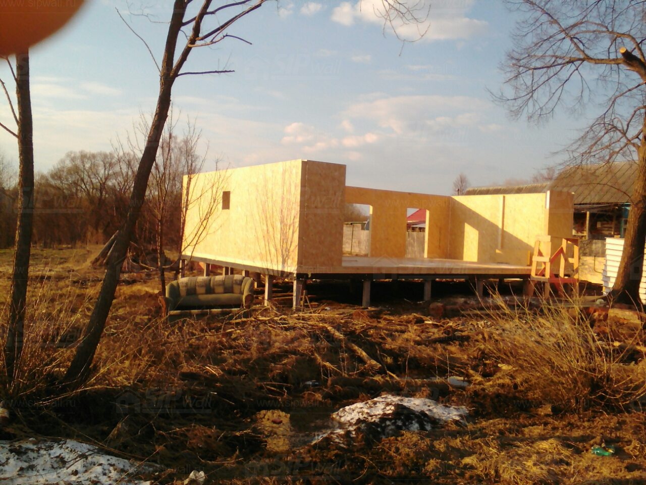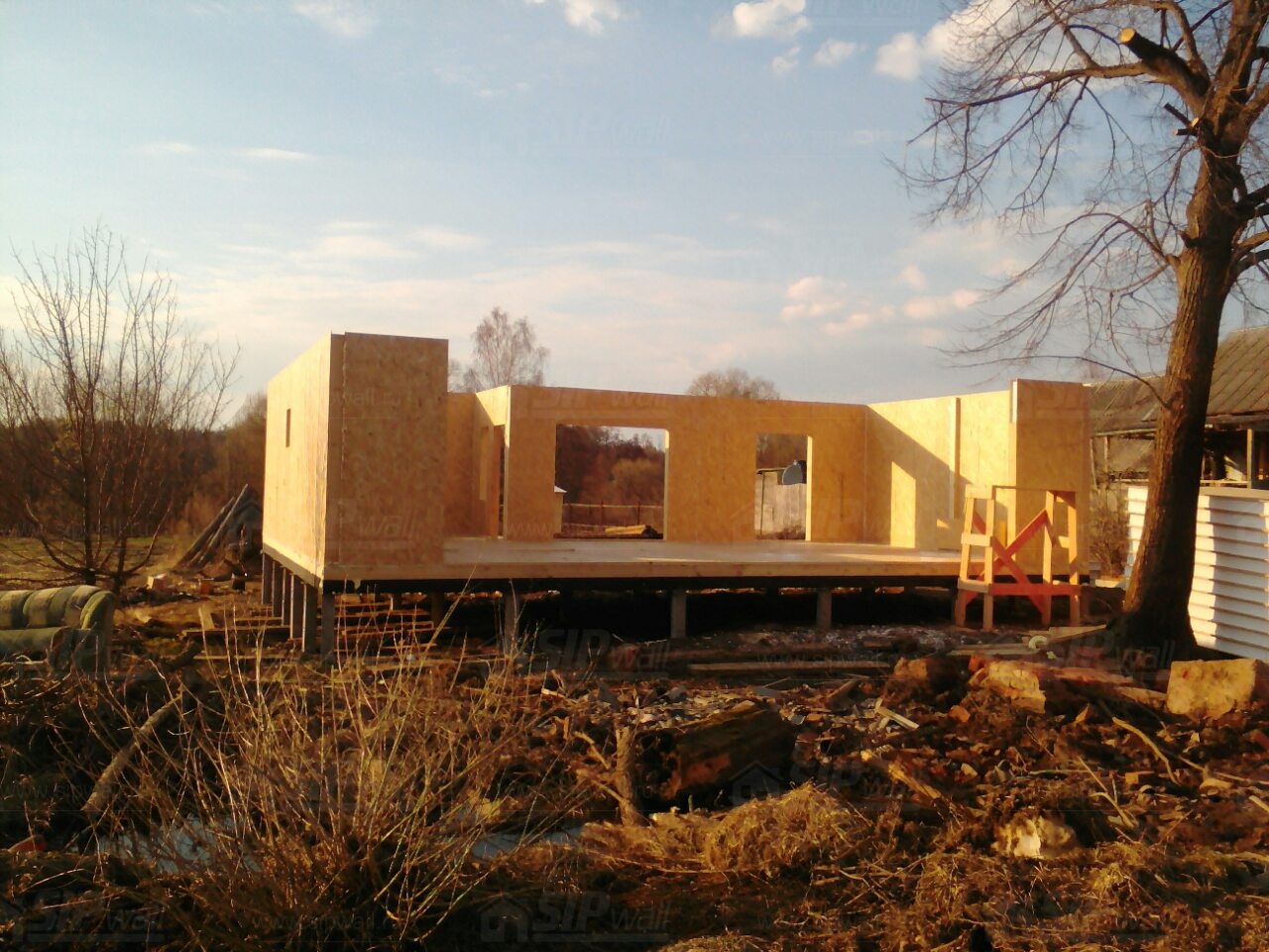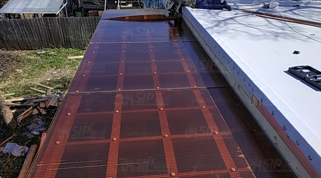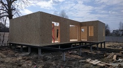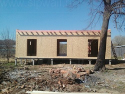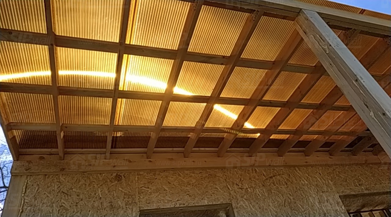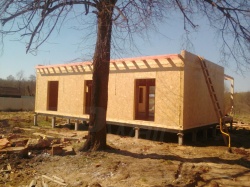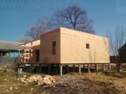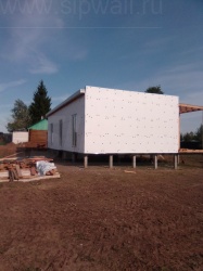 Комплектация домокомплекта: перекрытие на отметке +0.000 - СИП - 174У мм., несущие стены дома выполнены из СИП панелей 174 мм., внутренние несущие стены и внутренние не несущие перегородки выполнены по каркасной технологии. Перекрытие межэтажное - СИП панели 174У мм. Кровля - стропильная система.