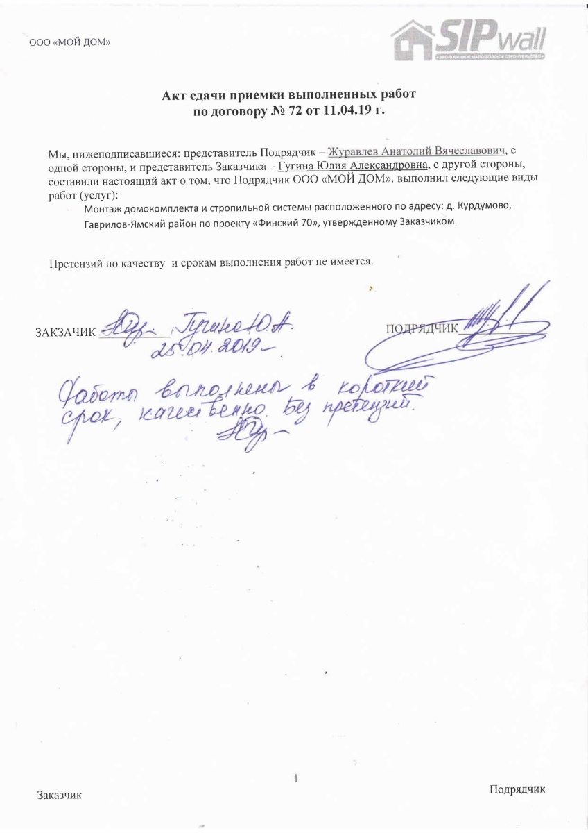 На выходе с завода «СИПВОЛЛ» домокомплект имеет 99-% ную готовность.