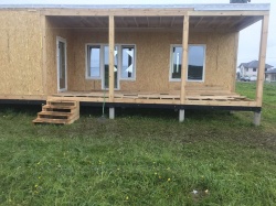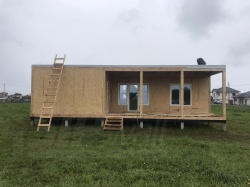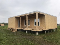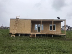Домокомплект - изготовлен по проекту из СИП панелей произведенный по технологии SIPwall (ЭКОПАН) на собственном заводе расположенном в г. Шуя, Ивановской области. При изготовлении домокомплекта панельно каркасного дома используется только сухой строганный брус камерной сушки, обработанный огнебиозащитным составом.