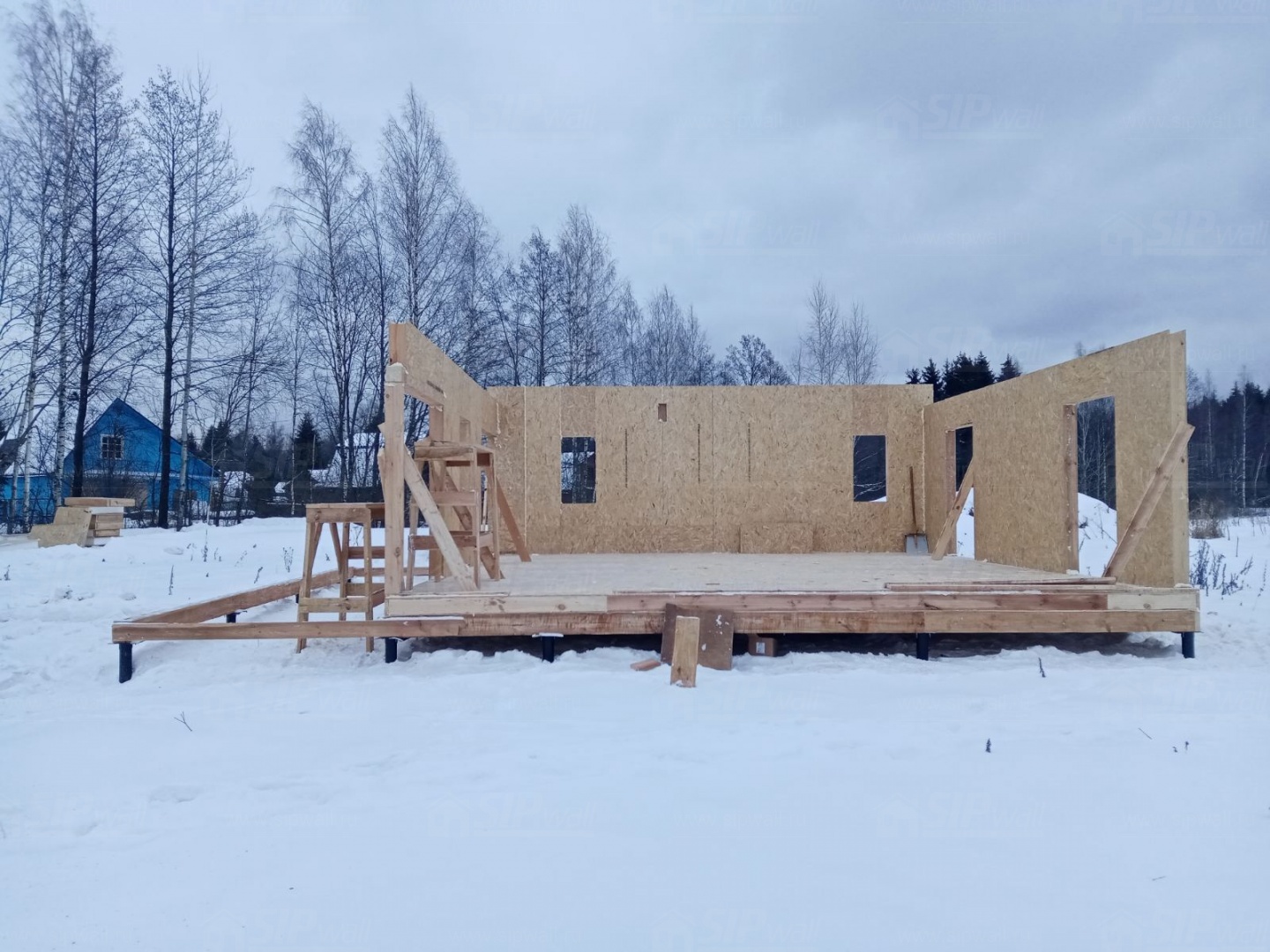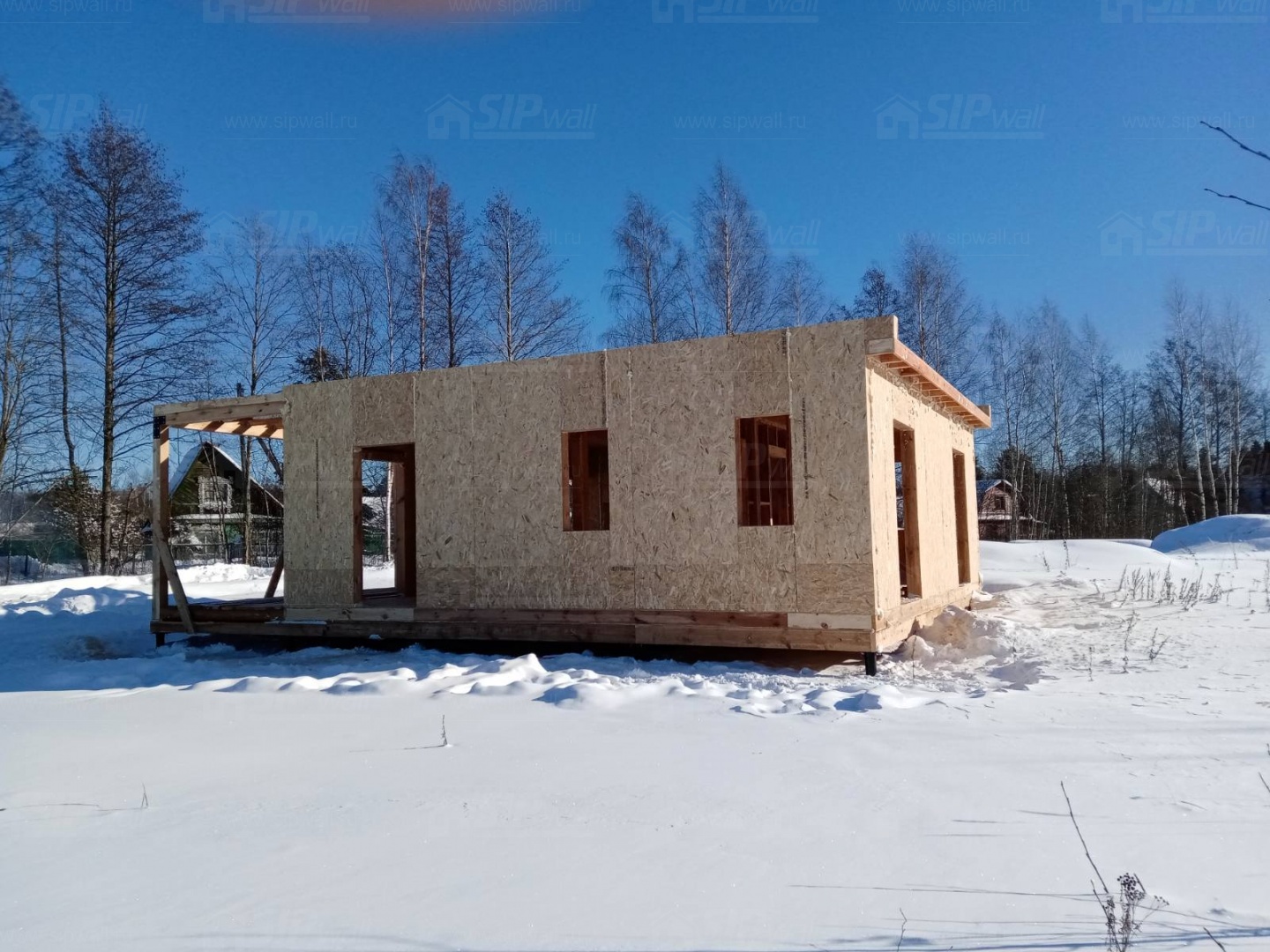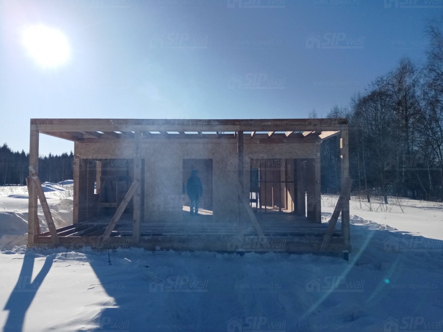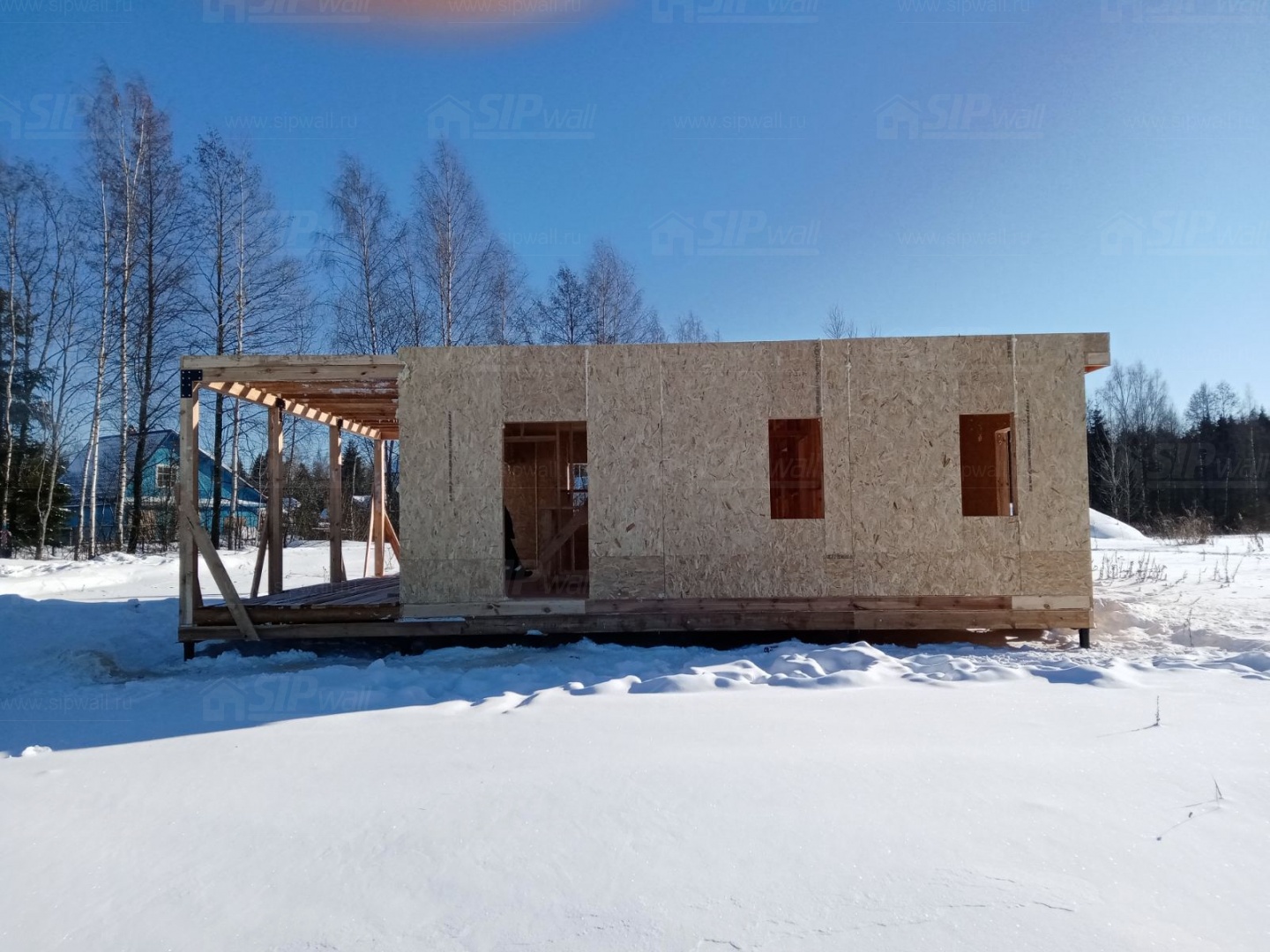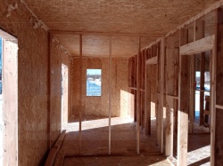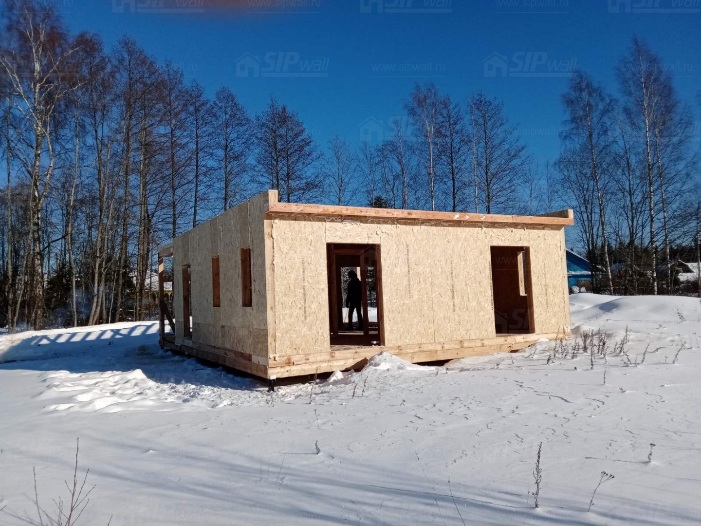 Все СИП панели SIPwall толщиной 224/174/124 мм (плиты OSB-3 толщиной 12 мм "Калевала" Россия и фасадный пенополистирол ППС-14 толщиной 200/150/100 мм производства, Россия) нарезаны и обрусованы сухим строганным брусом камерной сушки в соответствии с проектной документацией.