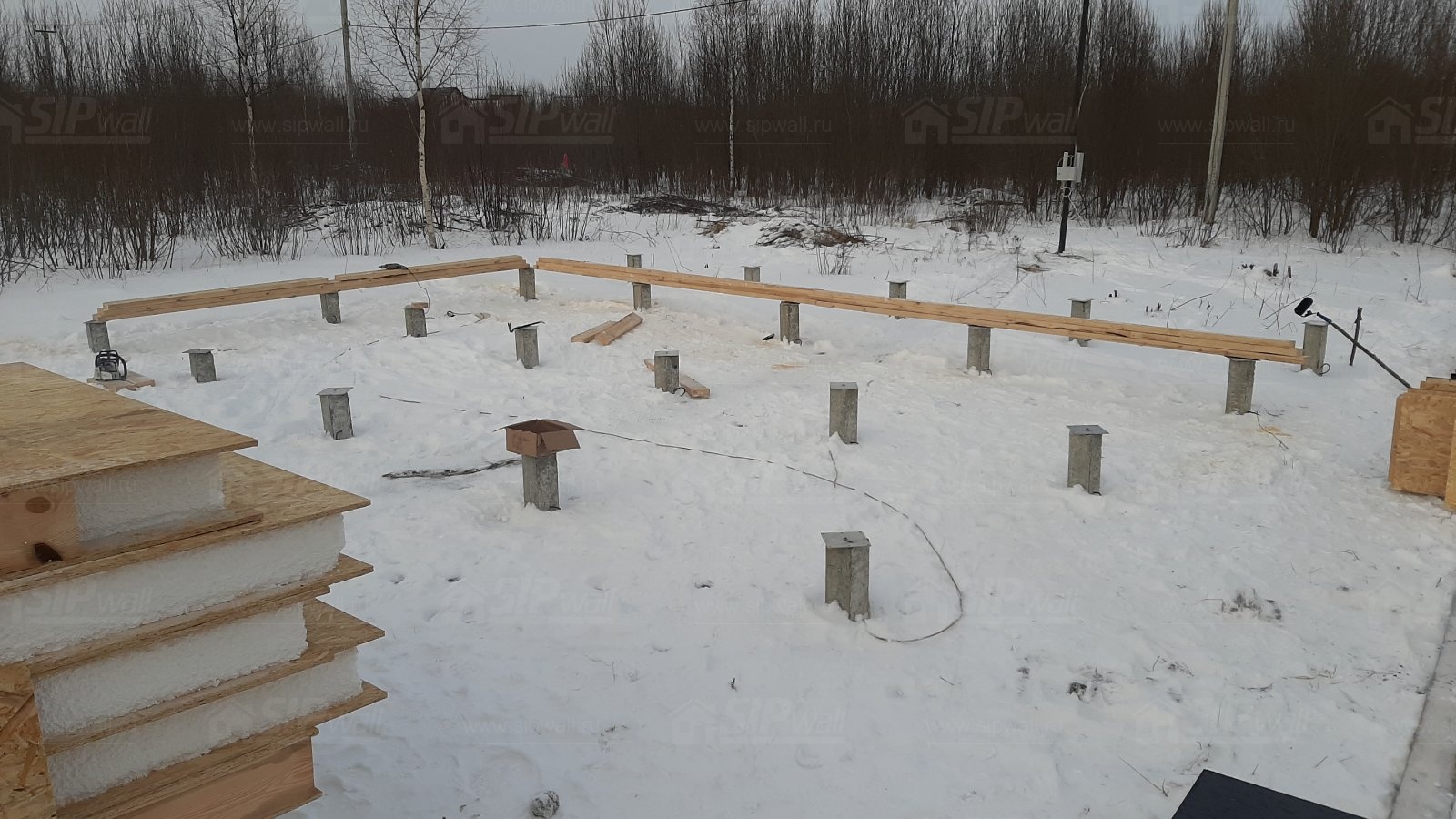 Все СИП панели SIPwall толщиной 224/174/124 мм (плиты OSB-3 толщиной 12 мм "Калевала" Россия и фасадный пенополистирол ПСБ-С 25Ф по ТУ 22.21.41.110−004 – 44755395 −2017 толщиной 200/150/100 мм производства завода "PolarPlast", Россия) нарезаны и обрусованы сухим строганным брусом камерной сушки в соответствии с проектной документацией.