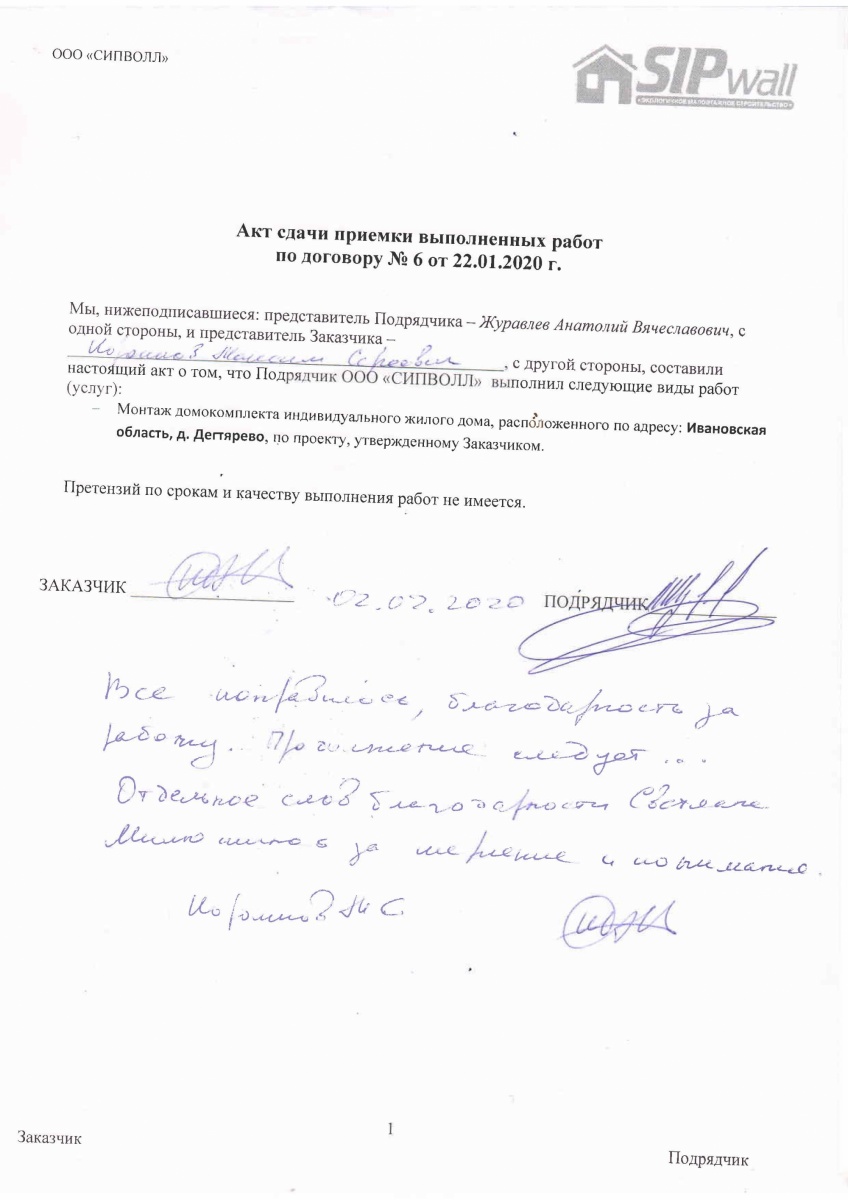 На выходе с завода «СИПВОЛЛ» домокомплект имеет 99-% ную готовность.