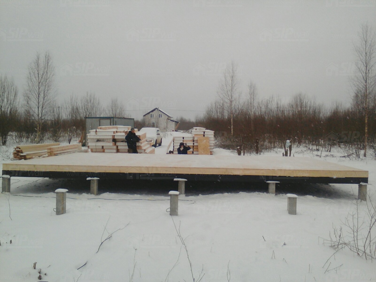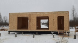 Комплектация домокомплекта: перекрытие на отметке +0.000 - СИП - 174У мм., несущие стены дома выполнены из СИП панелей 174 мм, внутренние несущие и не несущие стены выполнены по каркасной технологии. Кровля - СИП - 174У мм.