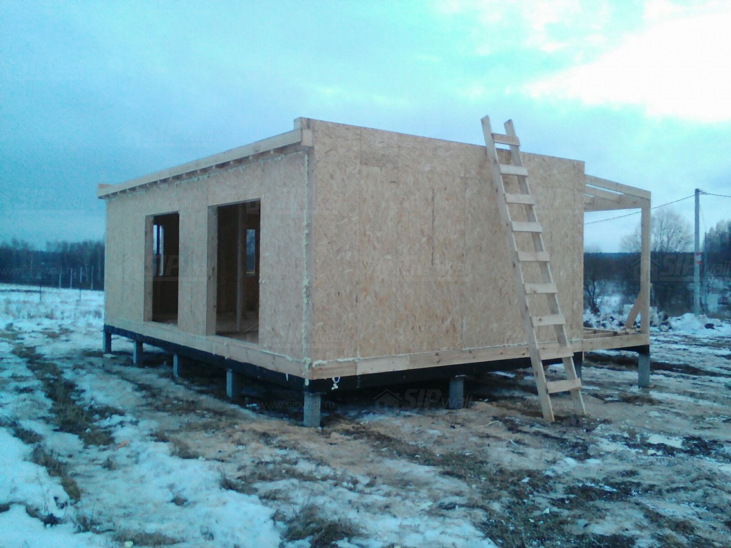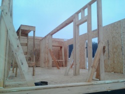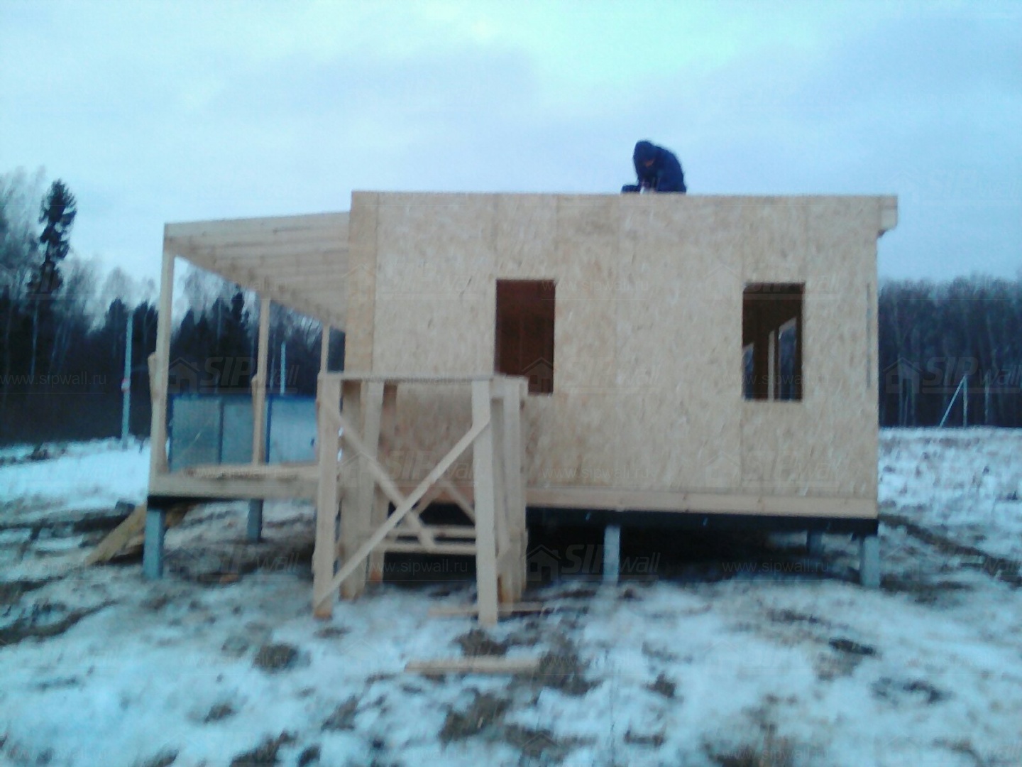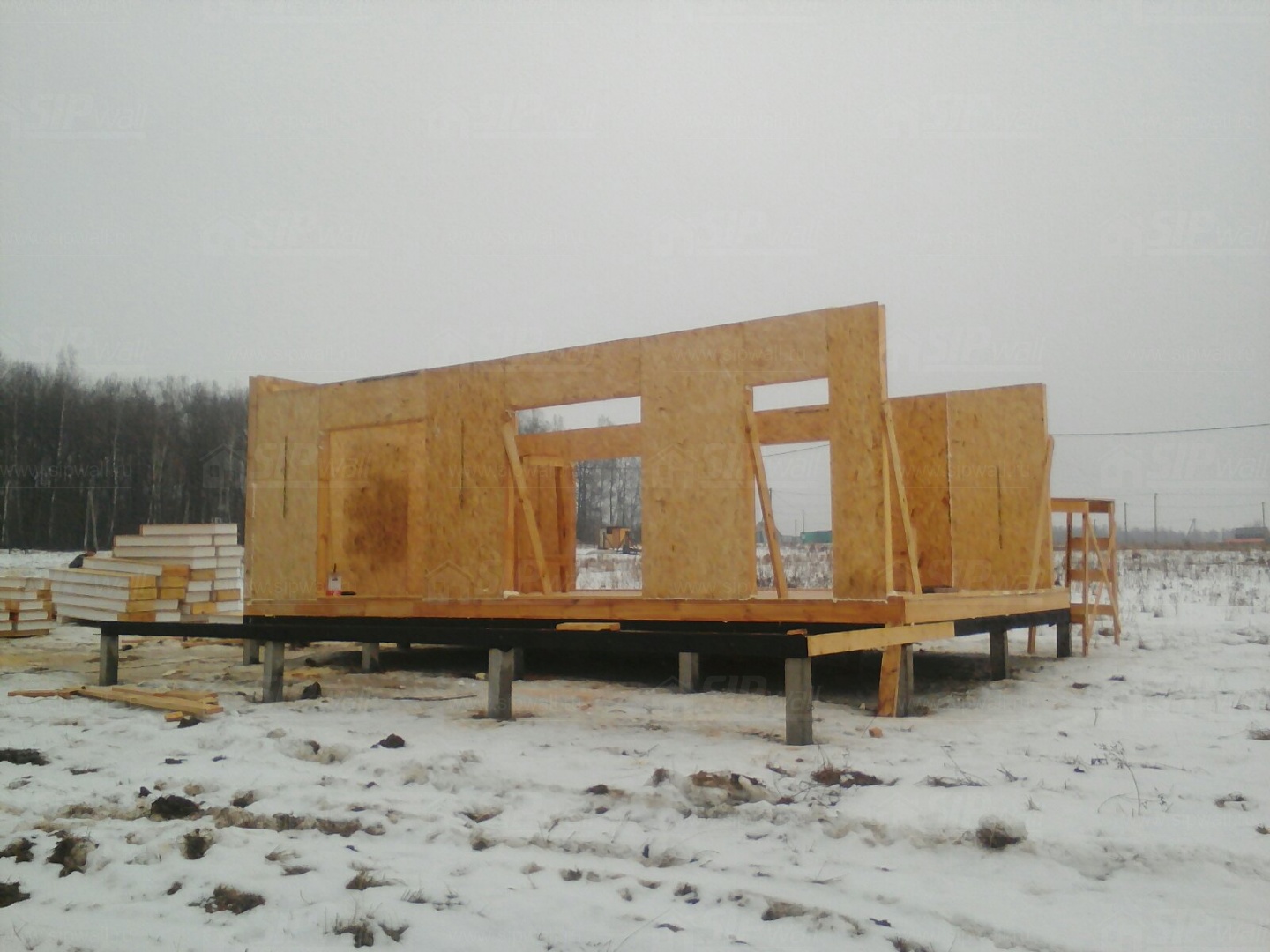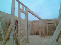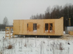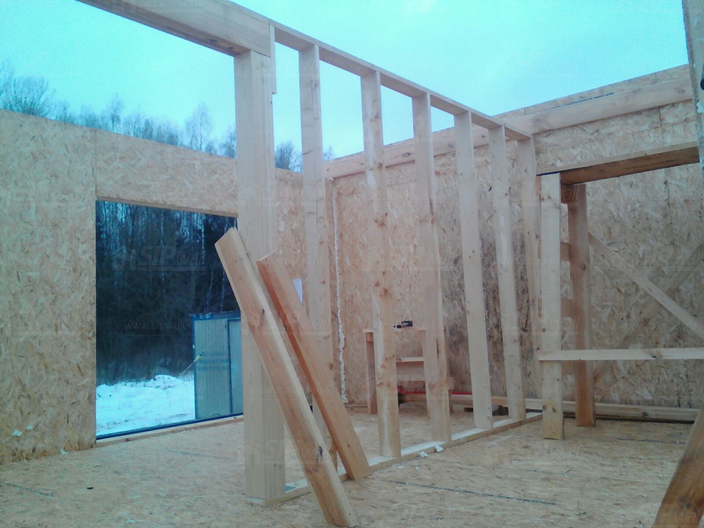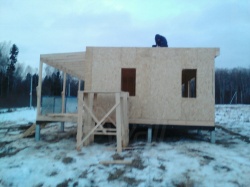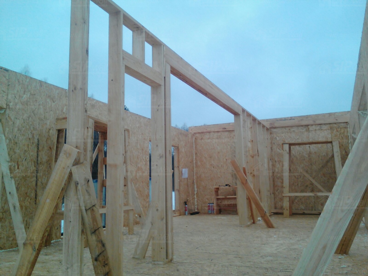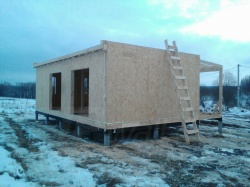 Комплектация домокомплекта: перекрытие на отметке +0.000 - СИП - 224У мм., несущие стены дома выполнены из СИП панелей 174 мм, внутренние несущие и не несущие стены выполнены по каркасной технологии. Кровля - СИП - 224У мм.
