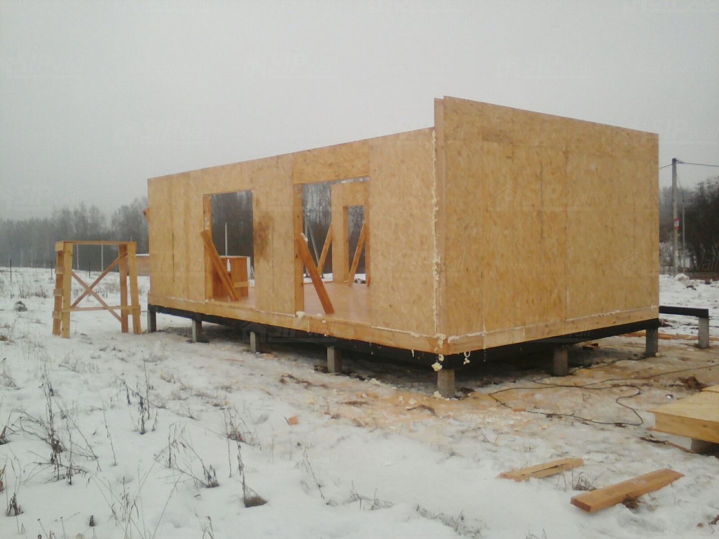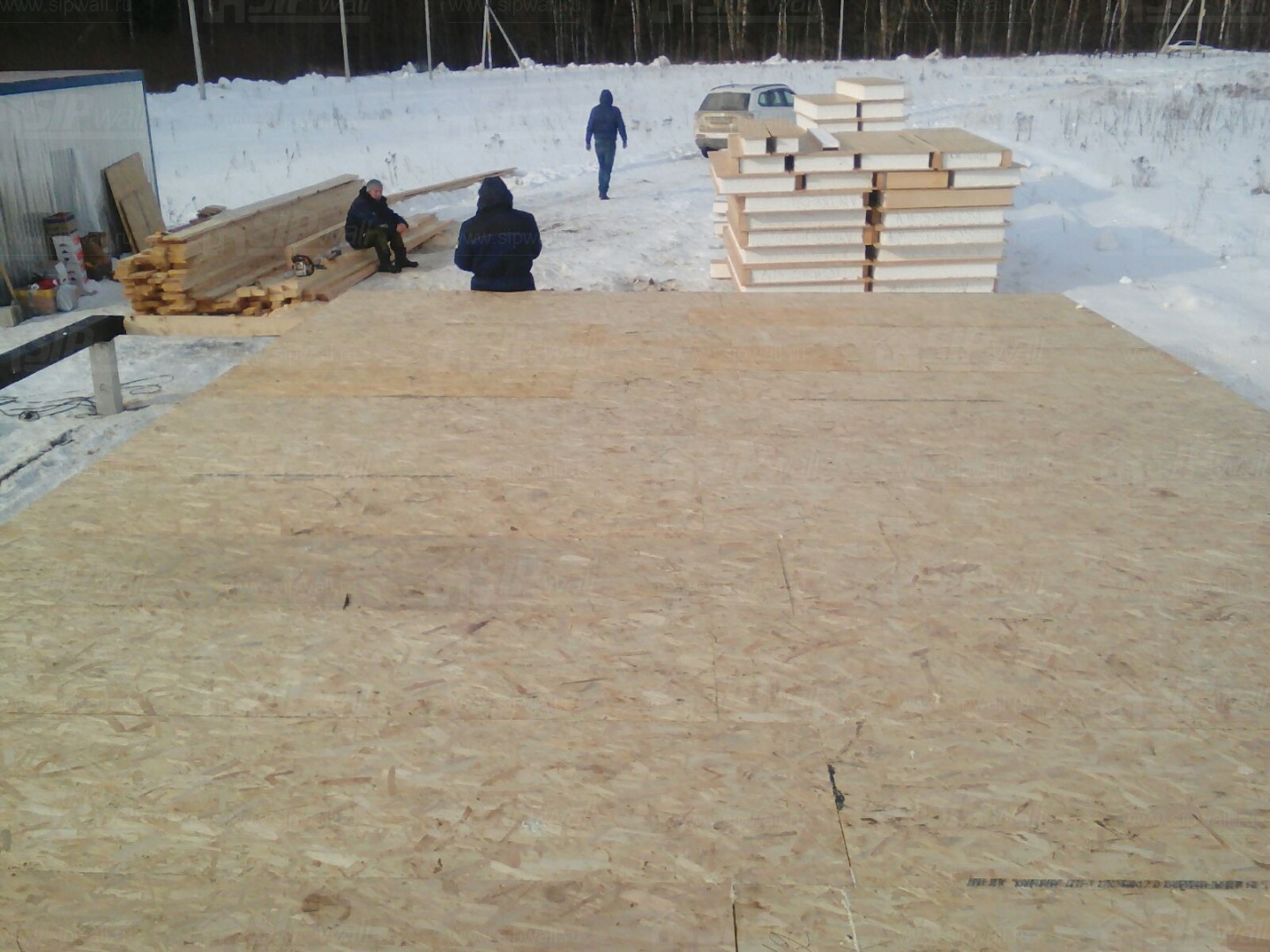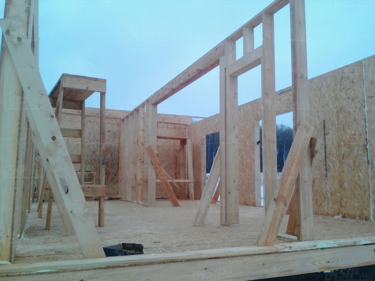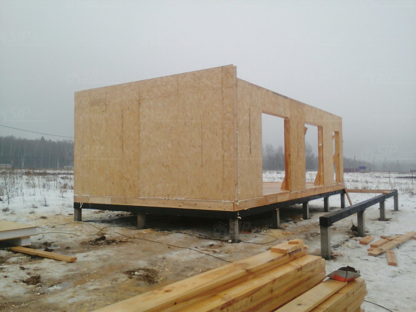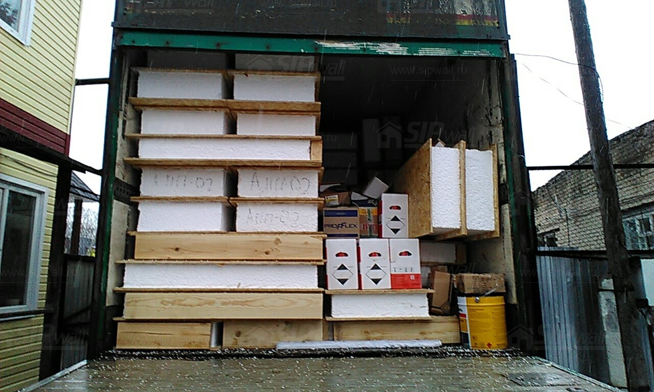 Все СИП панели SIPwall толщиной 224/174/124 мм (плиты OSB-3 толщиной 12 мм "Калевала" Россия и фасадный пенополистирол ПСБ-С 25Ф по ТУ 22.21.41.110−004 – 44755395 −2017 толщиной 200/150/100 мм производства завода "PolarPlast", Россия) нарезаны и обрусованы сухим строганным брусом камерной сушки в соответствии с проектной документацией.