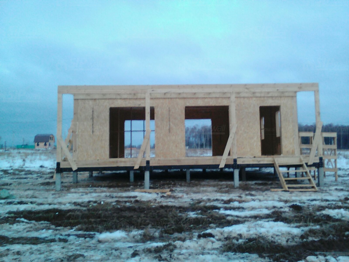 Домокомплект - изготовлен по проекту из СИП панелей произведенный по технологии SIPwall (ЭКОПАН) на собственном заводе расположенном в г. Шуя, Ивановской области. При изготовлении домокомплекта панельно каркасного дома используется только сухой строганный брус камерной сушки, обработанный огнебиозащитным составом.