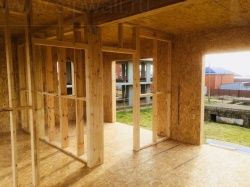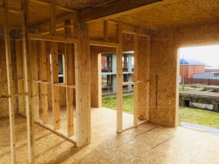 Все СИП панели SIPwall толщиной 224/174/124 мм (плиты OSB-3 толщиной 12 мм "Калевала" Россия и фасадный пенополистирол ПСБ-С 25Ф по ТУ 22.21.41.110−004 – 44755395 −2017 толщиной 200/150/100 мм производства завода "PolarPlast", Россия) нарезаны и обрусованы сухим строганным брусом камерной сушки в соответствии с проектной документацией.