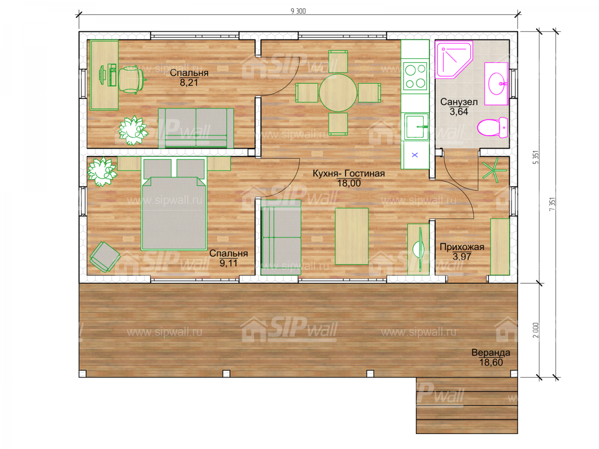 Домокомплект - изготовлен по проекту из СИП панелей произведенный по технологии SIPwall (ЭКОПАН) на собственном заводе расположенном в г. Шуя, Ивановской области. При изготовлении домокомплекта панельно каркасного дома используется только сухой строганный брус камерной сушки, обработанный огнебиозащитным составом.