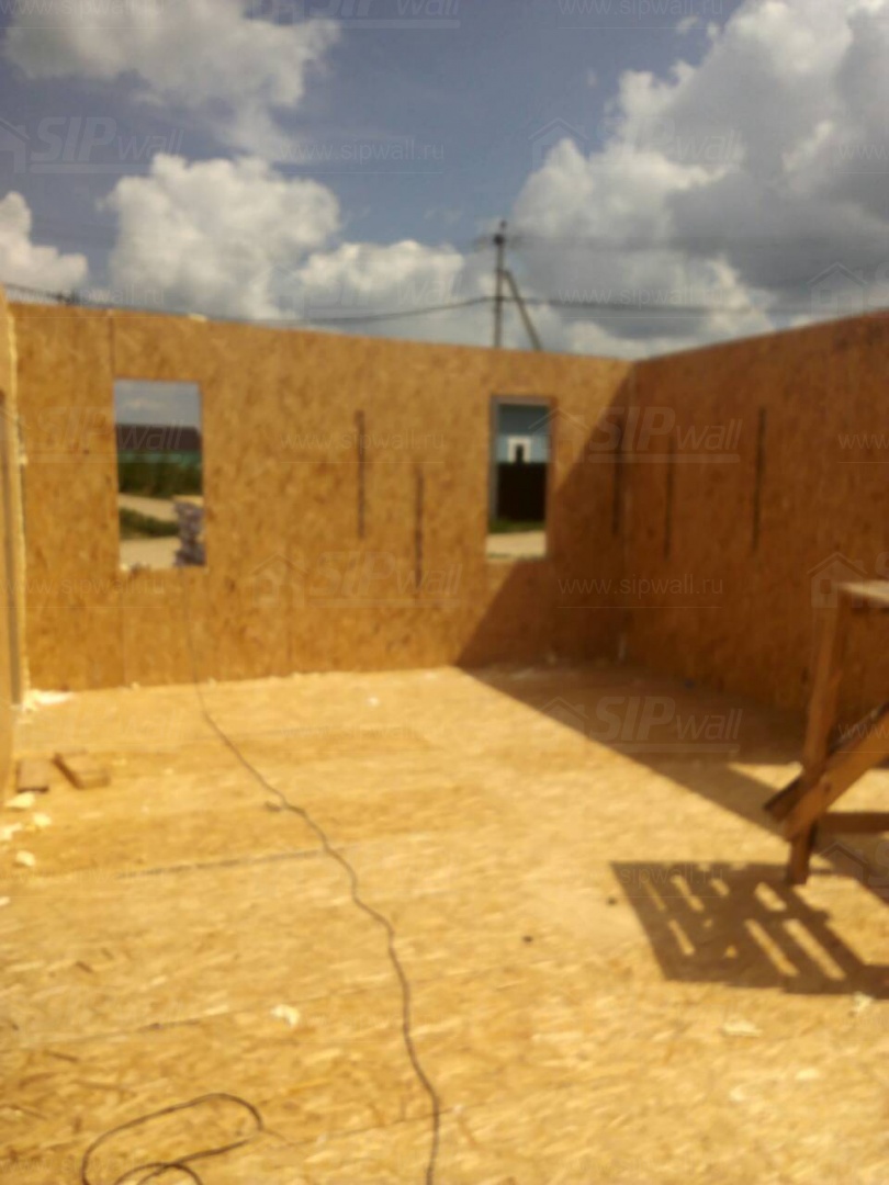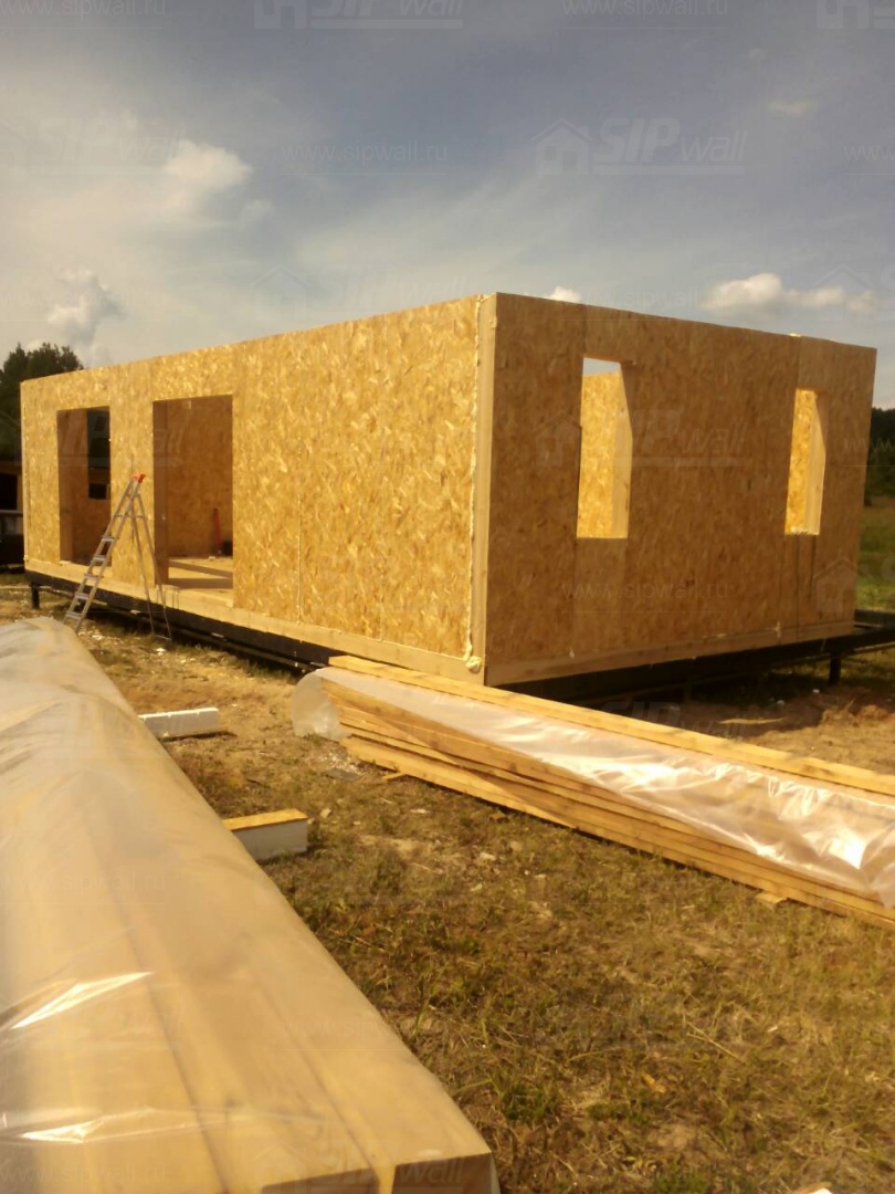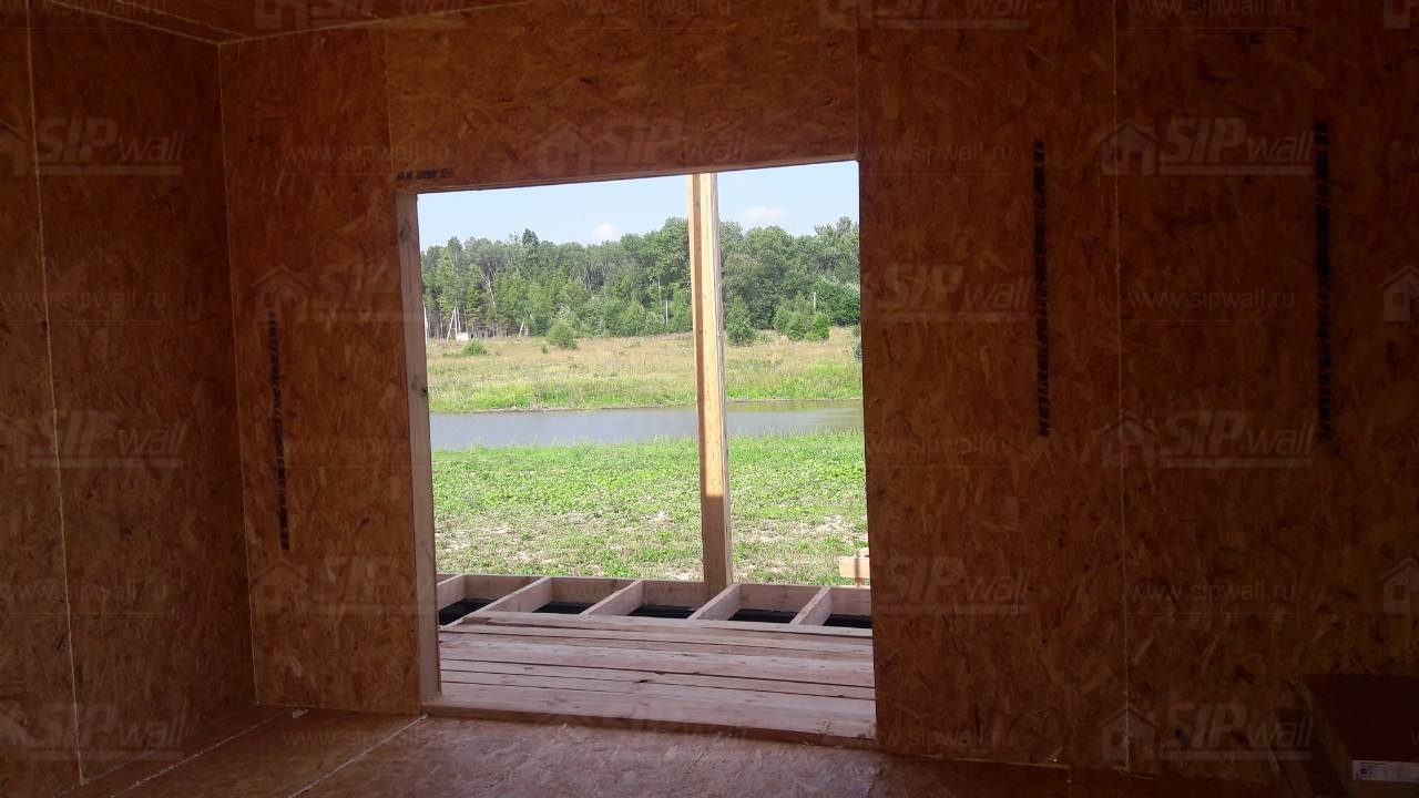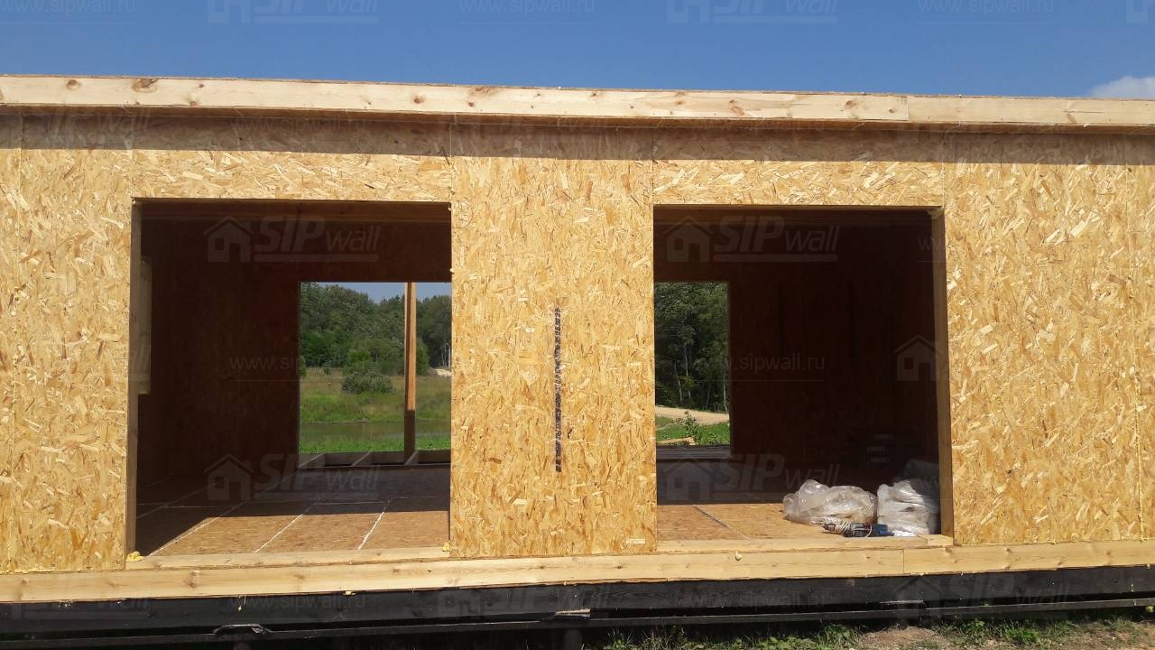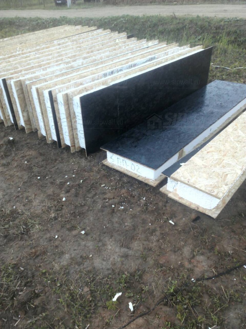 Все СИП панели SIPwall толщиной 224/174/124 мм (плиты OSB-3 толщиной 12 мм "Калевала" Россия и фасадный пенополистирол ПСБ-С 25 по ГОСТ 15588-14 толщиной 200/150/100 мм производства завода "PolarPlast", Россия) нарезаны и обрусованы сухим строганным брусом камерной сушки в соответствии с проектной документацией.