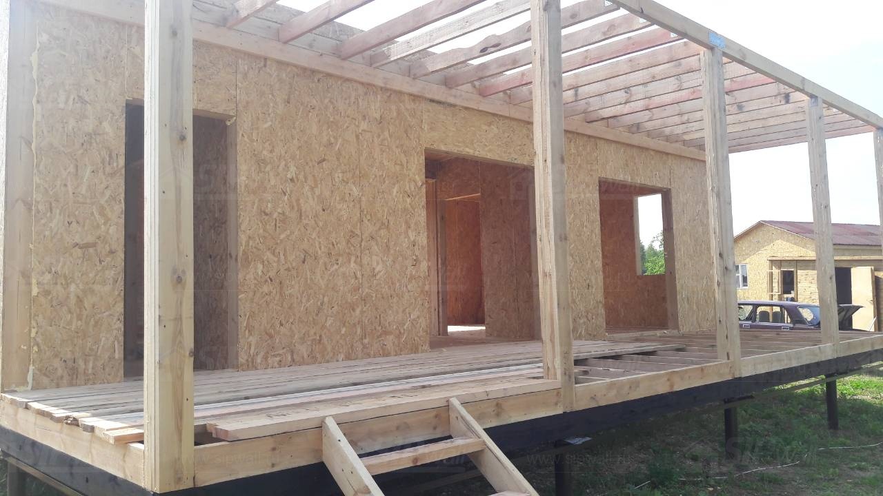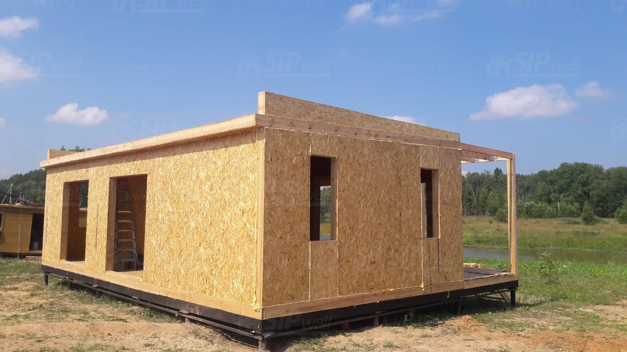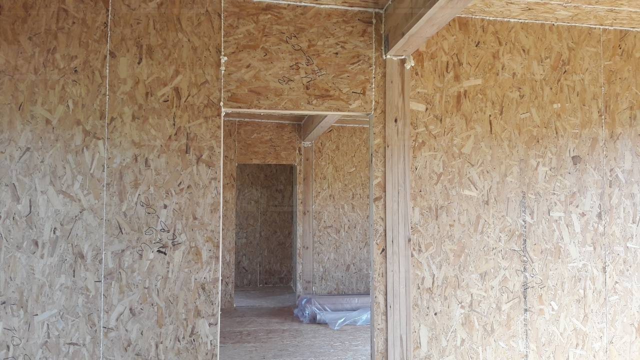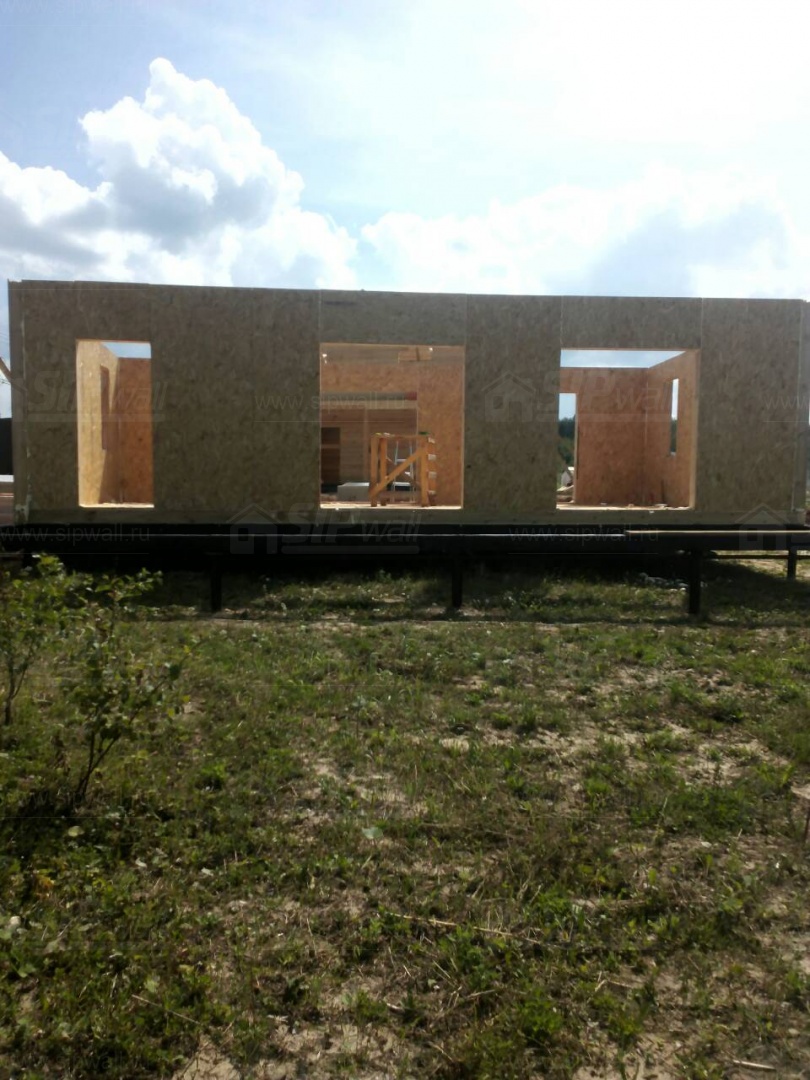 Все СИП панели SIPwall толщиной 224/174/124 мм (плиты OSB-3 толщиной 12 мм "Калевала" Россия и фасадный пенополистирол ПСБ-С 25 по ГОСТ 15588-14 толщиной 200/150/100 мм производства завода "PolarPlast", Россия) нарезаны и обрусованы сухим строганным брусом камерной сушки в соответствии с проектной документацией.