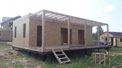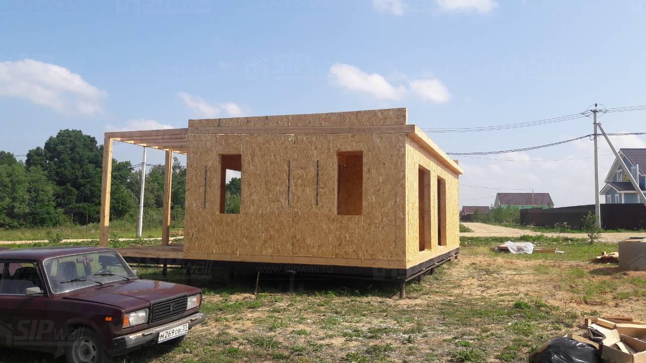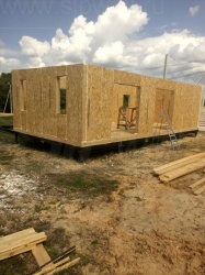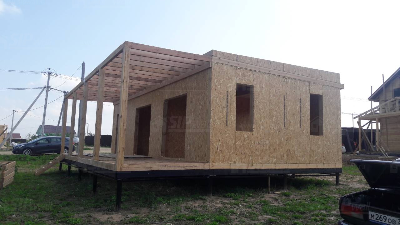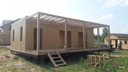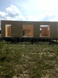 Домокомплект - изготовлен по проекту из СИП панелей произведенный по технологии SIPwall (ЭКОПАН) на собственном заводе расположенном в г. Шуя, Ивановской области. При изготовлении домокомплекта панельно каркасного дома используется только сухой строганный брус камерной сушки, обработанный огнебиозащитным составом.