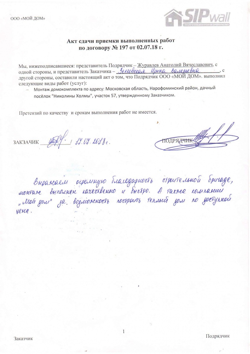 На выходе с завода «СИПВОЛЛ» домокомплект имеет 99-% ную готовность.