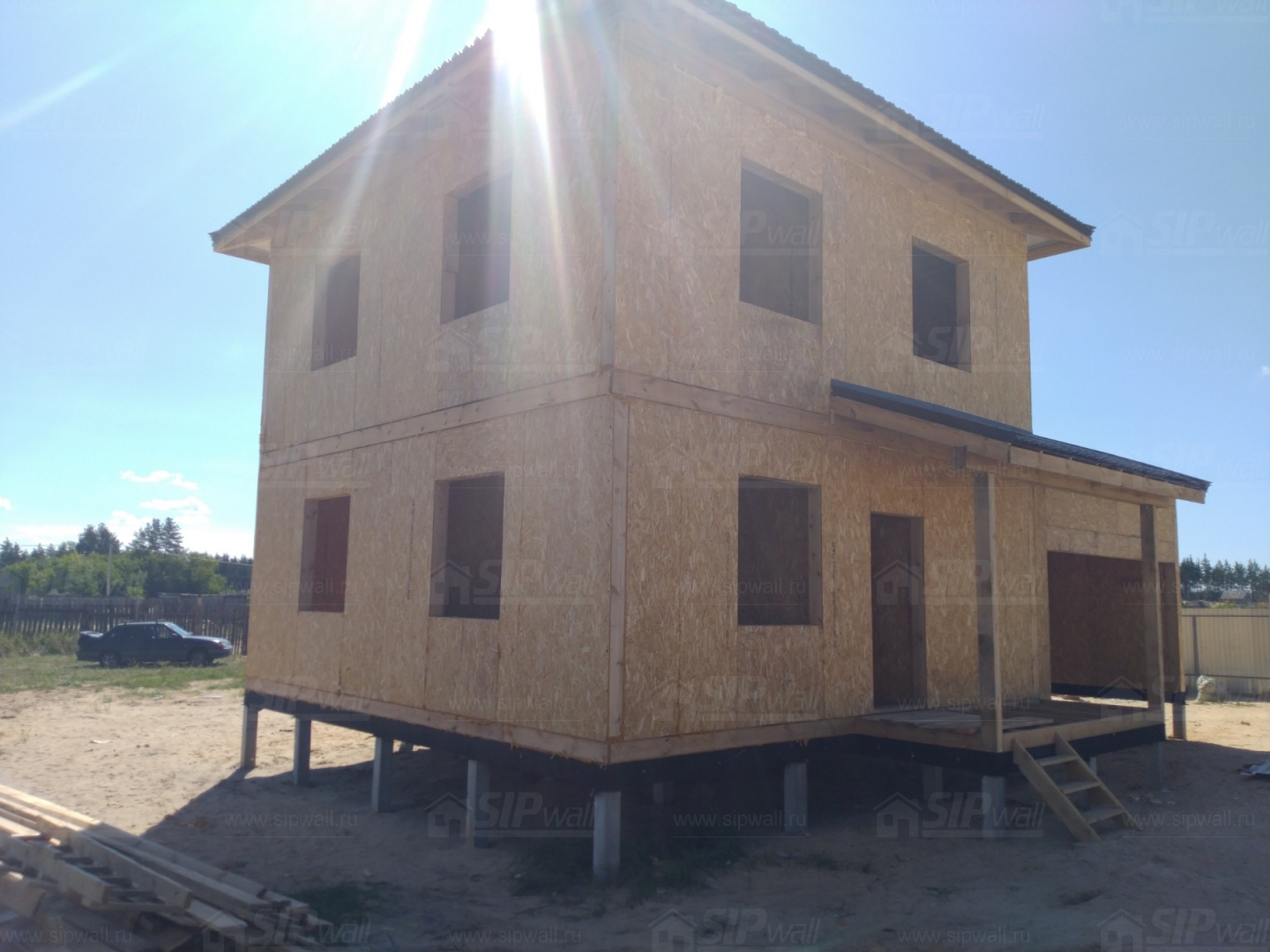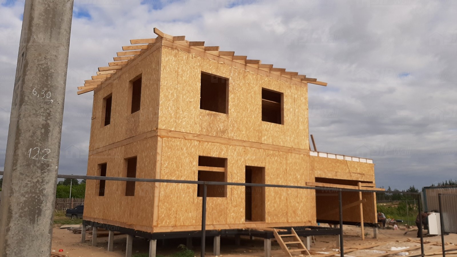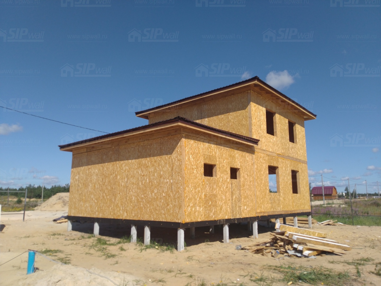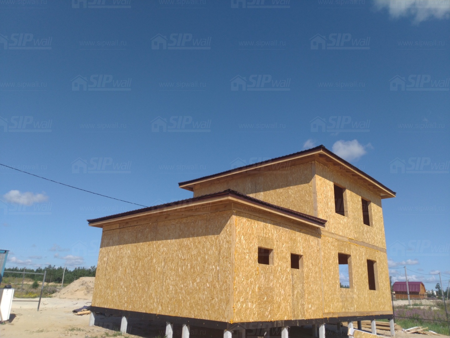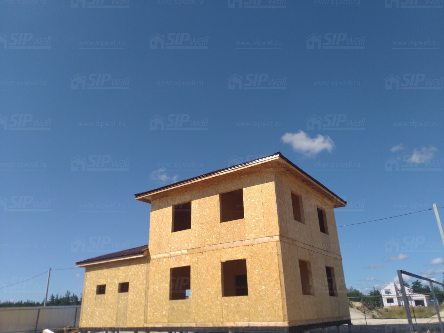 Все СИП панели SIPwall толщиной 224/174/124 мм (плиты OSB-3 толщиной 12 мм "Калевала" Россия и фасадный пенополистирол ППС-14 толщиной 200/150/100 мм производства, Россия) нарезаны и обрусованы сухим строганным брусом камерной сушки в соответствии с проектной документацией.