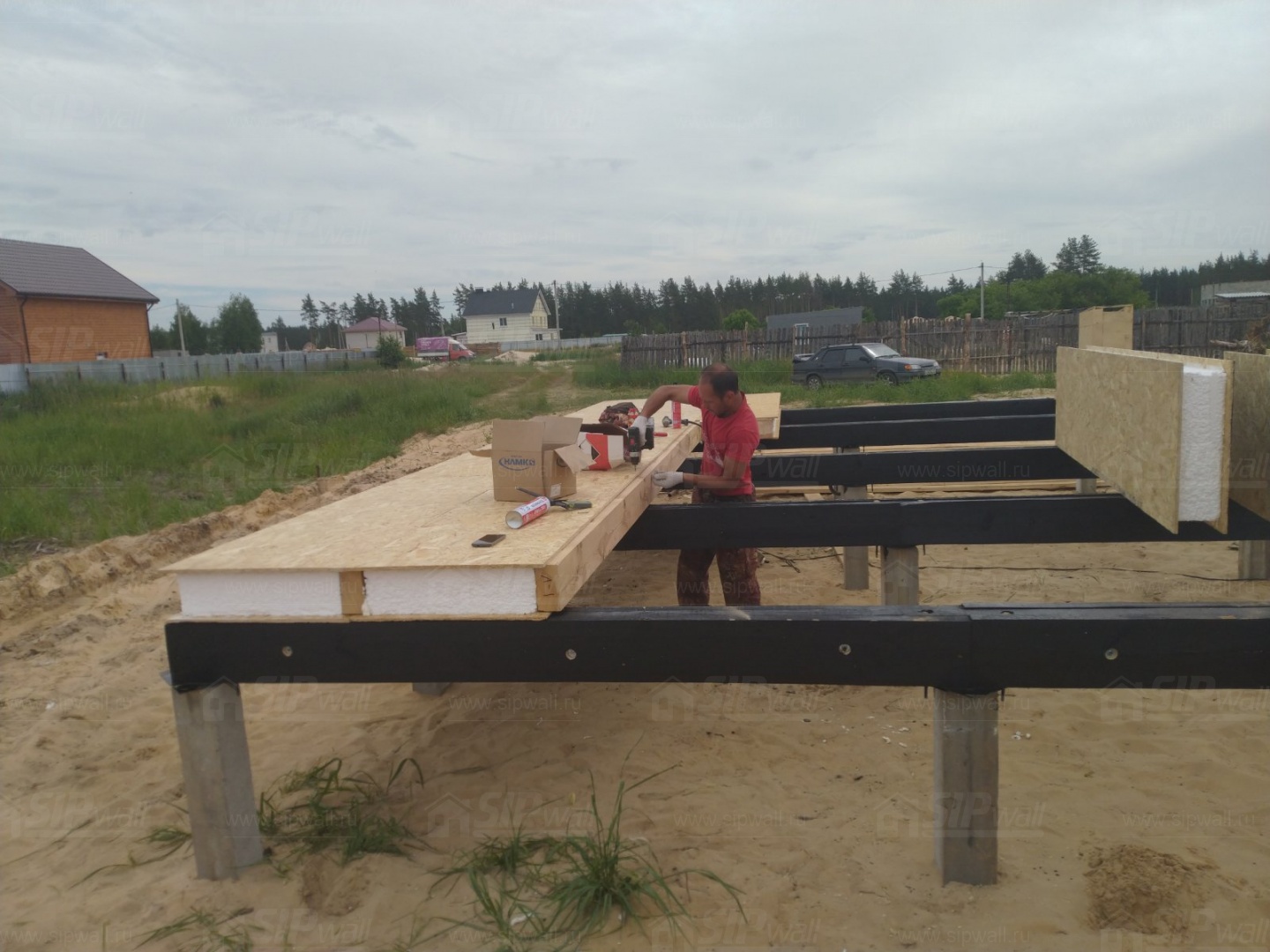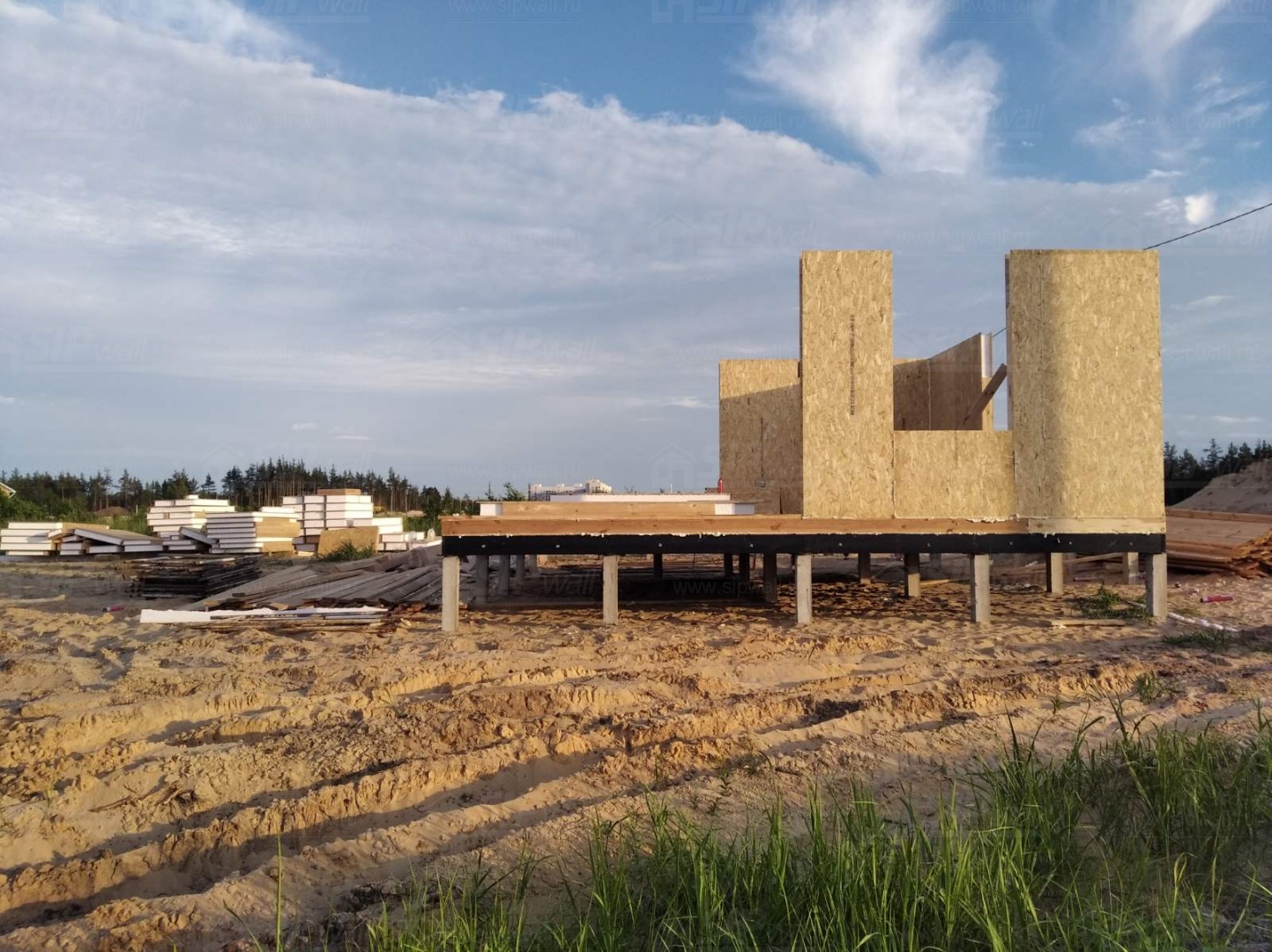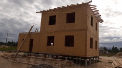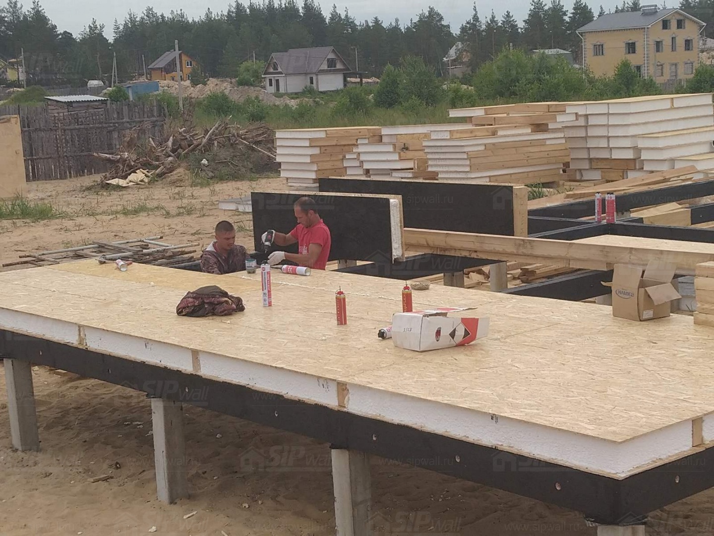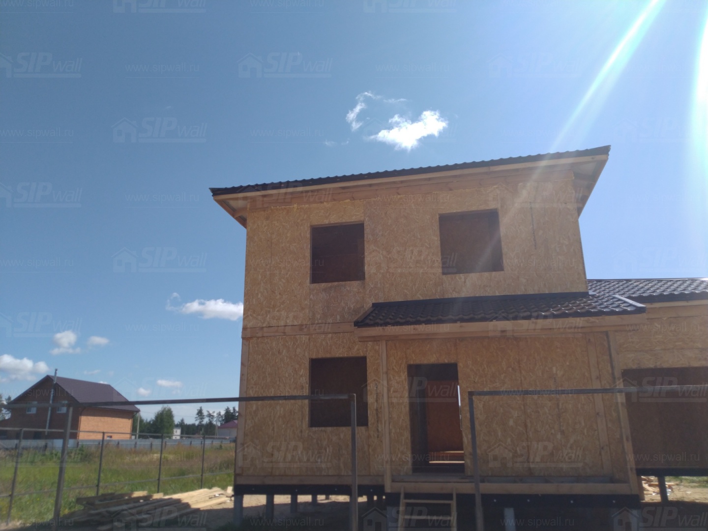 Все СИП панели SIPwall толщиной 224/174/124 мм (плиты OSB-3 толщиной 12 мм "Калевала" Россия и фасадный пенополистирол ППС-14 толщиной 200/150/100 мм производства, Россия) нарезаны и обрусованы сухим строганным брусом камерной сушки в соответствии с проектной документацией.