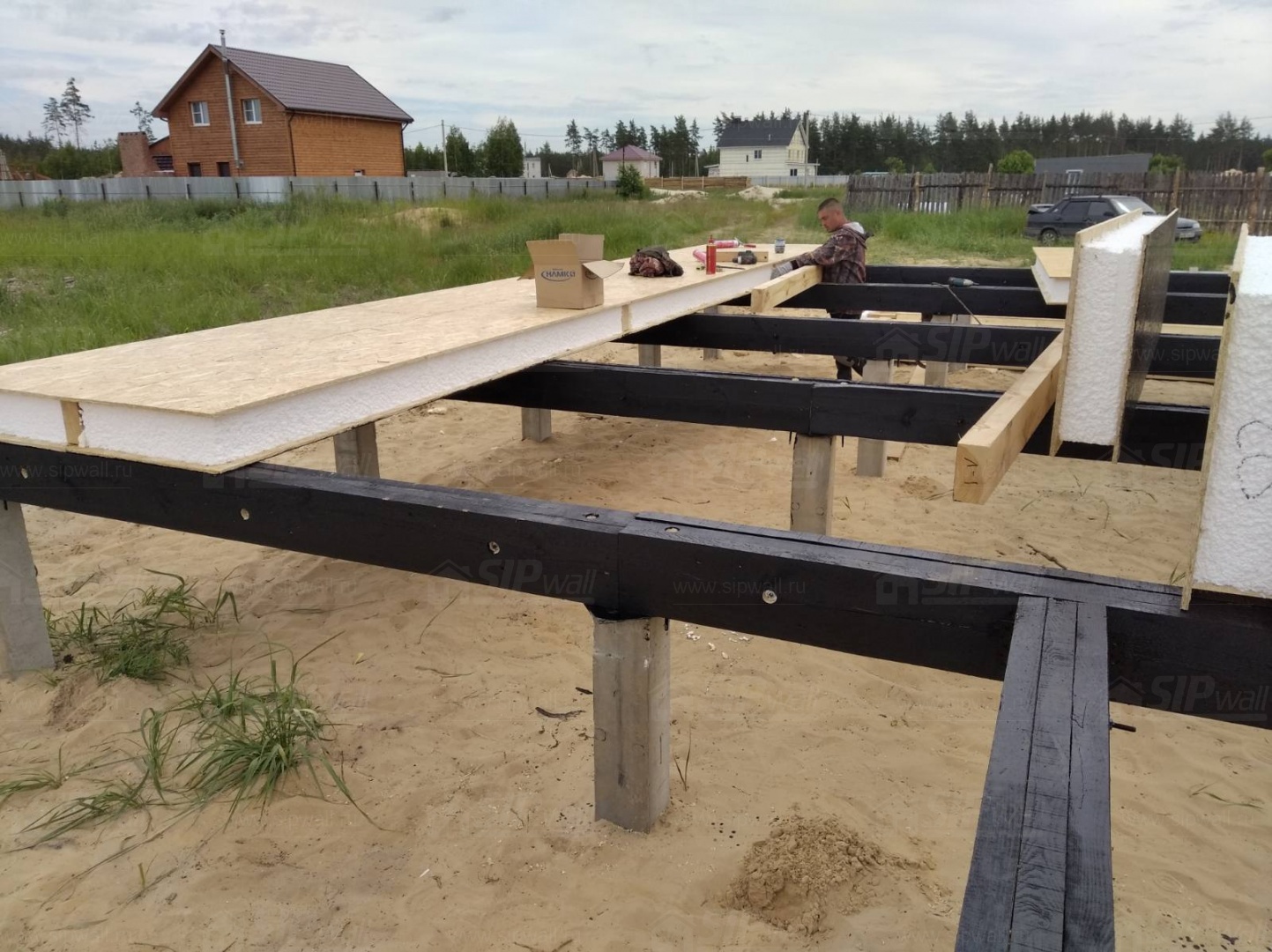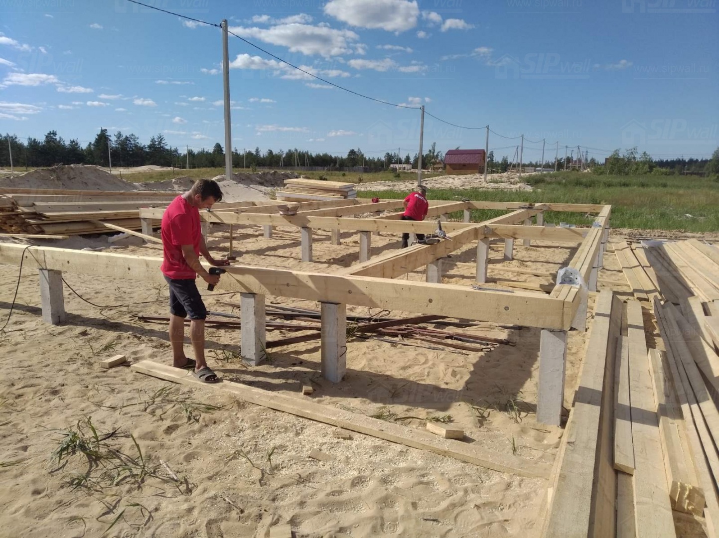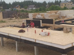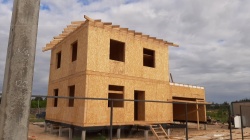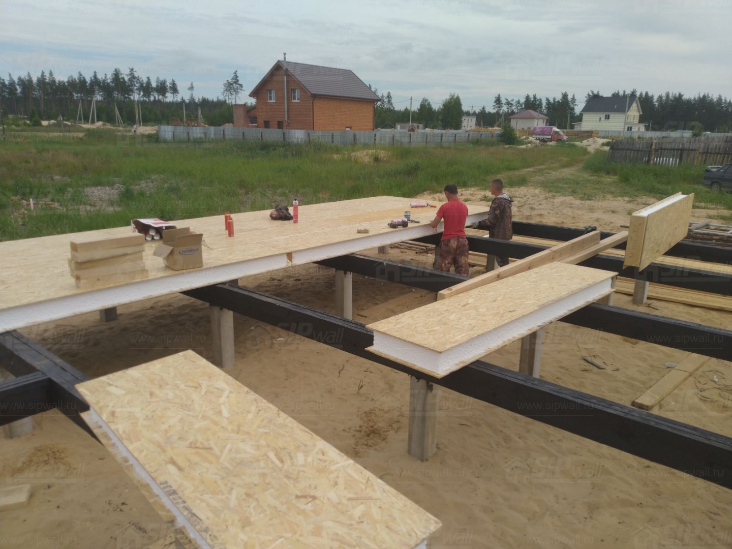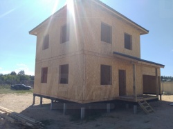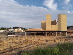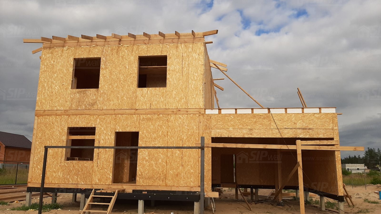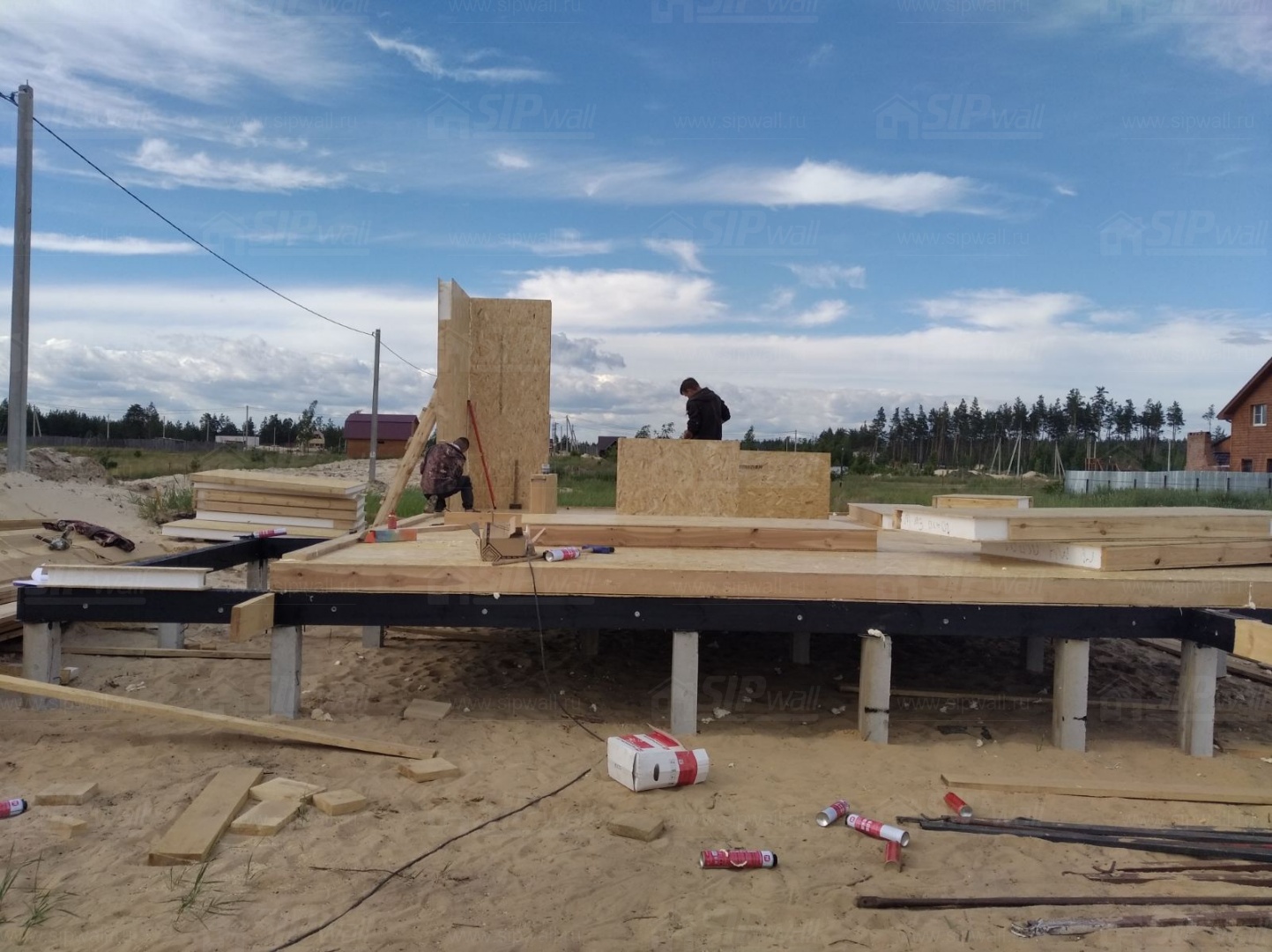 Все СИП панели SIPwall толщиной 224/174/124 мм (плиты OSB-3 толщиной 12 мм "Калевала" Россия и фасадный пенополистирол ППС-14 толщиной 200/150/100 мм производства, Россия) нарезаны и обрусованы сухим строганным брусом камерной сушки в соответствии с проектной документацией.