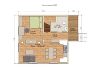 Домокомплект - изготовлен по проекту из СИП панелей произведенный по технологии SIPwall (ЭКОПАН) на собственном заводе расположенном в г. Шуя, Ивановской области. При изготовлении домокомплекта панельно каркасного дома используется только сухой строганный брус камерной сушки, обработанный огнебиозащитным составом.