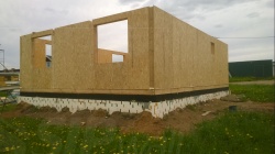 Все СИП панели SIPwall толщиной 224/174/124 мм (плиты OSB-3 толщиной 12 мм "Калевала" Россия и фасадный пенополистирол ПСБ-С 25 по ГОСТ 15588-14 толщиной 200/150/100 мм производства завода "PolarPlast", Россия) нарезаны и обрусованы сухим строганным брусом в соответствии с проектной документацией.