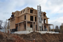Комплектация домокомплекта: нулевое перекрытие -отсутсвует, несущие стены дома выполнены из СИП панелей 174 мм., внутренние несущие стены выполнены из СИП панелей 174 мм., и внутренние не несущие перегородки выполнены выполнены из СИП панелей 124 мм.. Перекрытие межэтажное балочная система с применением LVL - бруса. Кровля - комбинированная - из СИП панелей - 174 мм производства компании СИПВОЛЛ + стропильная система.