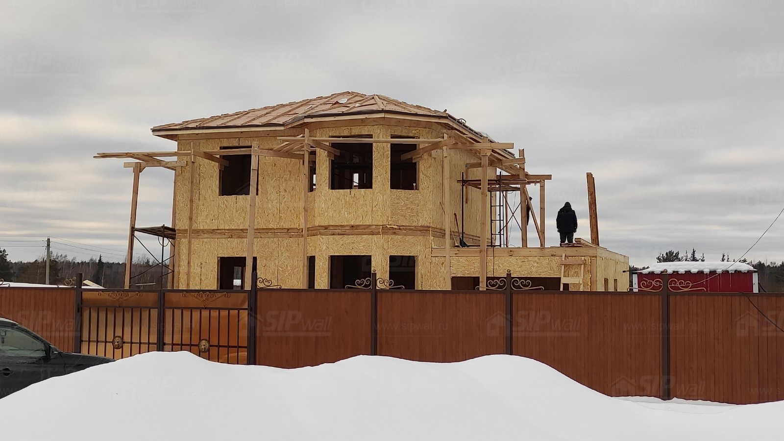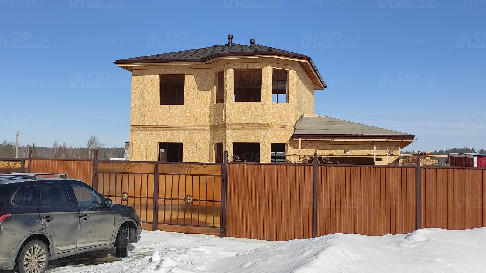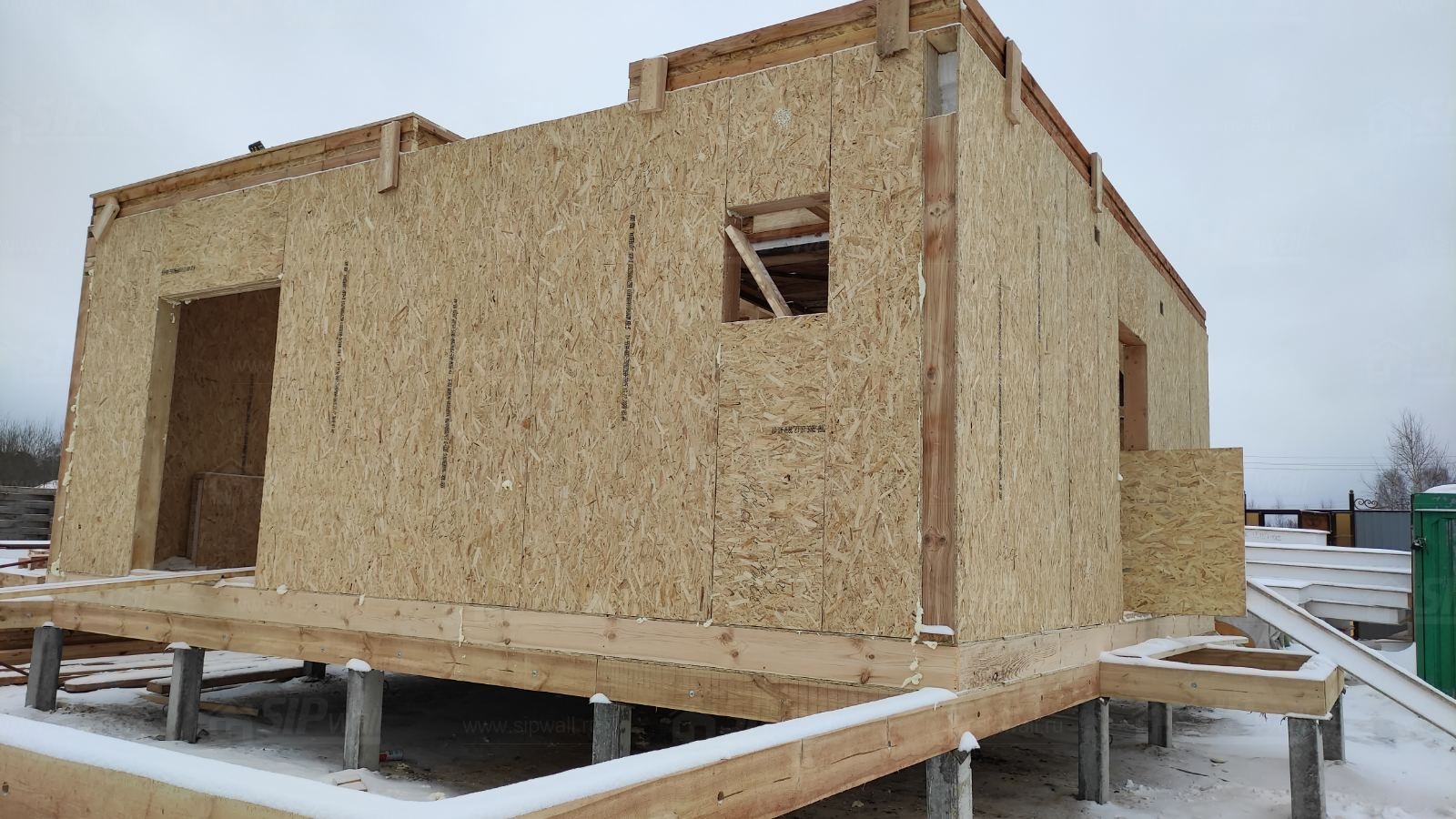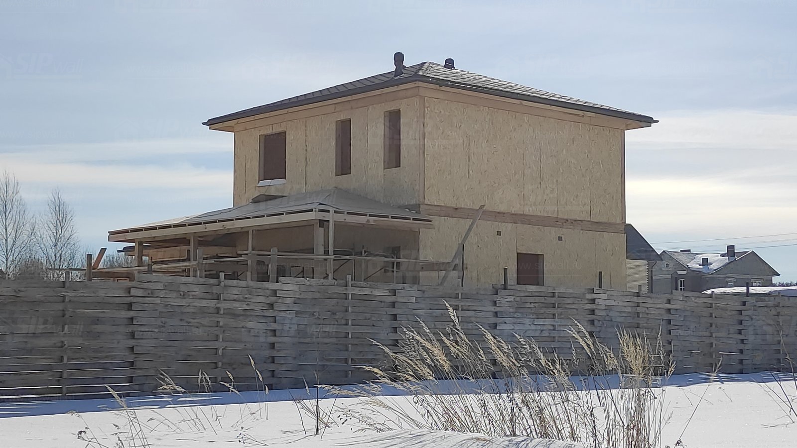 Все СИП панели SIPwall толщиной 224/174/124 мм (плиты OSB-3 толщиной 12 мм "Калевала" Россия и фасадный пенополистирол ППС-14 толщиной 200/150/100 мм производства, Россия) нарезаны и обрусованы сухим строганным брусом камерной сушки в соответствии с проектной документацией.