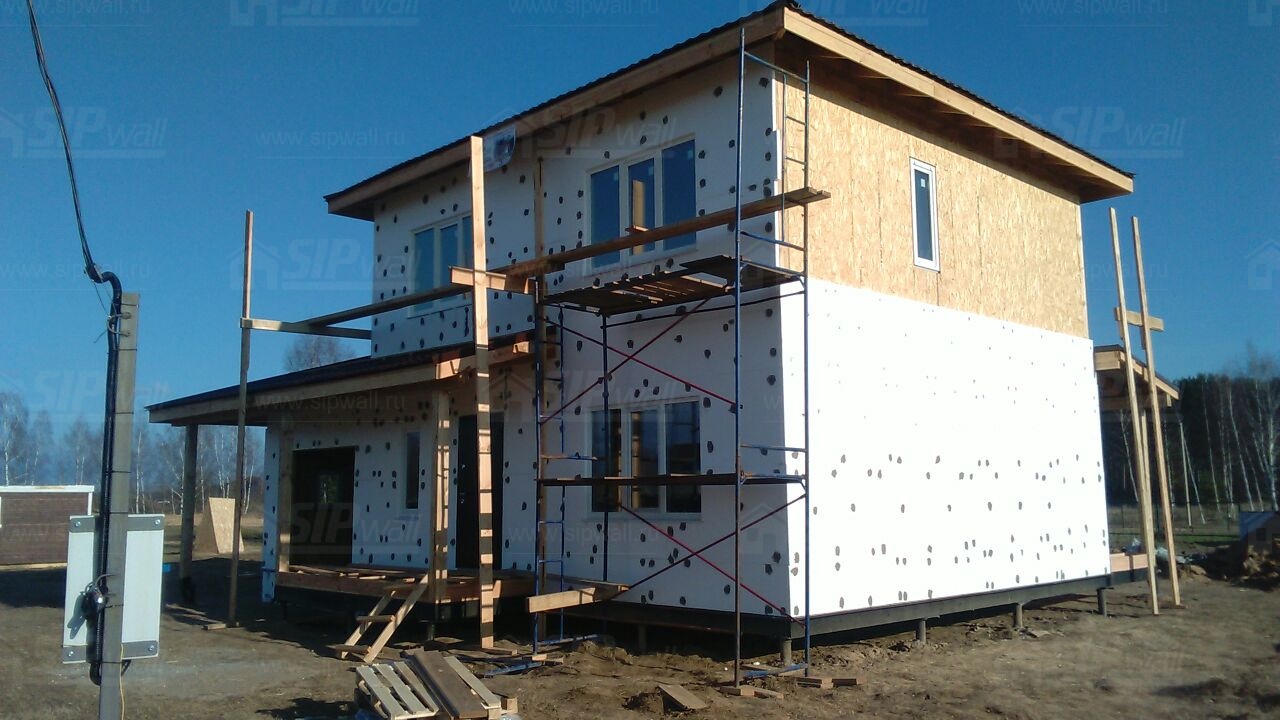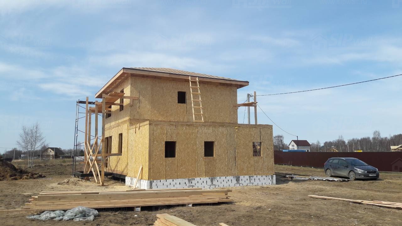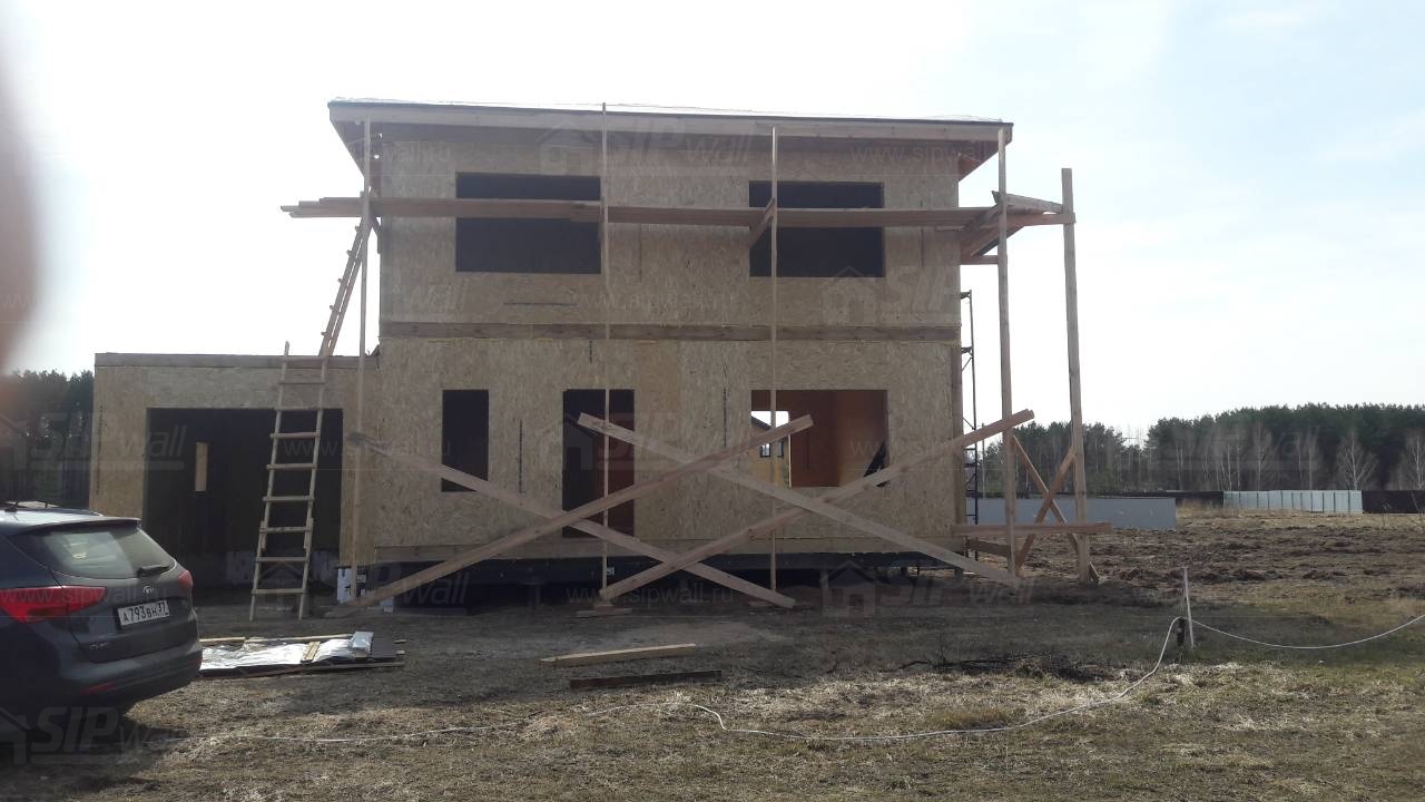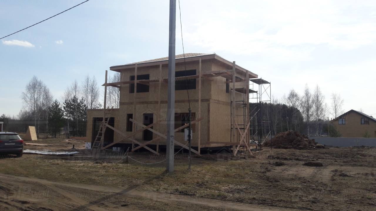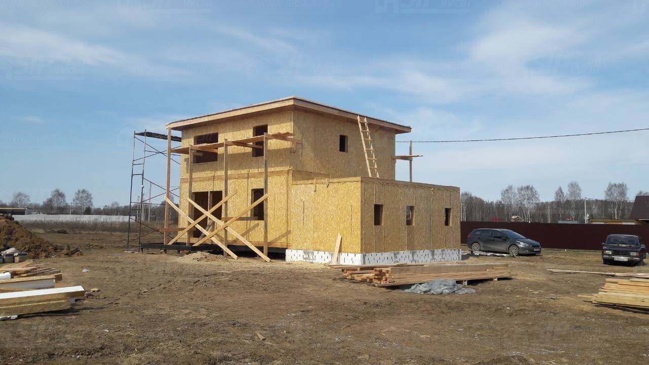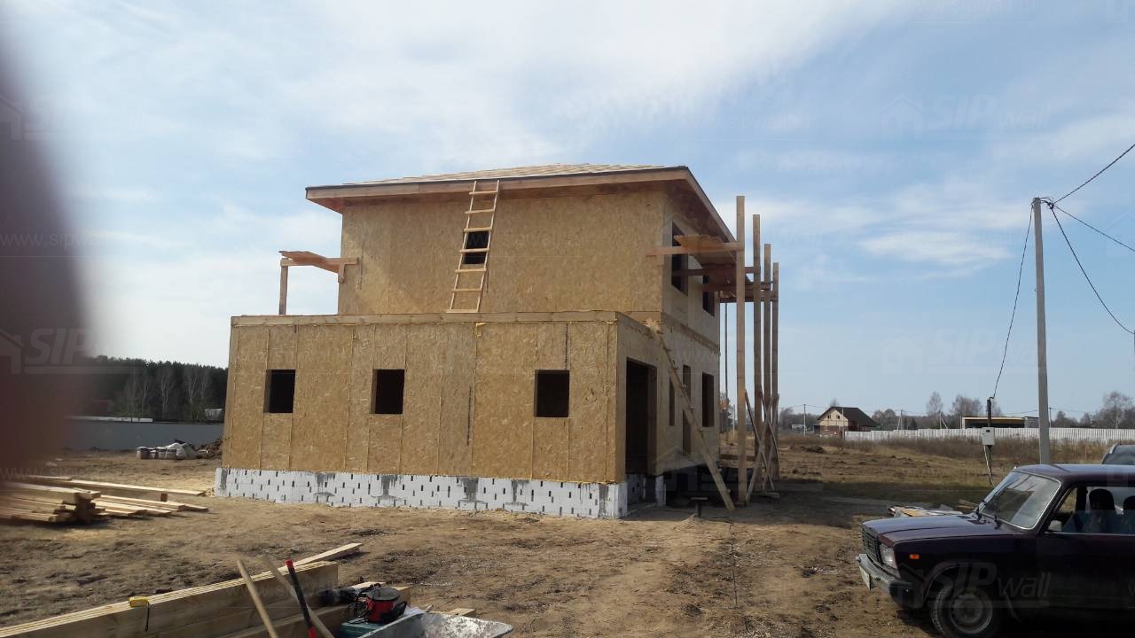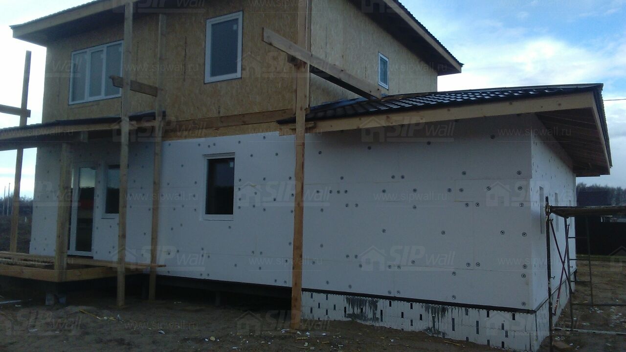 Все СИП панели SIPwall толщиной 224/174/124 мм (плиты OSB-3 толщиной 12 мм "Калевала" Россия и фасадный пенополистирол ПСБ-С 25 по ГОСТ 15588-14 толщиной 200/150/100 мм производства завода "PolarPlast", Россия) нарезаны и обрусованы сухим строганным брусом камерной сушки в соответствии с проектной документацией.