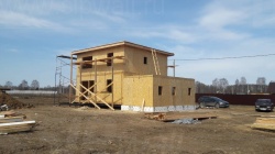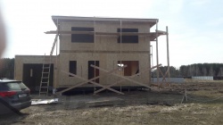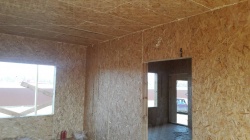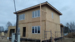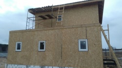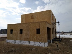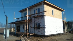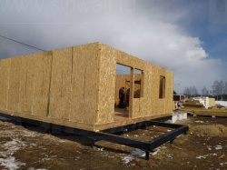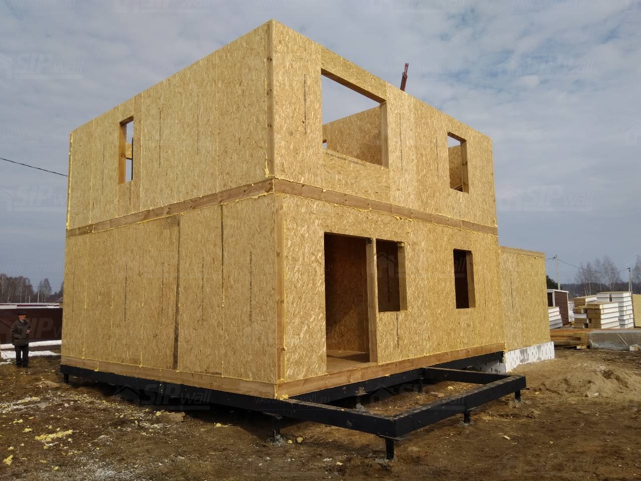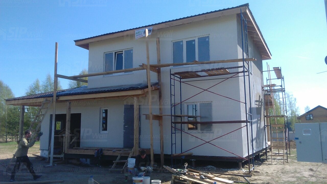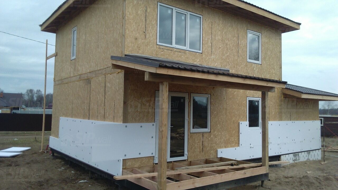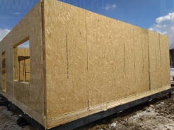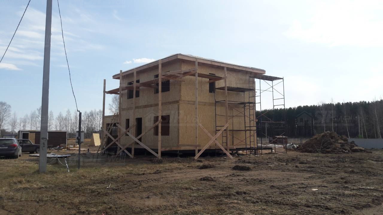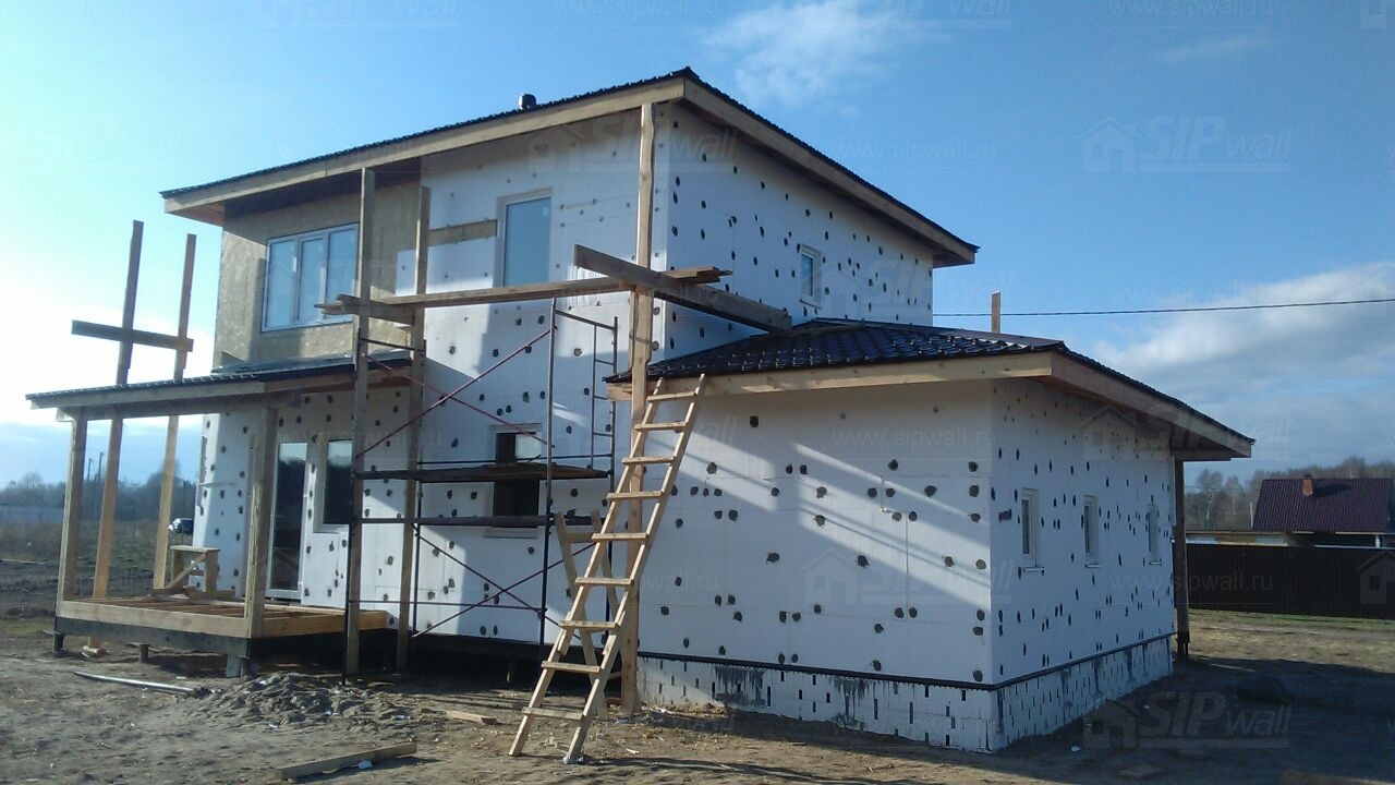 Все СИП панели SIPwall толщиной 224/174/124 мм (плиты OSB-3 толщиной 12 мм "Калевала" Россия и фасадный пенополистирол ПСБ-С 25 по ГОСТ 15588-14 толщиной 200/150/100 мм производства завода "PolarPlast", Россия) нарезаны и обрусованы сухим строганным брусом камерной сушки в соответствии с проектной документацией.