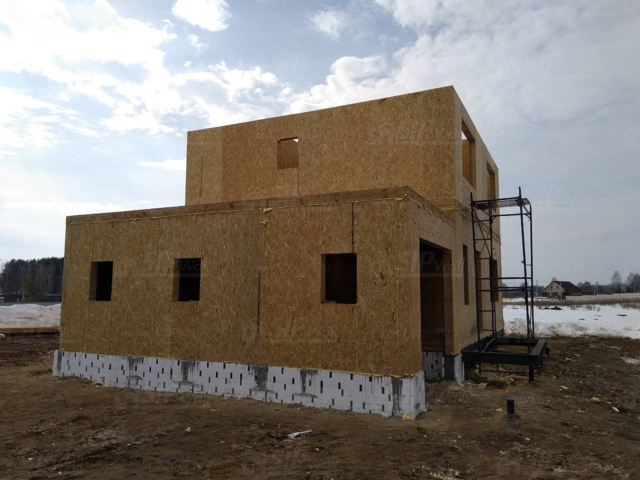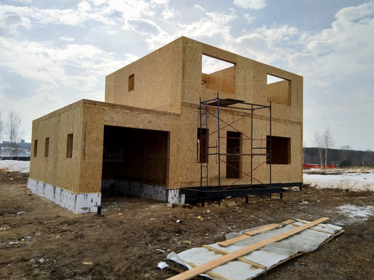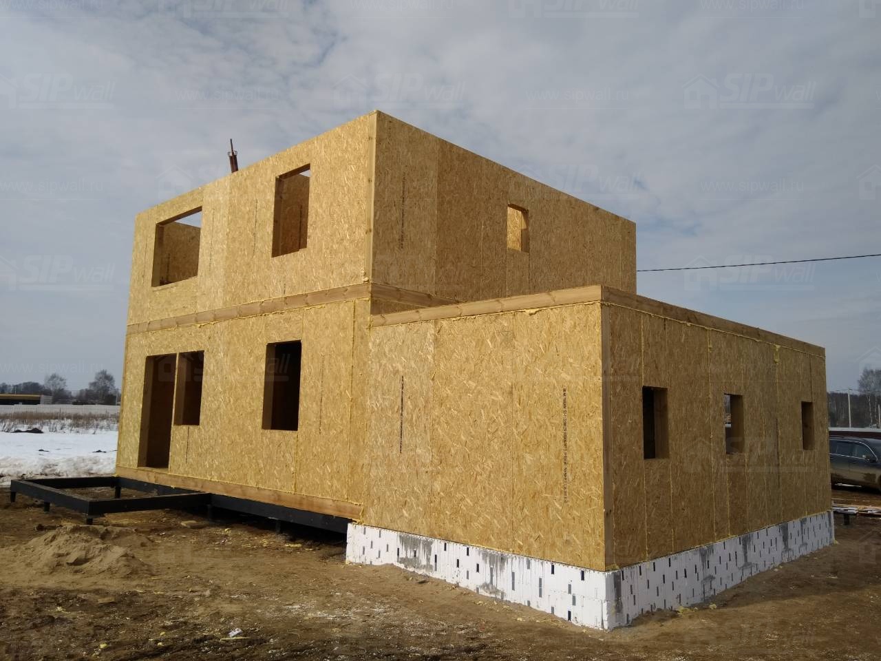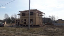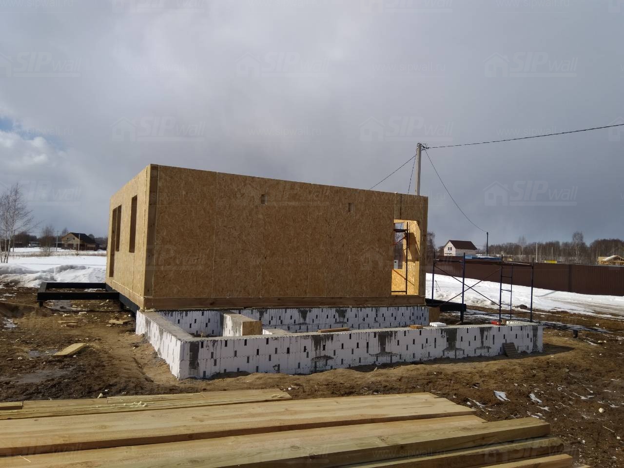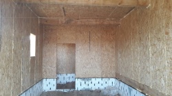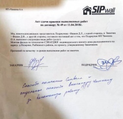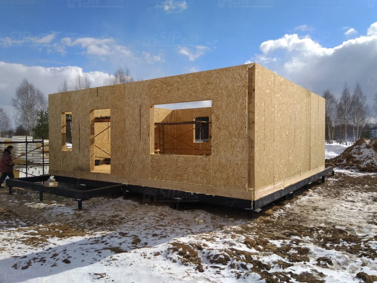 Все СИП панели SIPwall толщиной 224/174/124 мм (плиты OSB-3 толщиной 12 мм "Калевала" Россия и фасадный пенополистирол ПСБ-С 25 по ГОСТ 15588-14 толщиной 200/150/100 мм производства завода "PolarPlast", Россия) нарезаны и обрусованы сухим строганным брусом камерной сушки в соответствии с проектной документацией.