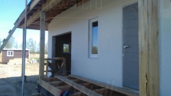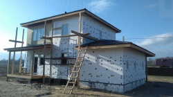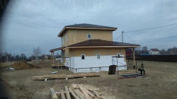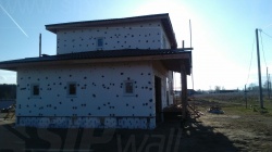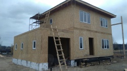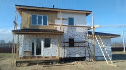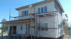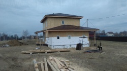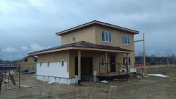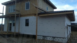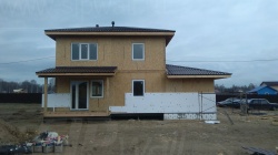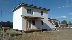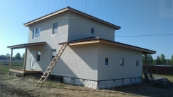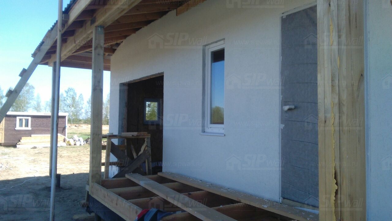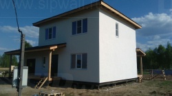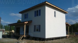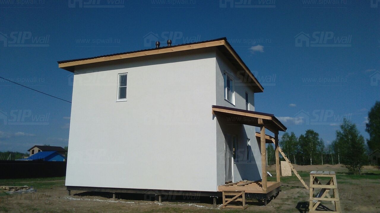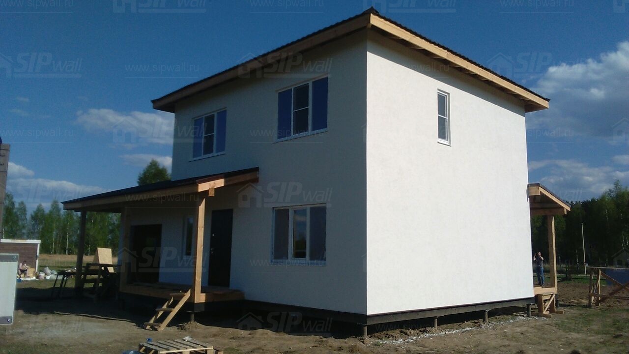Домокомплект - изготовлен по проекту из СИП панелей произведенный по технологии SIPwall (ЭКОПАН) на собственном заводе расположенном в г. Шуя, Ивановской области. При изготовлении домокомплекта панельно каркасного дома используется только сухой строганный брус камерной сушки, обработанный огнебиозащитным составом.