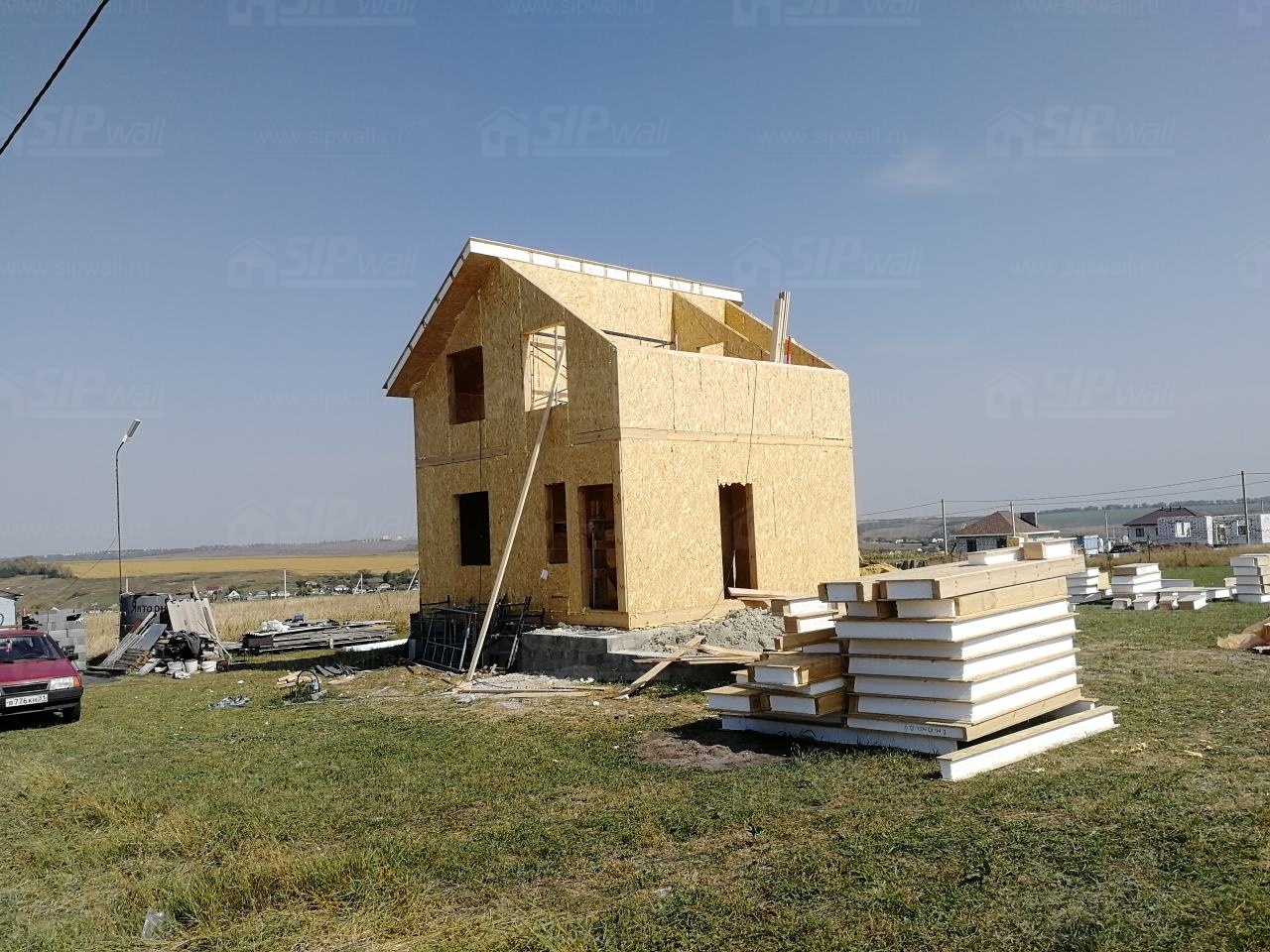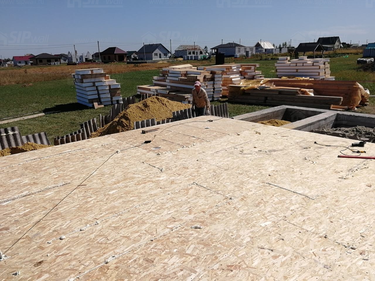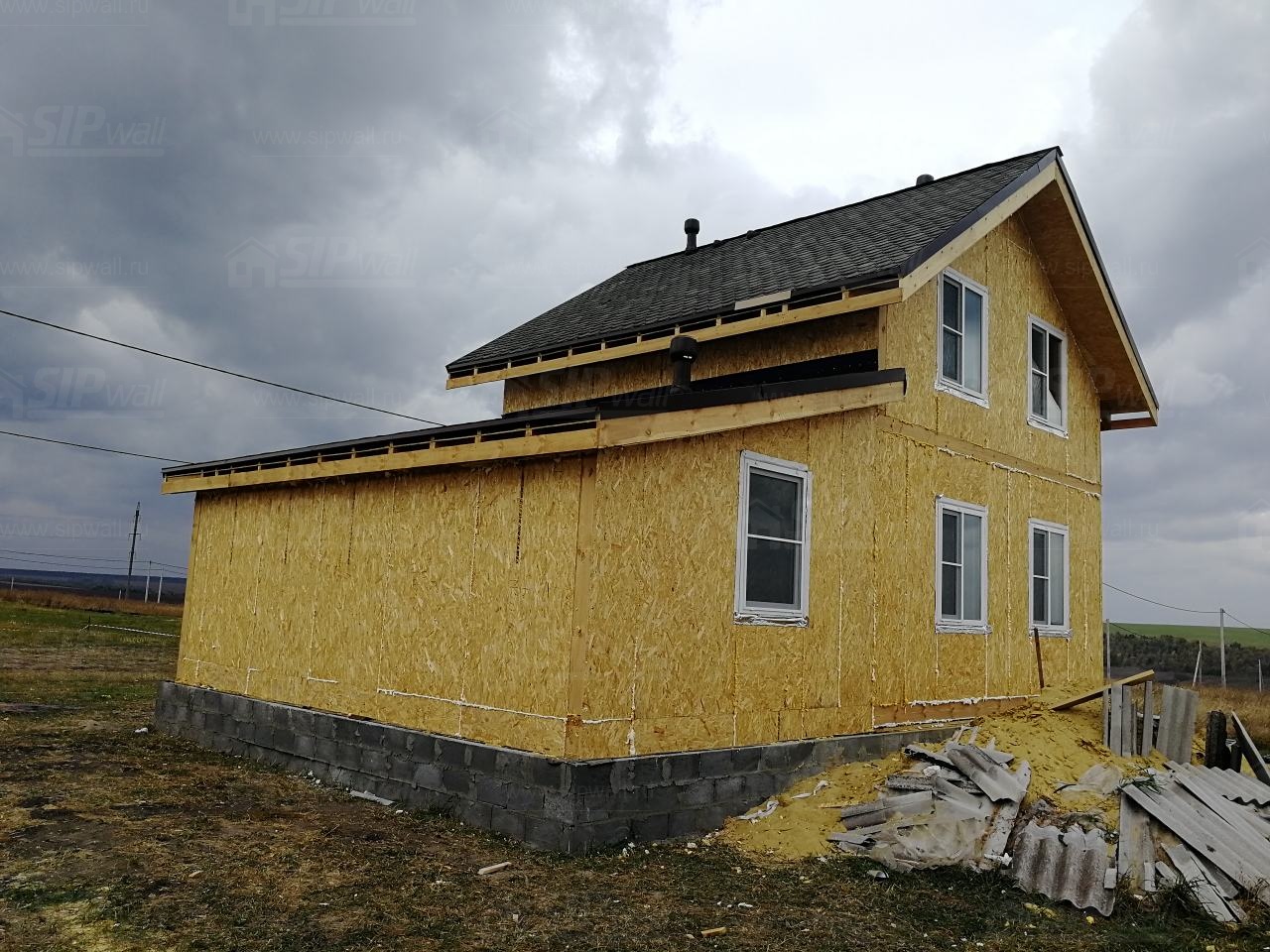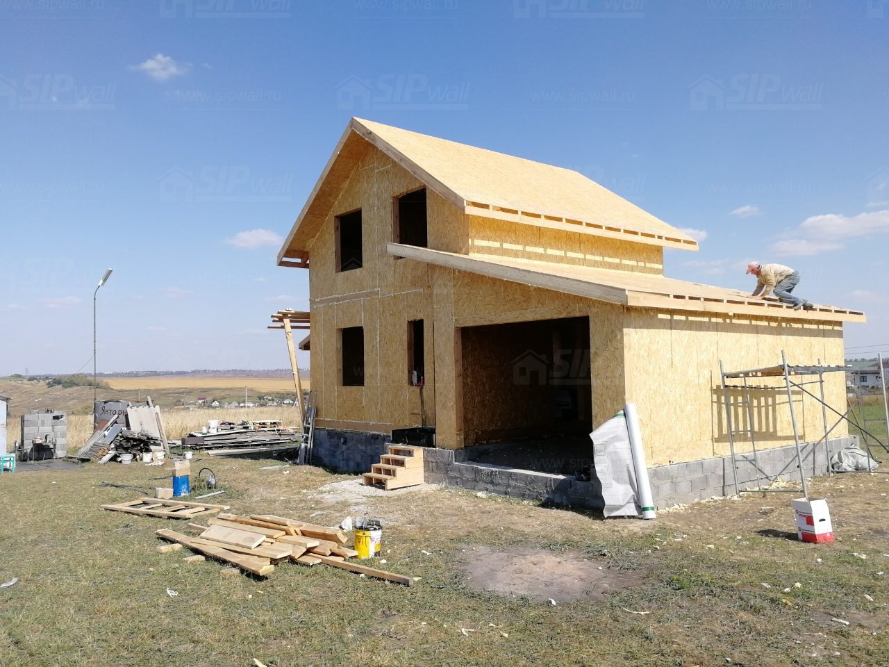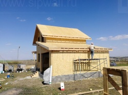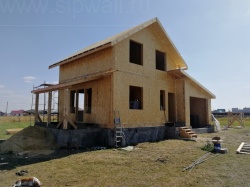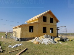 Комплектация домокомплекта: перекрытие на отметке +0.000 - СИП - 174У мм., несущие стены дома выполнены из СИП панелей 174 мм., внутренние несущие стены СИП - 174У мм и внутренние не несущие перегородки СИП - 124У мм. Межэтажное и чердачное перекрытие - СИП - 174У мм, Кровля - СИП - 224У мм..