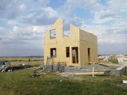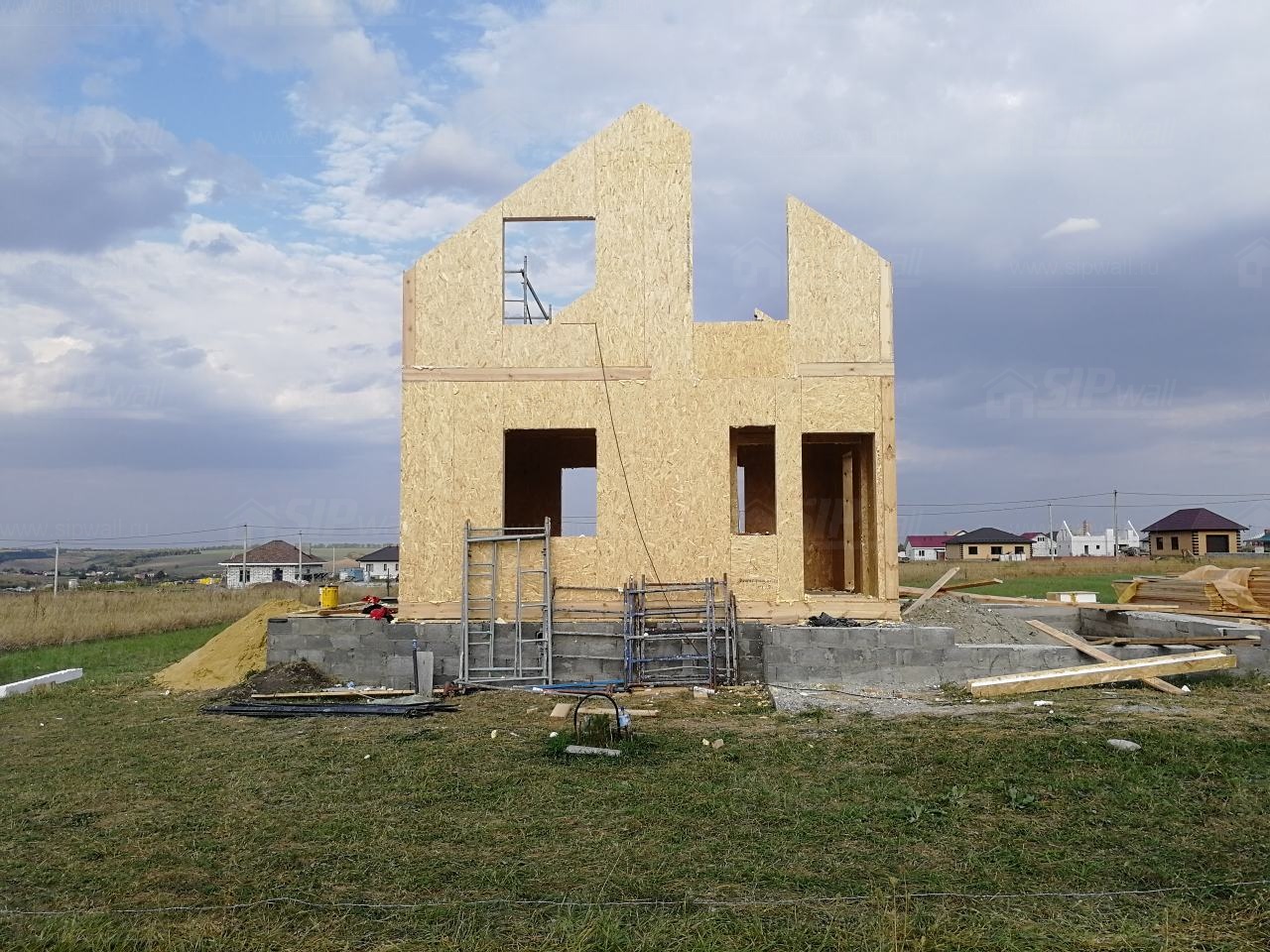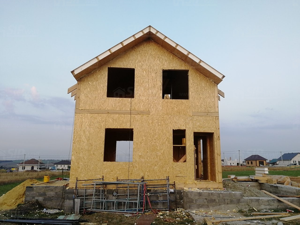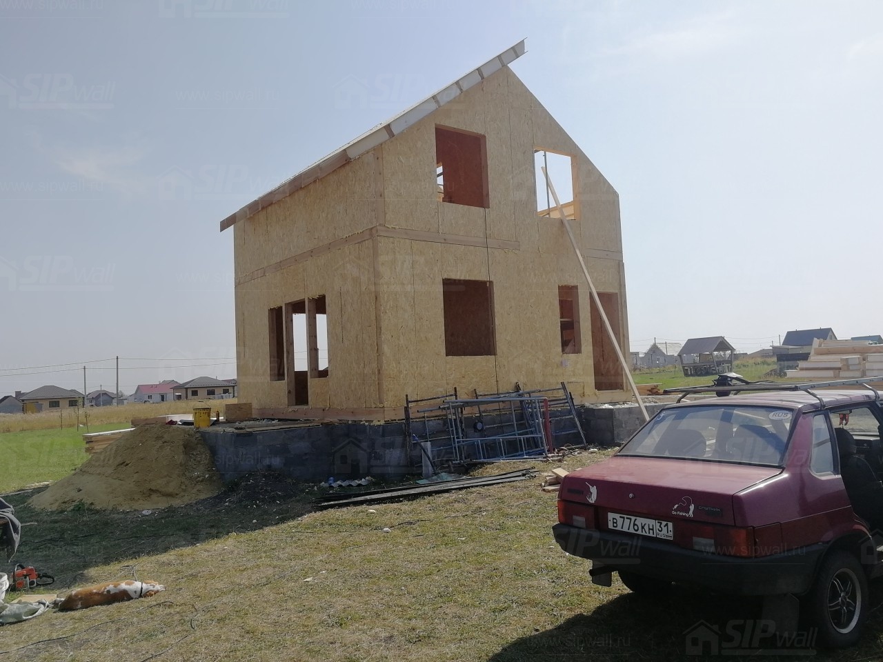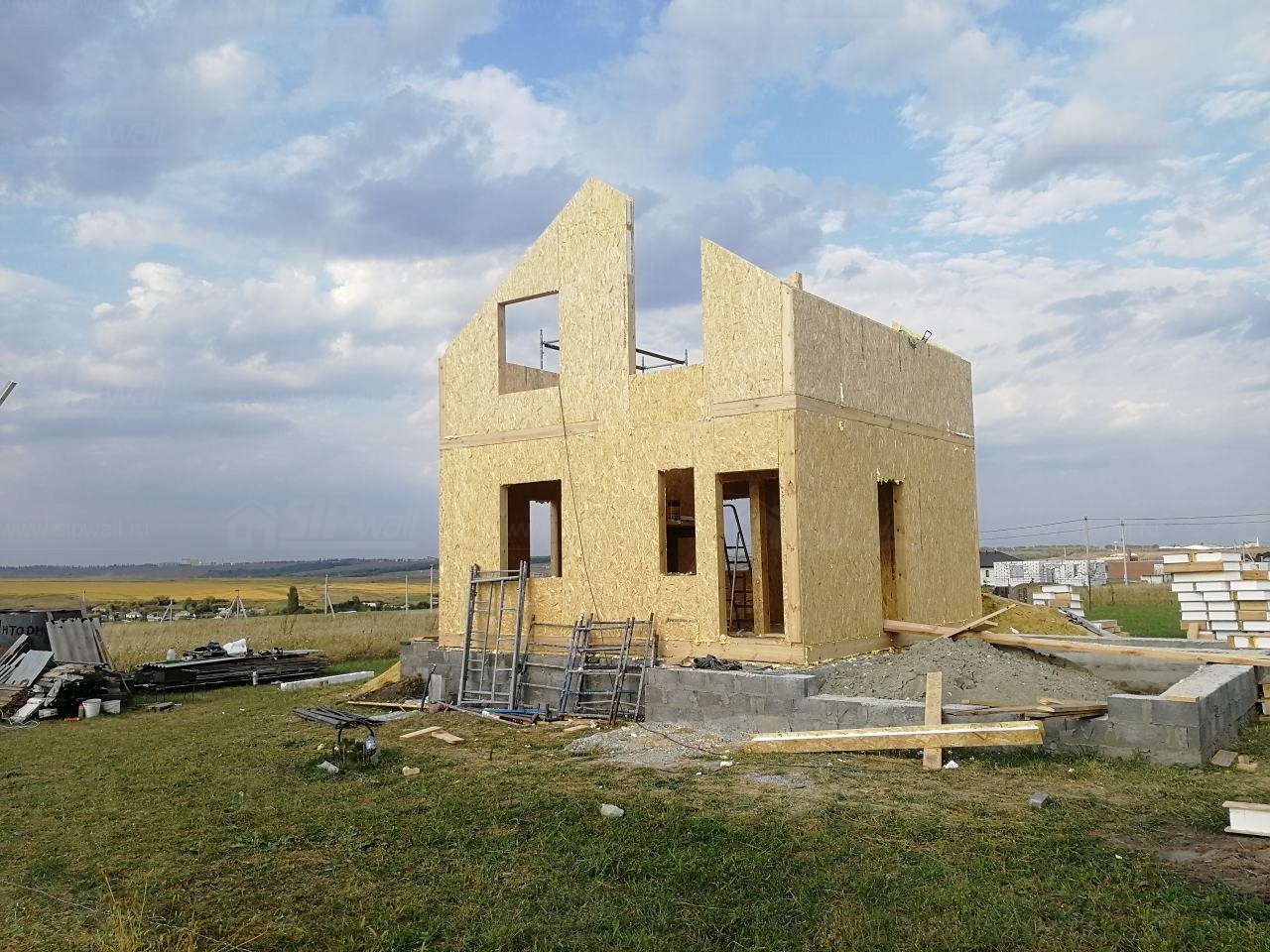 Комплектация домокомплекта: перекрытие на отметке +0.000 - СИП - 174У мм., несущие стены дома выполнены из СИП панелей 174 мм., внутренние несущие стены СИП - 174У мм и внутренние не несущие перегородки СИП - 124У мм. Межэтажное и чердачное перекрытие - СИП - 174У мм, Кровля - СИП - 224У мм..