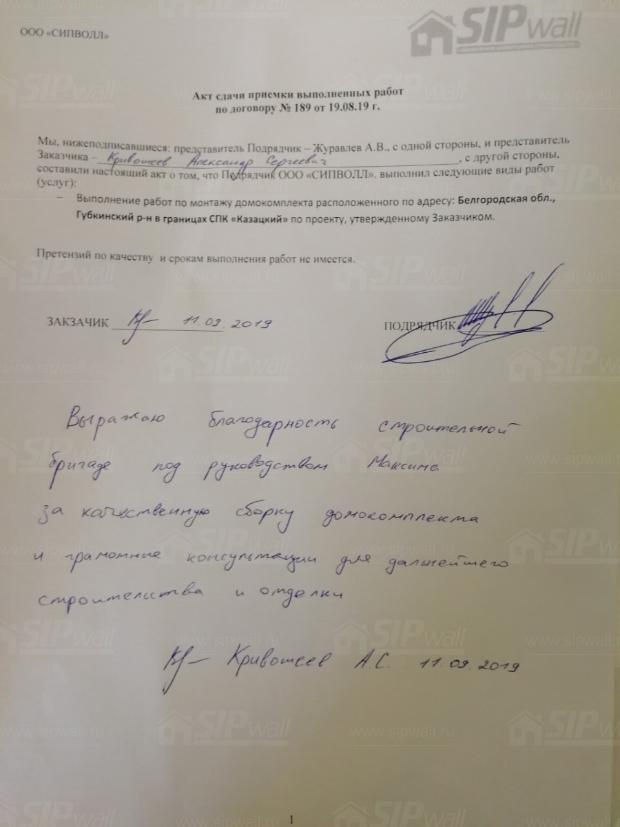 На выходе с завода «СИПВОЛЛ» домокомплект имеет 99-% ную готовность.