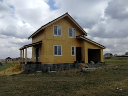 Домокомплект - изготовлен по проекту из СИП панелей произведенный по технологии SIPwall (ЭКОПАН) на собственном заводе расположенном в г. Шуя, Ивановской области. При изготовлении домокомплекта панельно каркасного дома используется только сухой строганный брус камерной сушки, обработанный огнебиозащитным составом.