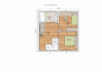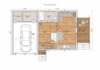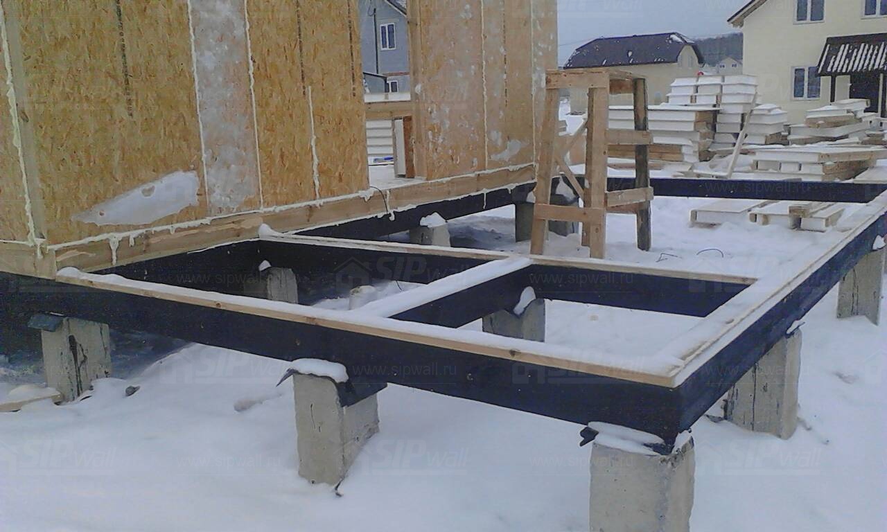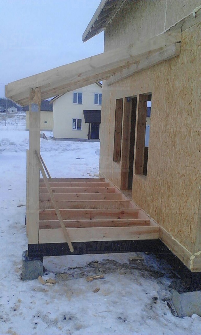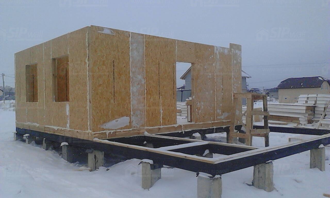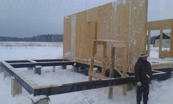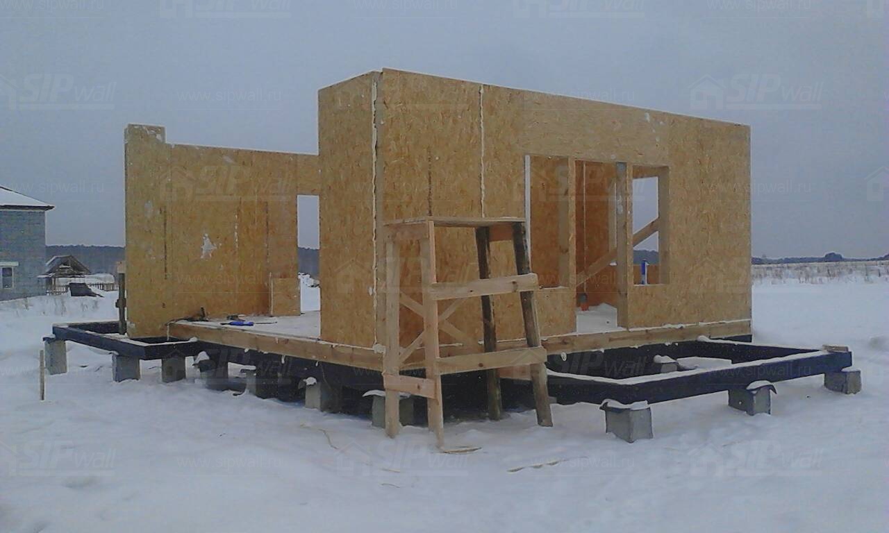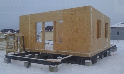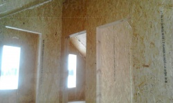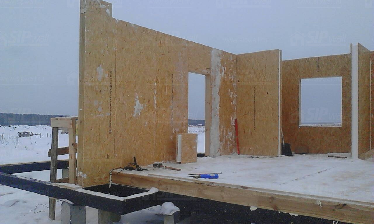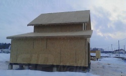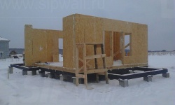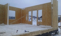 Комплектация домокомплекта: перекрытие на отметке +0.000 - СИП 224У мм., несущие стены дома выполнены из СИП панелей 174 мм., внутренние несущие стены выполнены из СИП панелей 174 мм. и внутренние не несущие перегородки выполнены из СИП панелей 124 мм.. Перекрытие межэтажное - выполнены из СИП панелей 174 мм.. Кровля выполнена из СИП 224У мм..
