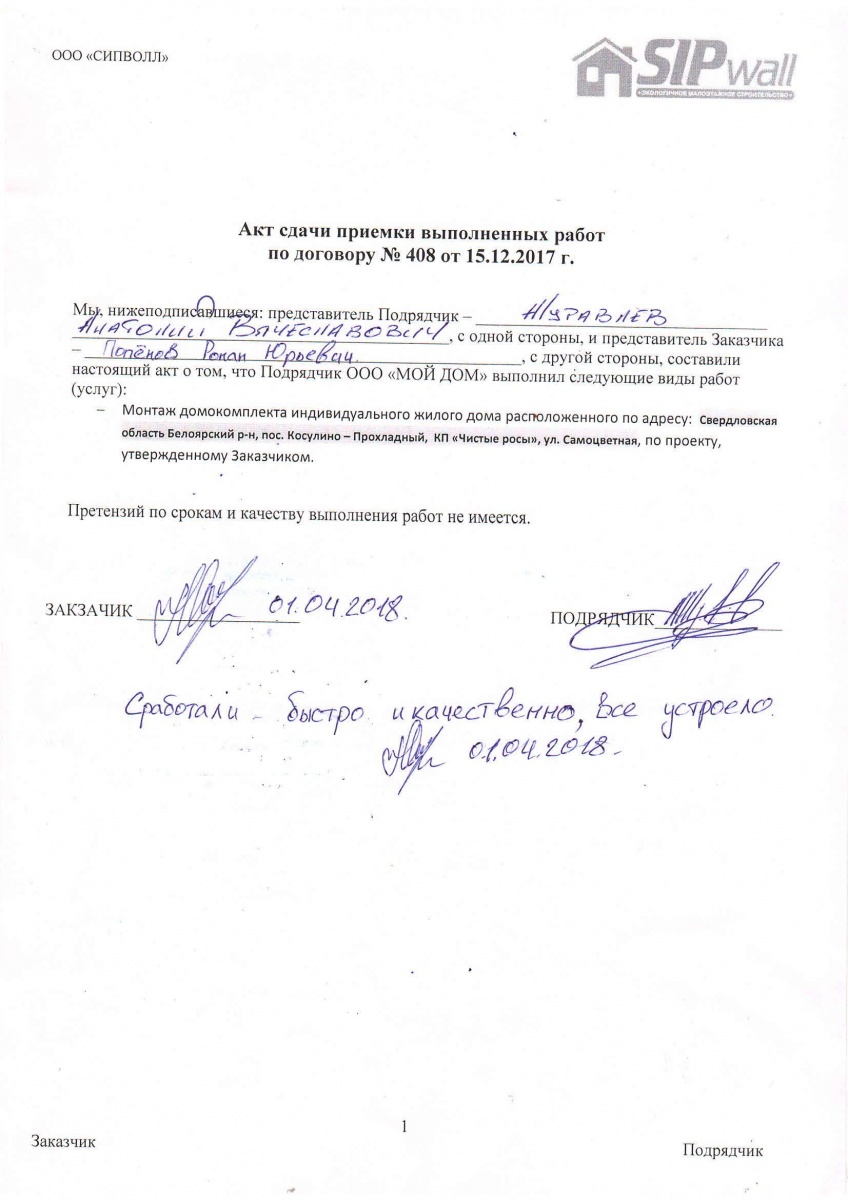 На выходе с завода «СИПВОЛЛ» домокомплект имеет 99-% ную готовность.