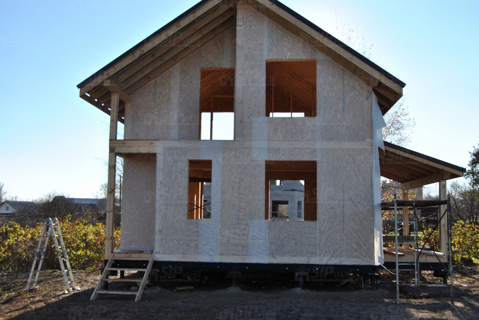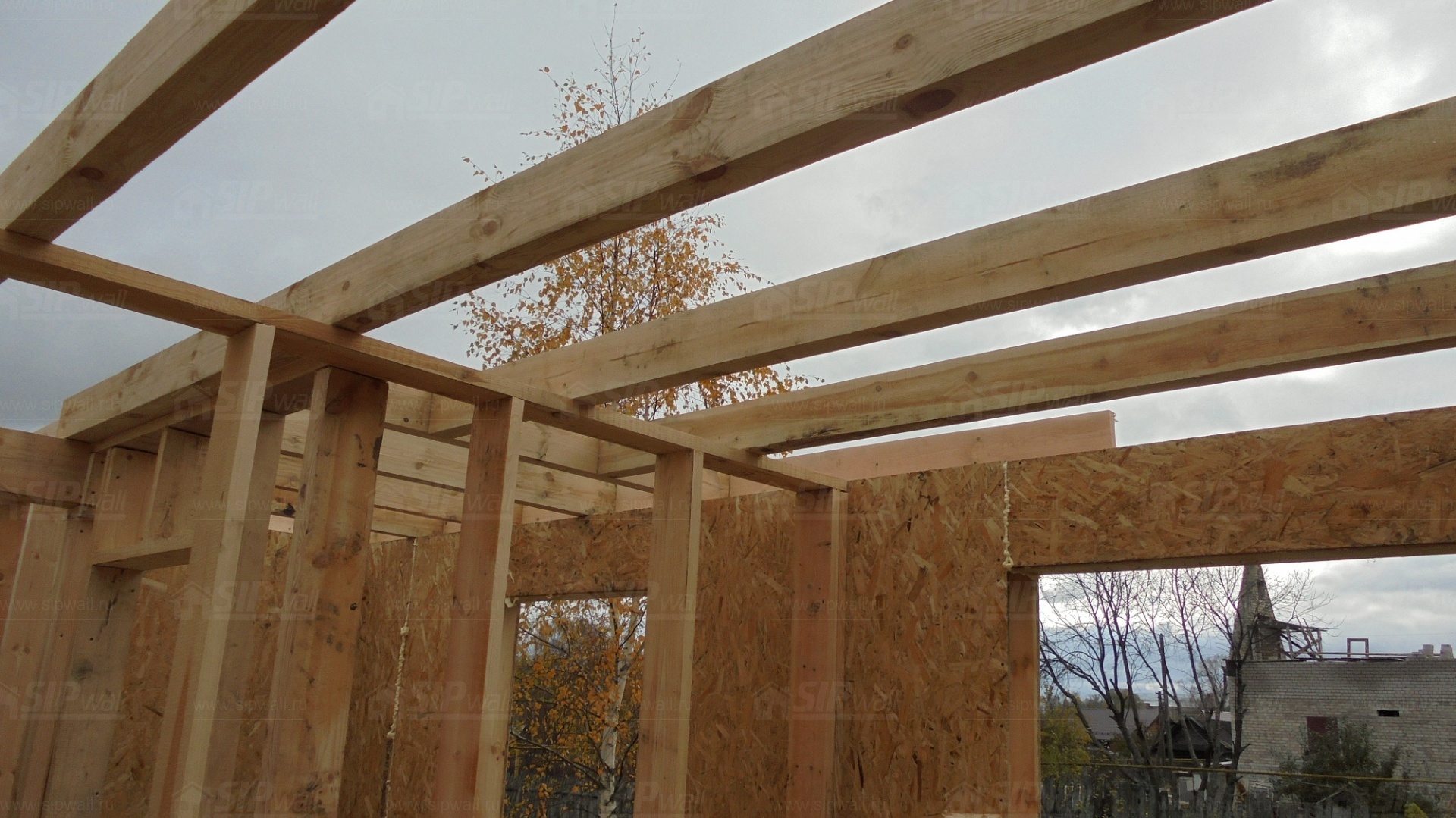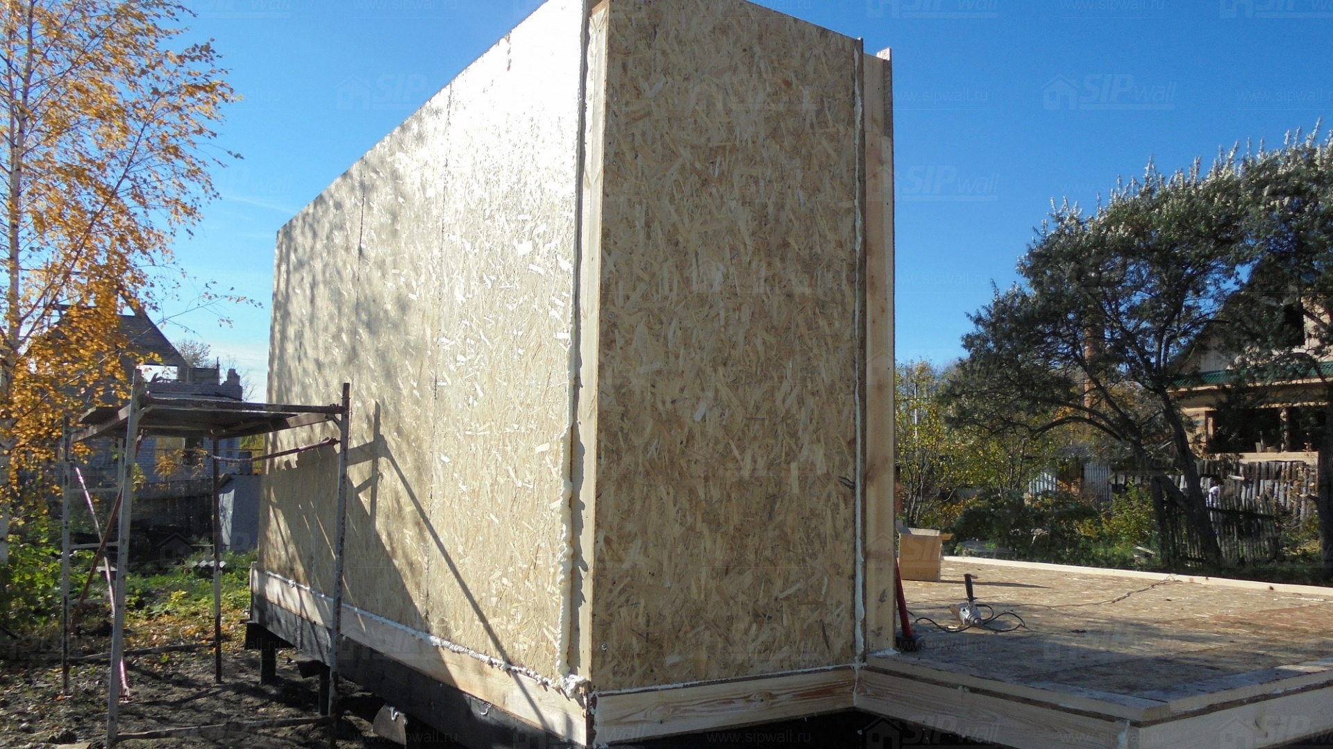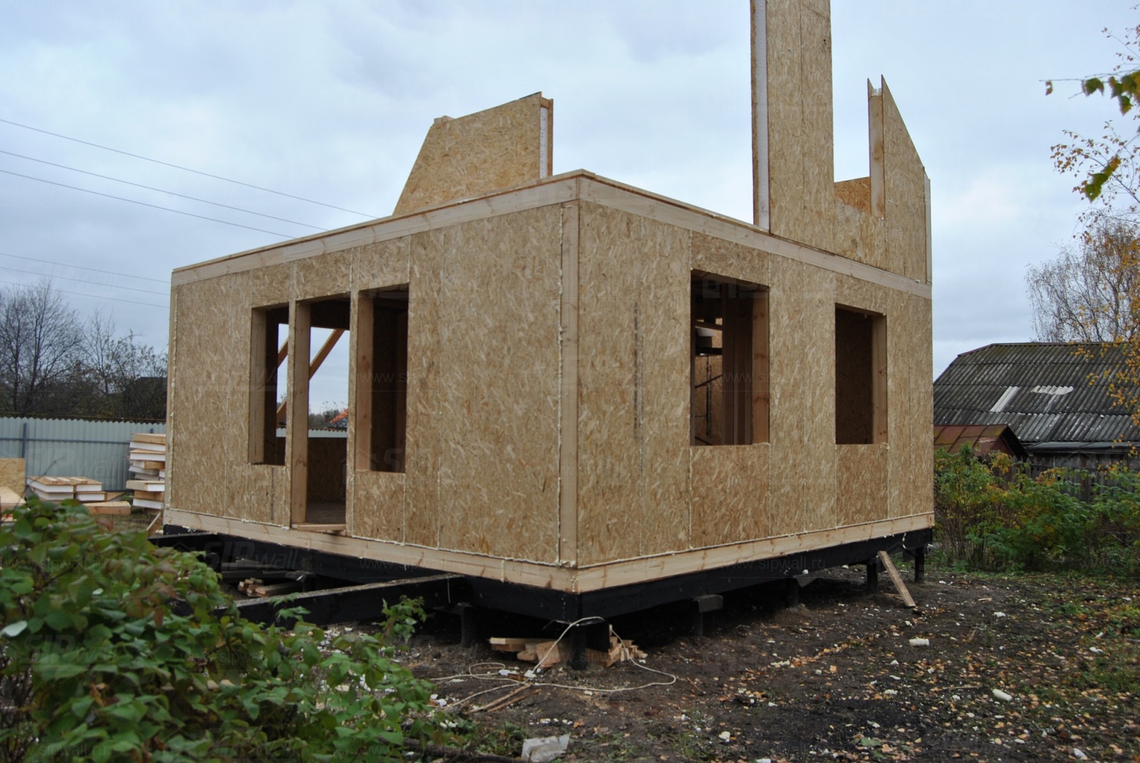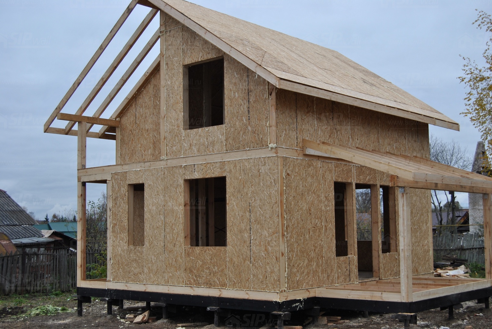 Все СИП панели SIPwall толщиной 224/174/124 мм (плиты OSB-3 толщиной 12 мм "Калевала" Россия и фасадный пенополистирол ПСБ-С 25 по ГОСТ 15588-14 толщиной 200/150/100 мм производства завода "PolarPlast", Россия) нарезаны и обрусованы сухим строганным брусом в соответствии с проектной документацией.