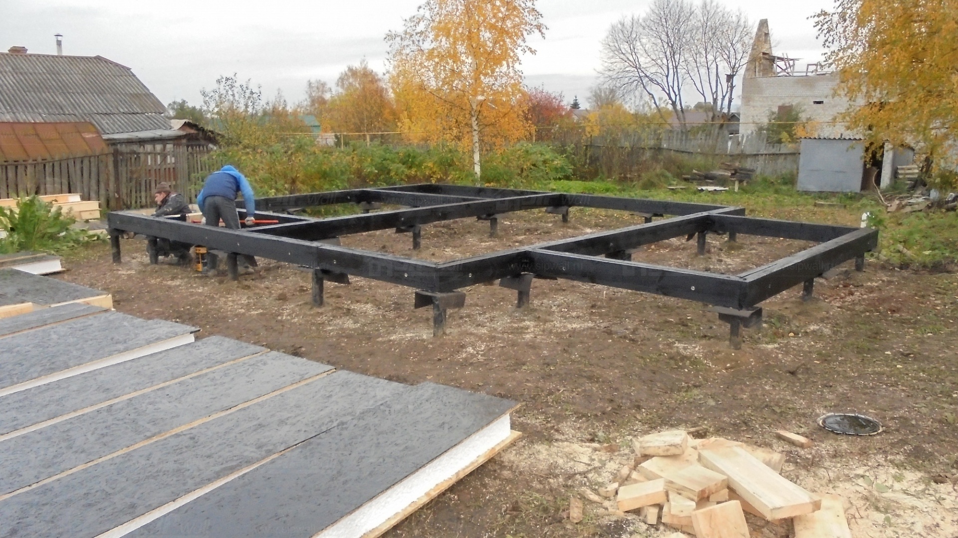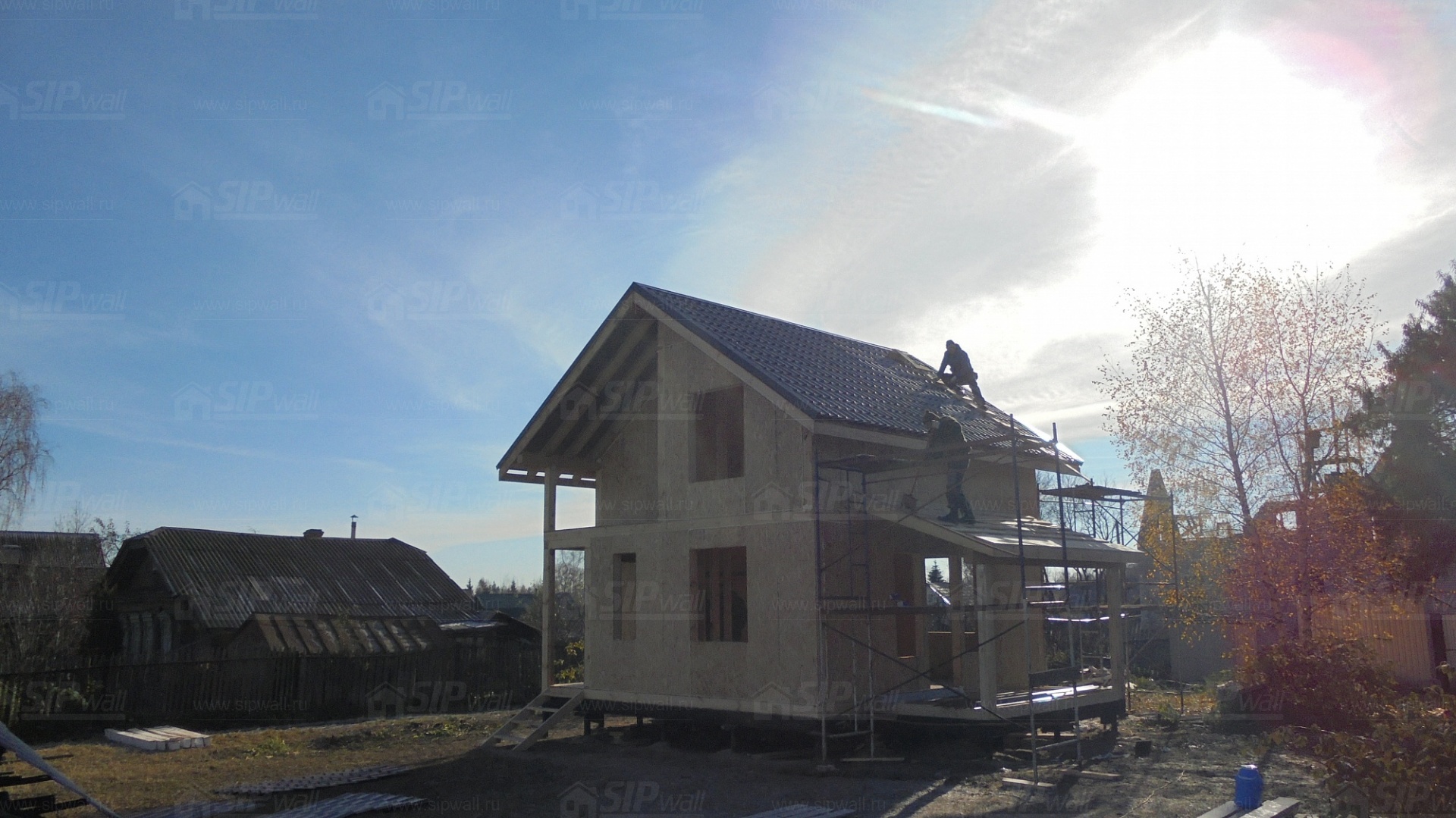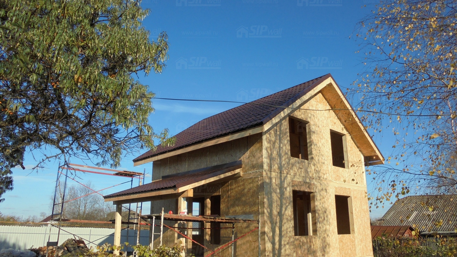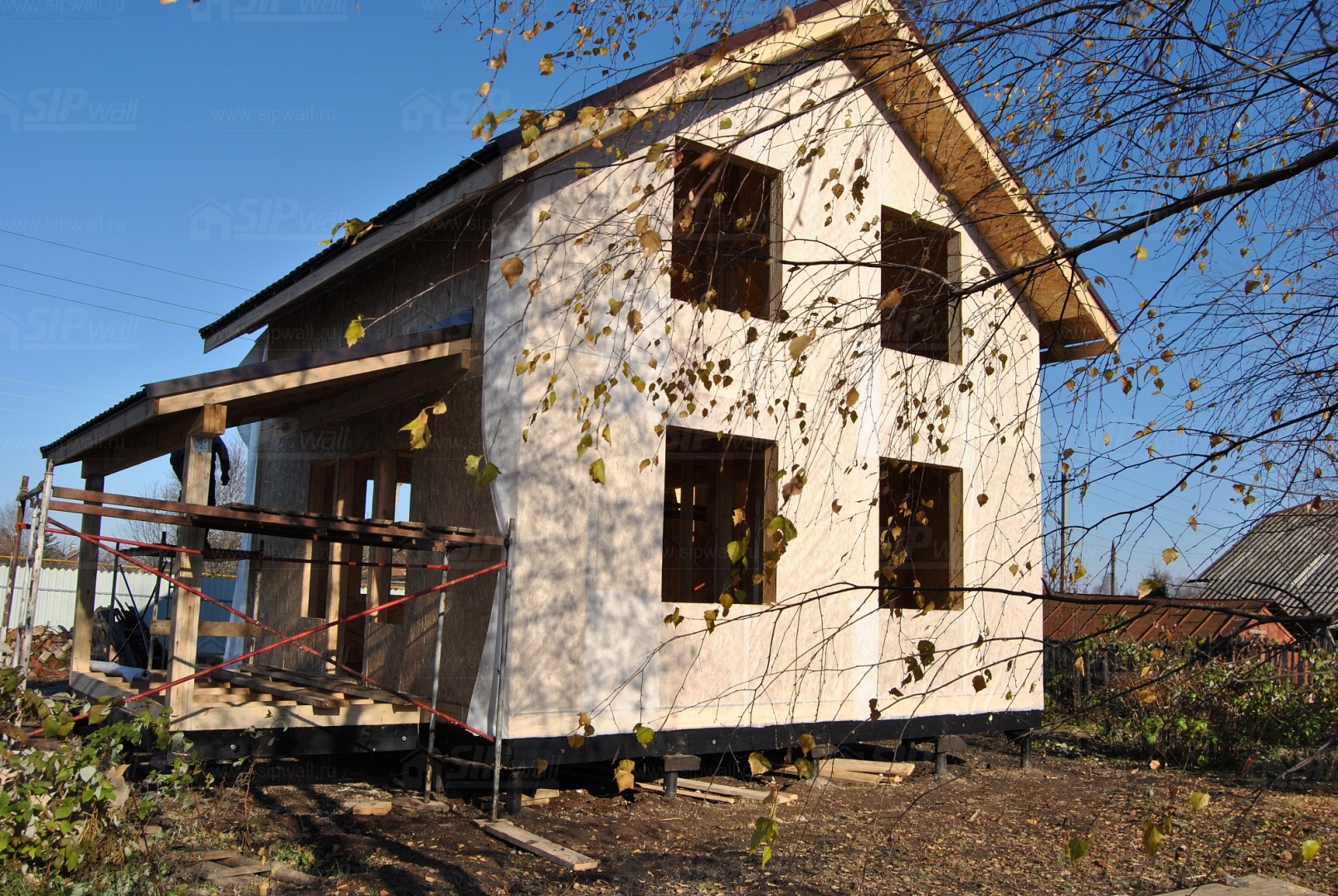 Все СИП панели SIPwall толщиной 224/174/124 мм (плиты OSB-3 толщиной 12 мм "Калевала" Россия и фасадный пенополистирол ПСБ-С 25 по ГОСТ 15588-14 толщиной 200/150/100 мм производства завода "PolarPlast", Россия) нарезаны и обрусованы сухим строганным брусом в соответствии с проектной документацией.
