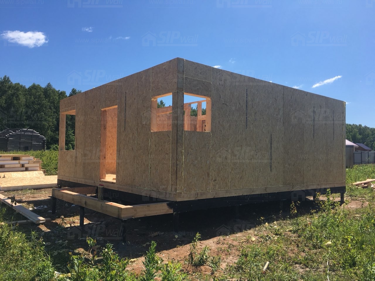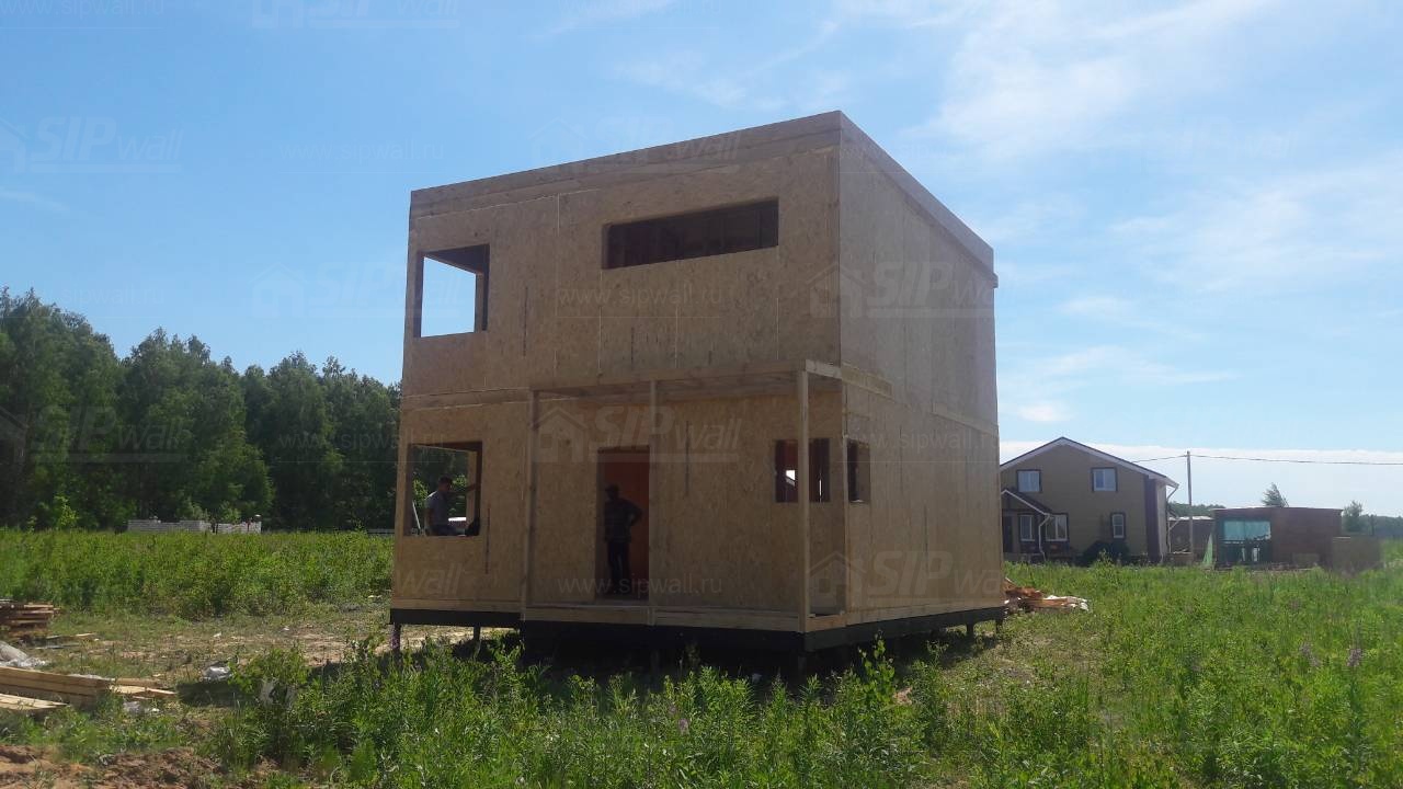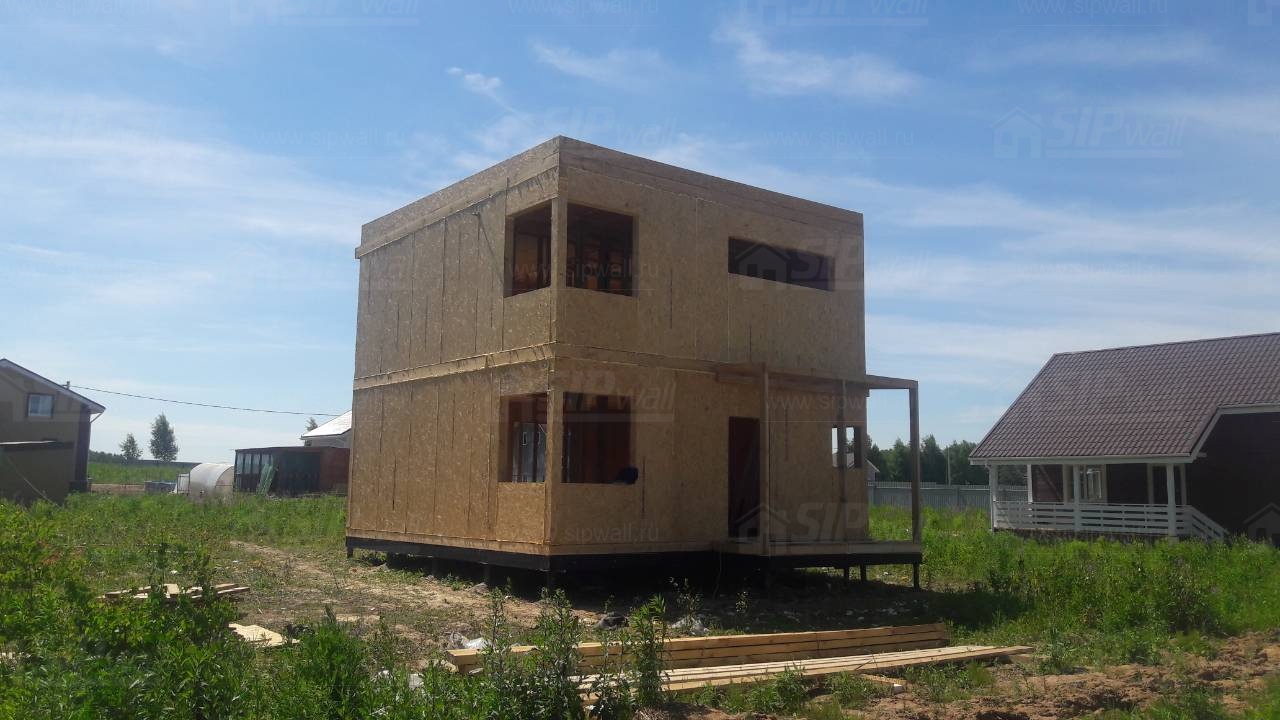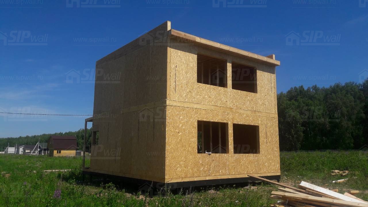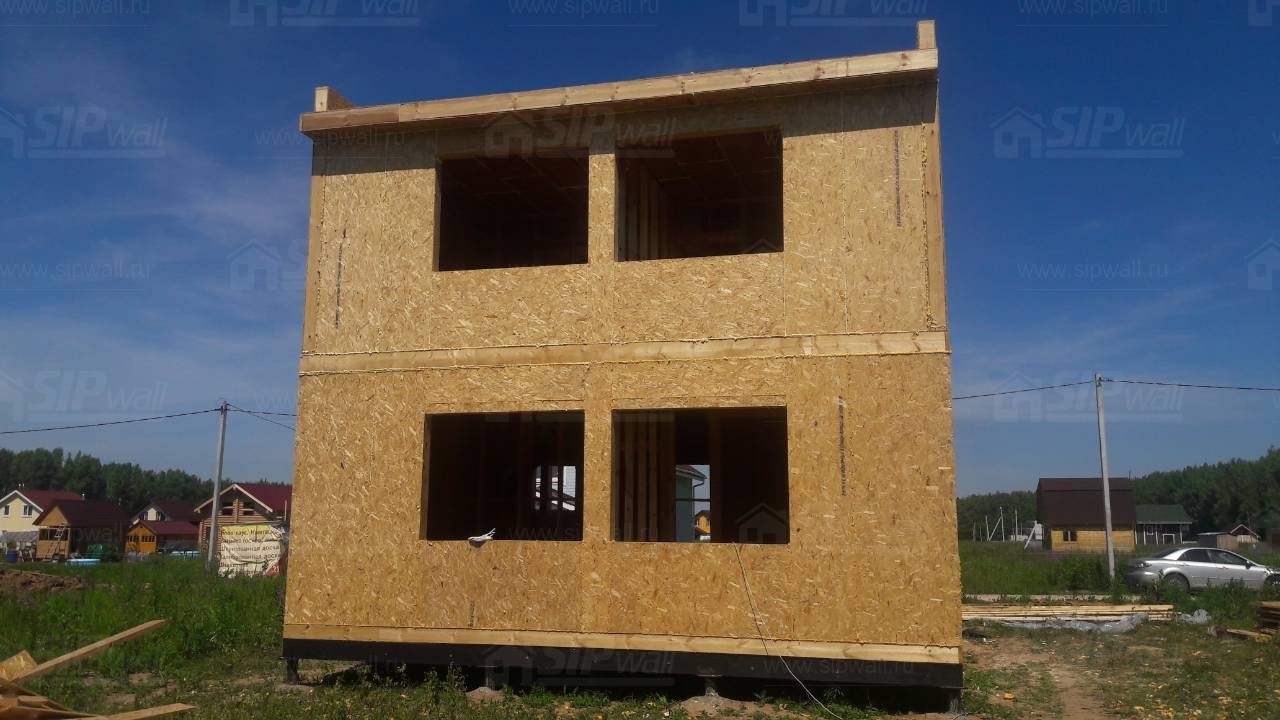 Все СИП панели SIPwall толщиной 224/174/124 мм (плиты OSB-3 толщиной 12 мм "Калевала" Россия и фасадный пенополистирол ПСБ-С 25 по ГОСТ 15588-14 толщиной 200/150/100 мм производства завода "PolarPlast", Россия) нарезаны и обрусованы сухим строганным брусом камерной сушки в соответствии с проектной документацией.