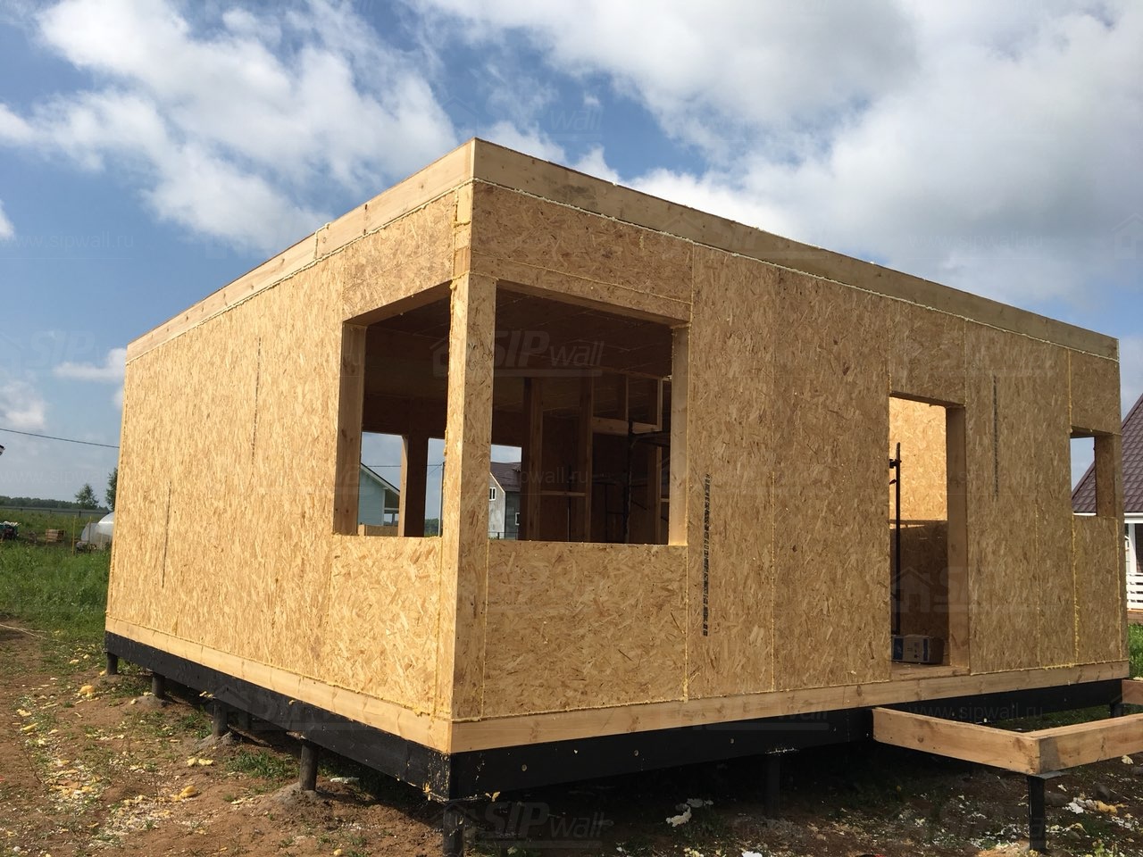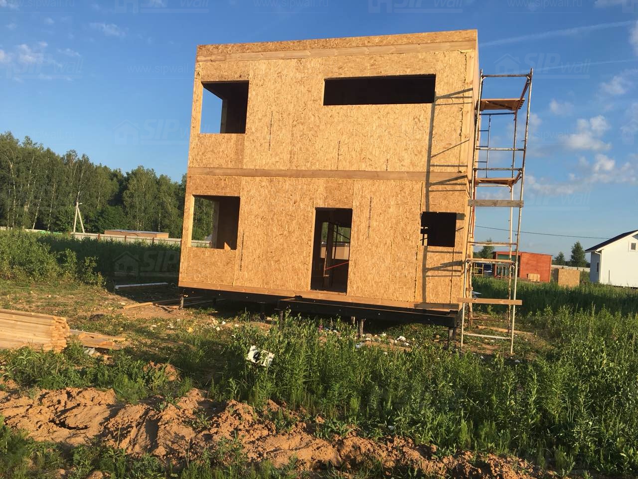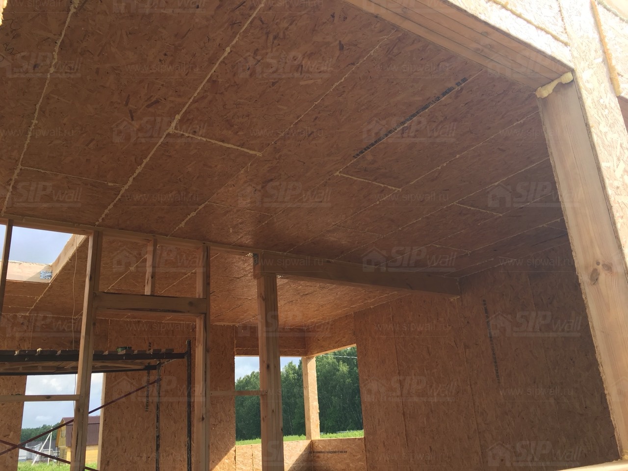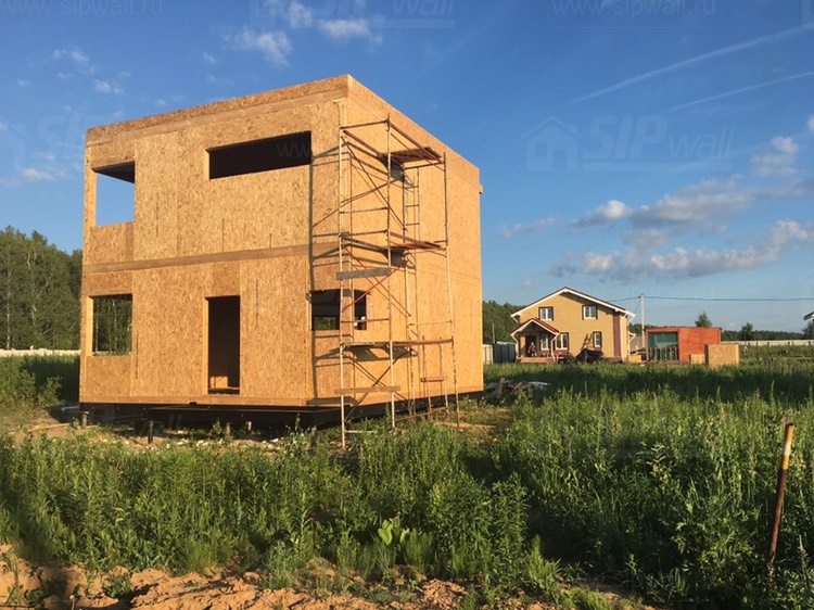 Все СИП панели SIPwall толщиной 224/174/124 мм (плиты OSB-3 толщиной 12 мм "Калевала" Россия и фасадный пенополистирол ПСБ-С 25 по ГОСТ 15588-14 толщиной 200/150/100 мм производства завода "PolarPlast", Россия) нарезаны и обрусованы сухим строганным брусом камерной сушки в соответствии с проектной документацией.