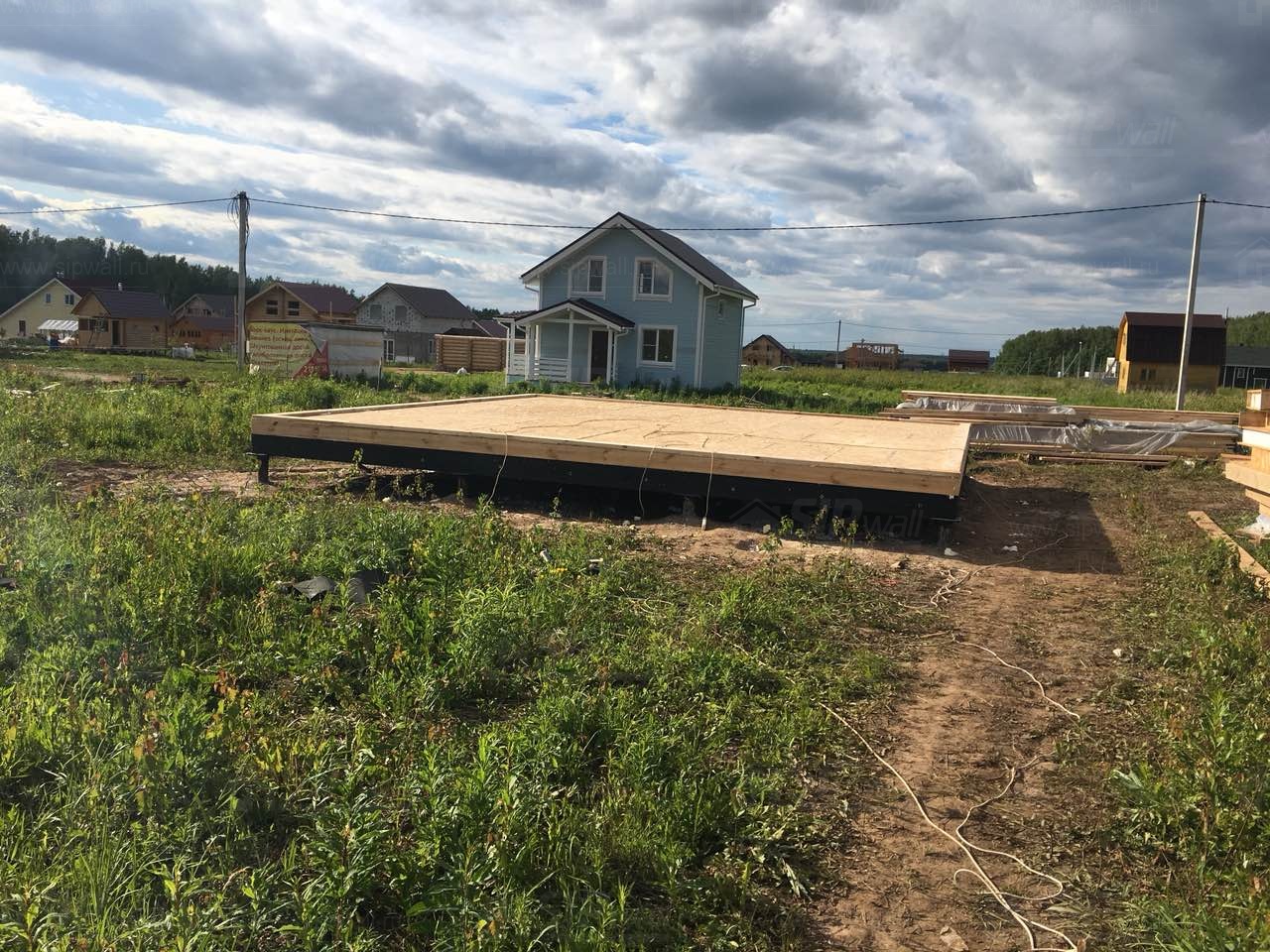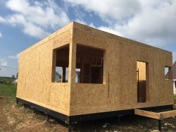 Домокомплект - изготовлен по проекту из СИП панелей произведенный по технологии SIPwall (ЭКОПАН) на собственном заводе расположенном в г. Шуя, Ивановской области. При изготовлении домокомплекта панельно каркасного дома используется только сухой строганный брус камерной сушки, обработанный огнебиозащитным составом.