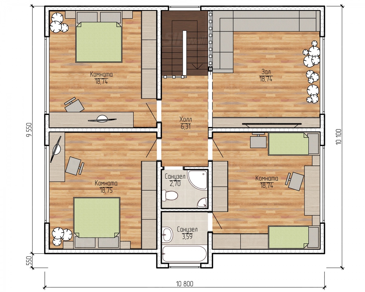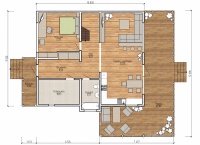 Домокомплект - изготовлен по проекту из СИП панелей произведенный по технологии SIPwall (ЭКОПАН) на собственном заводе расположенном в г. Шуя, Ивановской области. При изготовлении домокомплекта панельно каркасного дома используется только сухой строганный брус камерной сушки, обработанный огнебиозащитным составом.