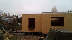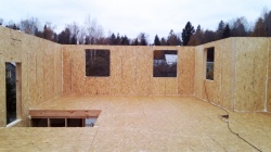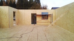 Домокомплект - изготовлен по проекту из СИП панелей произведенный по технологии SIPwall (ЭКОПАН) на собственном заводе расположенном в г. Шуя, Ивановской области. При изготовлении домокомплекта панельно каркасного дома используется только сухой строганный брус камерной сушки, обработанный огнебиозащитным составом.