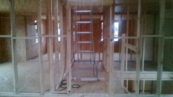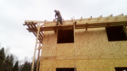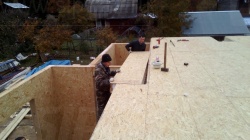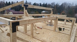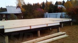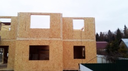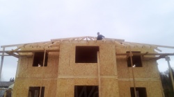 Комплектация домокомплекта: перекрытие на отметке +0.000 - СИП - 224У мм., несущие стены дома выполнены из СИП панелей 174 мм., внутренние несущие стены и внутренние не несущие перегородки выполнены по каркасной технологии. Межэтажное перекрытие - СИП - 224У мм, чердачное перекрытие - СИП - 224У мм, Кровля - стропильная система.